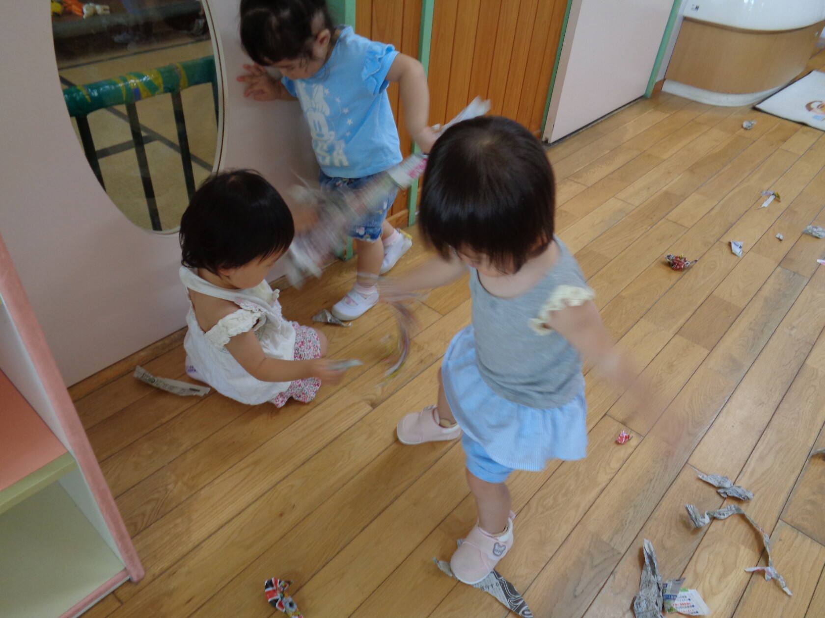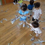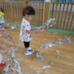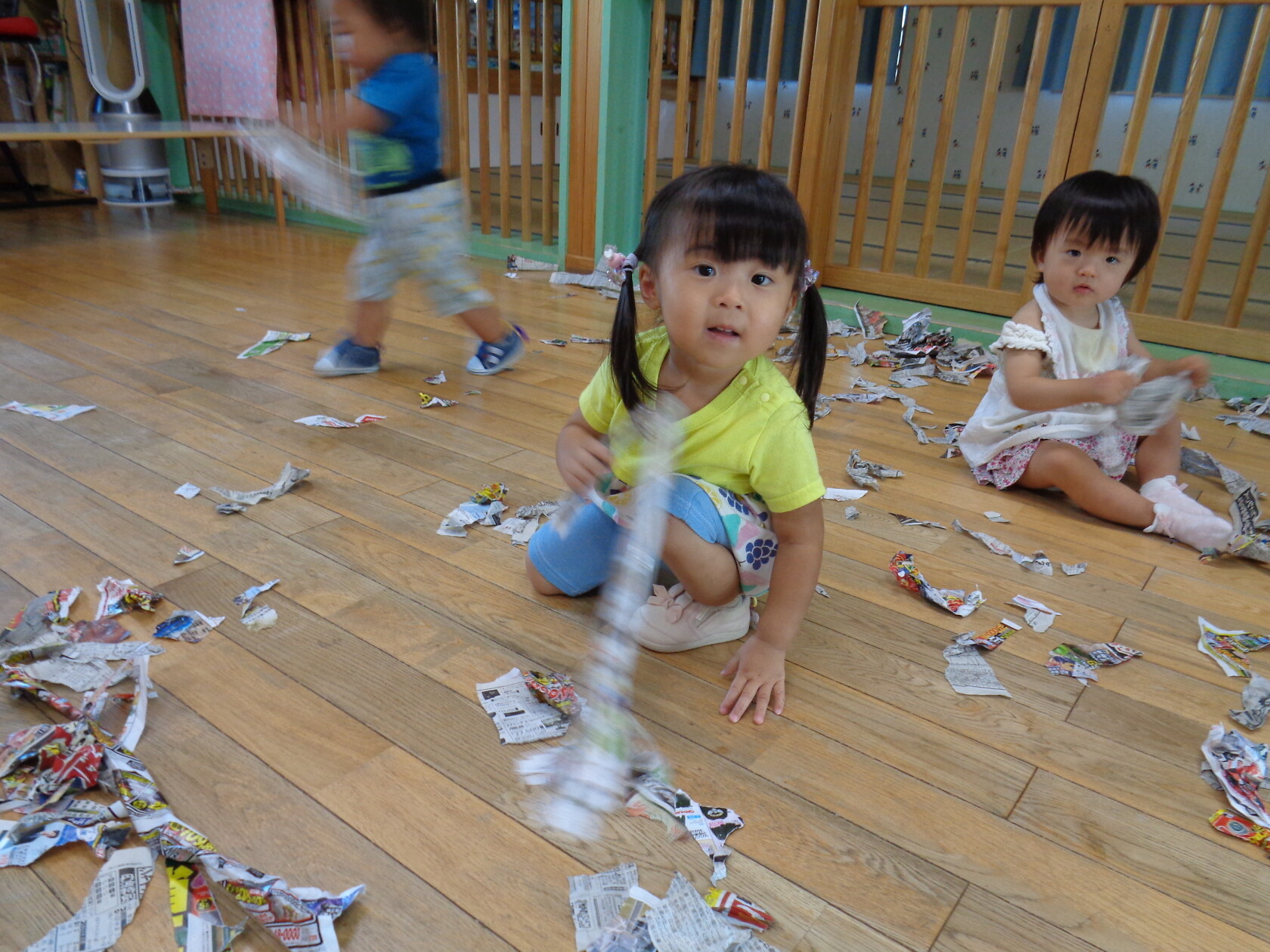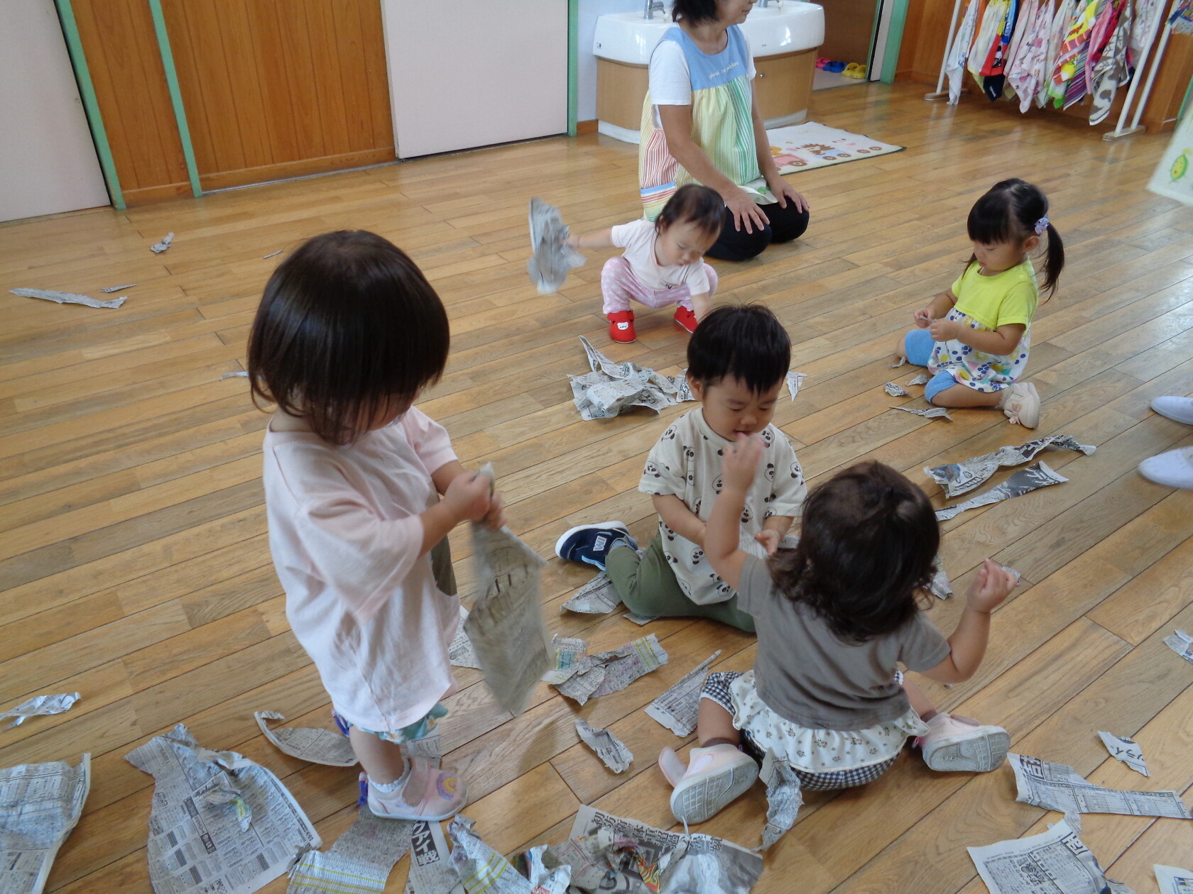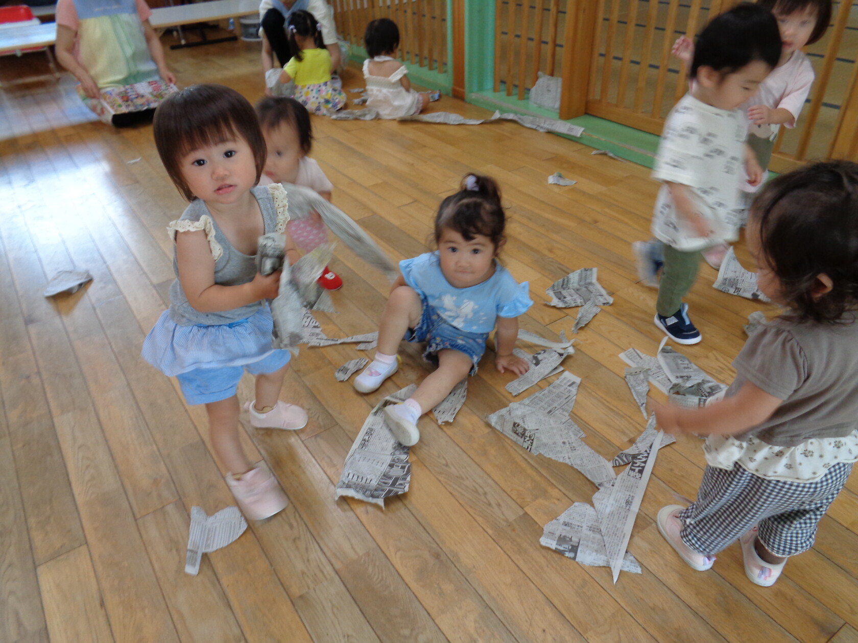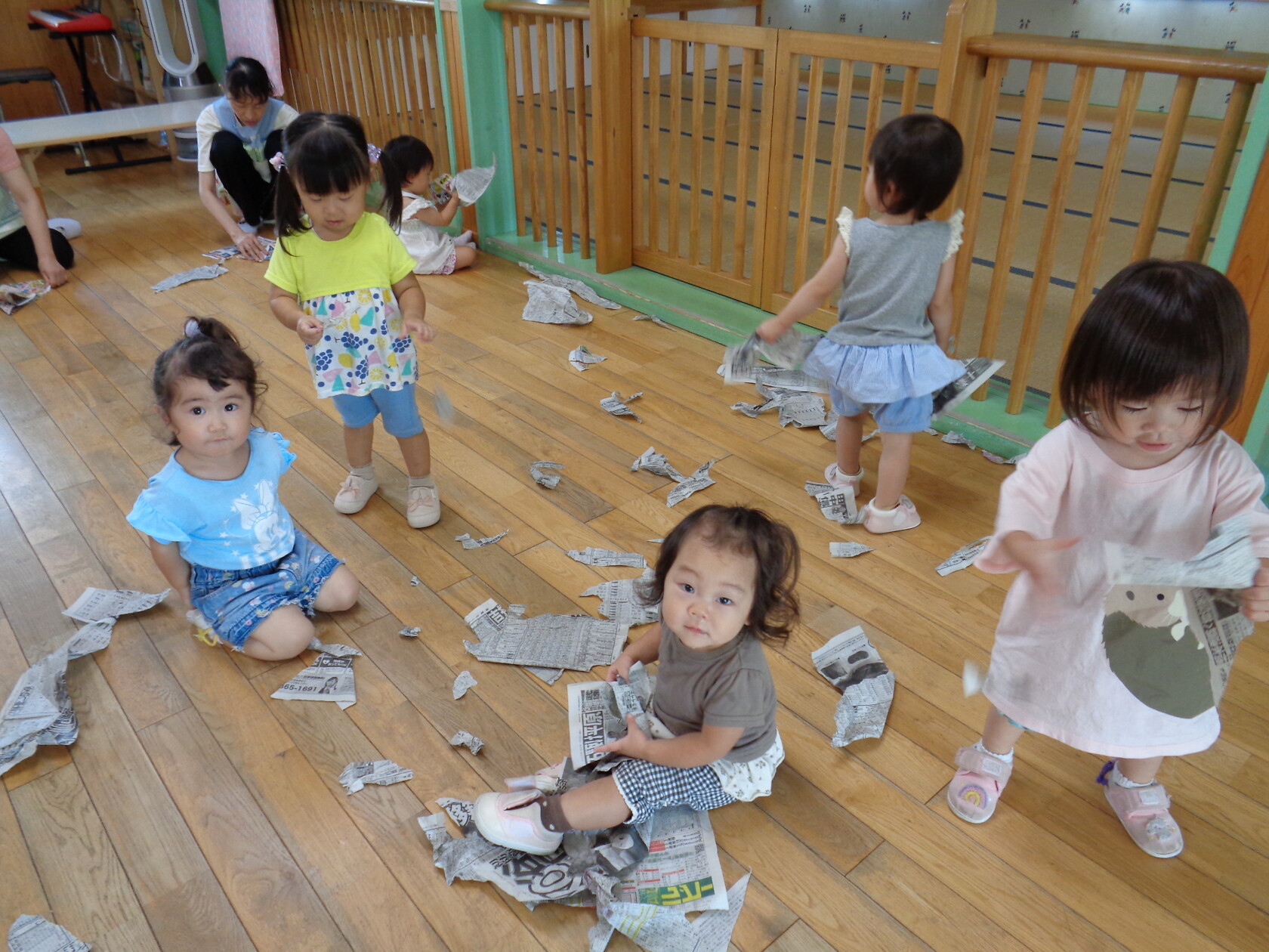今日は、お部屋で新聞遊びをしました🎼 ちぎったり、丸めてボールにしたり、花びらのように上からパラパラ落としたり、色々な遊び方を楽しみました😊