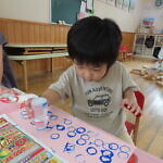 今日は、8月の製作”カモメの水兵さん”の海のスタンプを押しました。 絵の具をつけてペタンペタンと真剣に押していました✨ 押し終わった作品を見て「ママに見せる~! […]