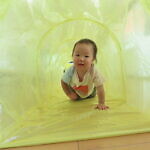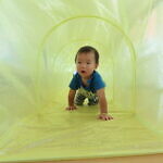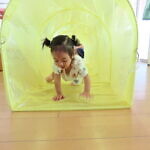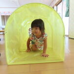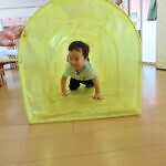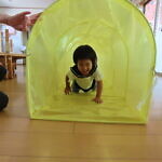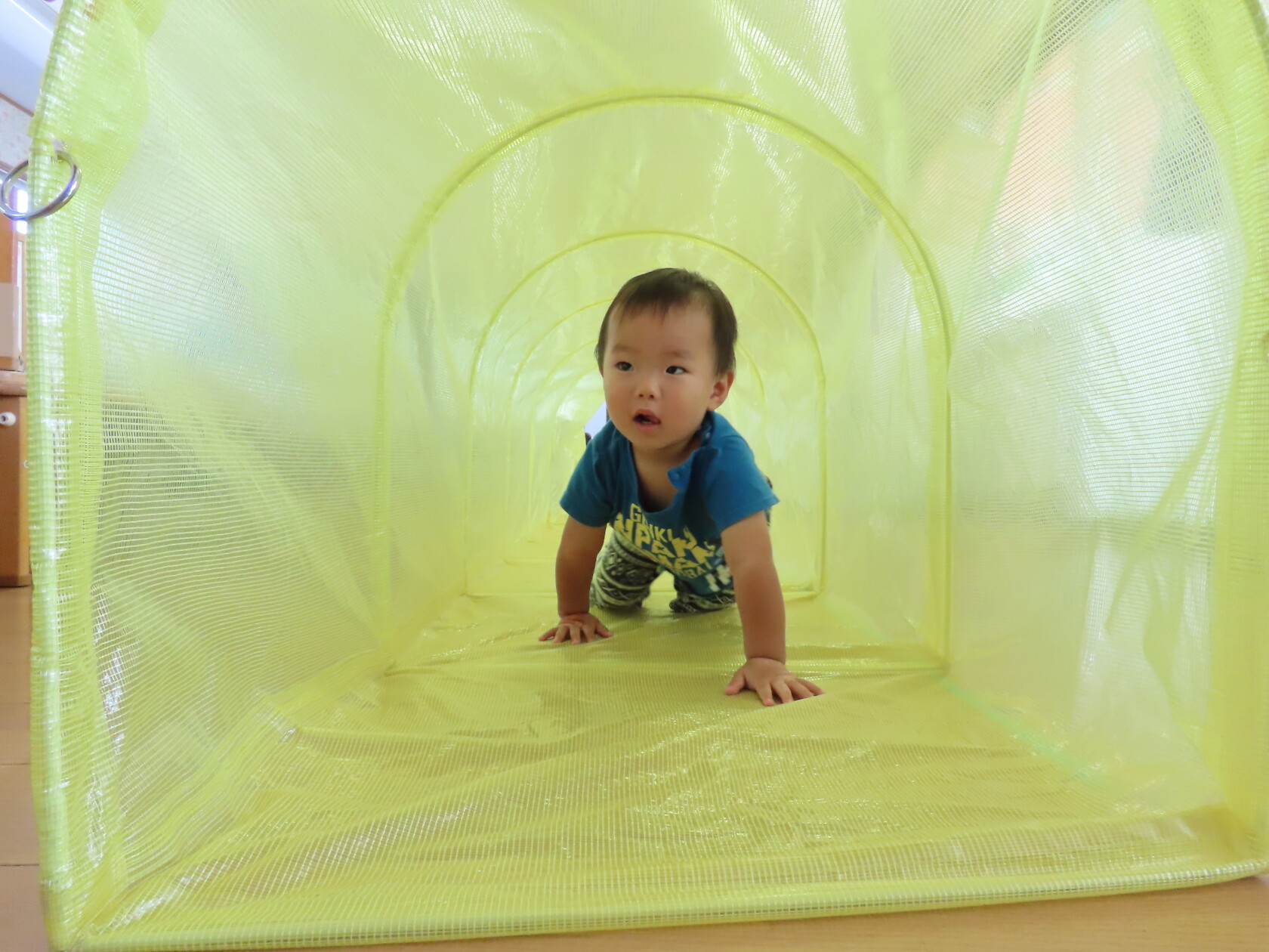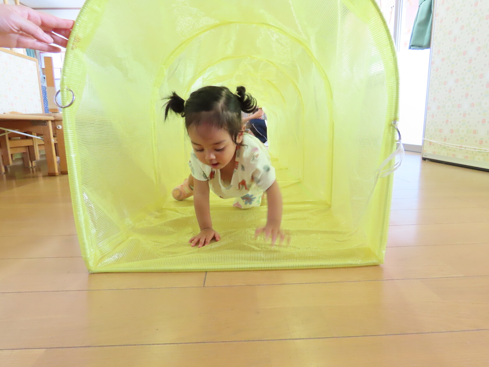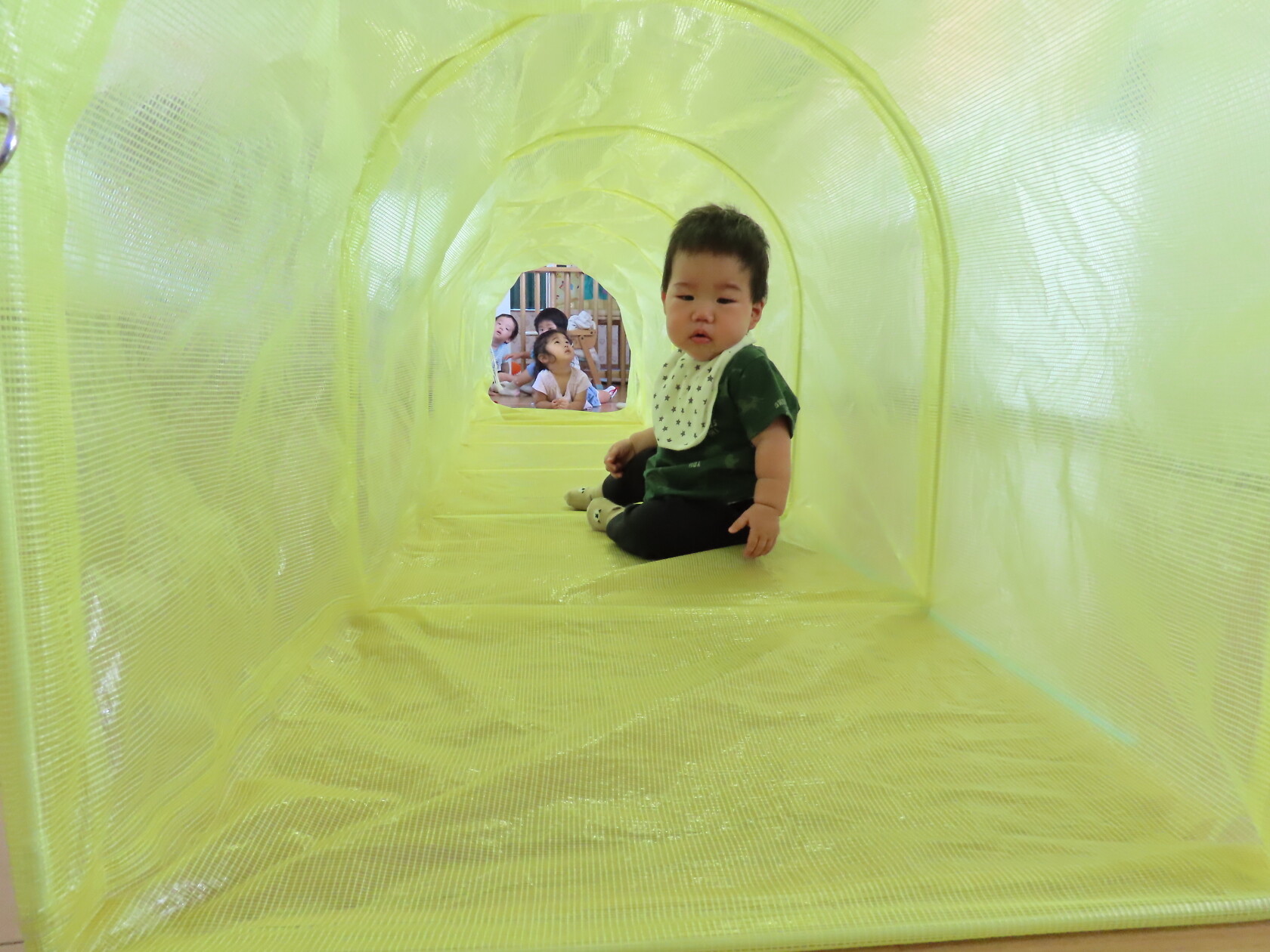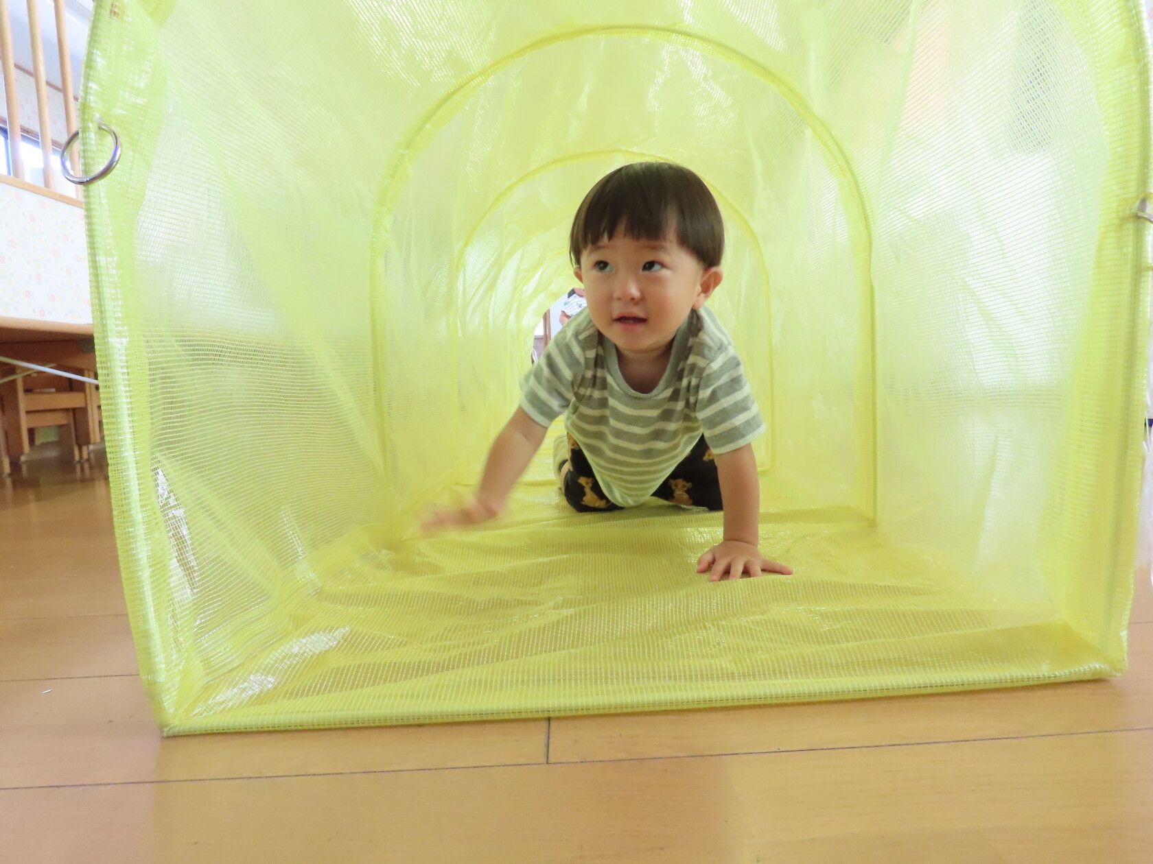 昨日から運動会の練習が始まり、今日はお部屋でドリームトンネルをくぐる練習を行いました!