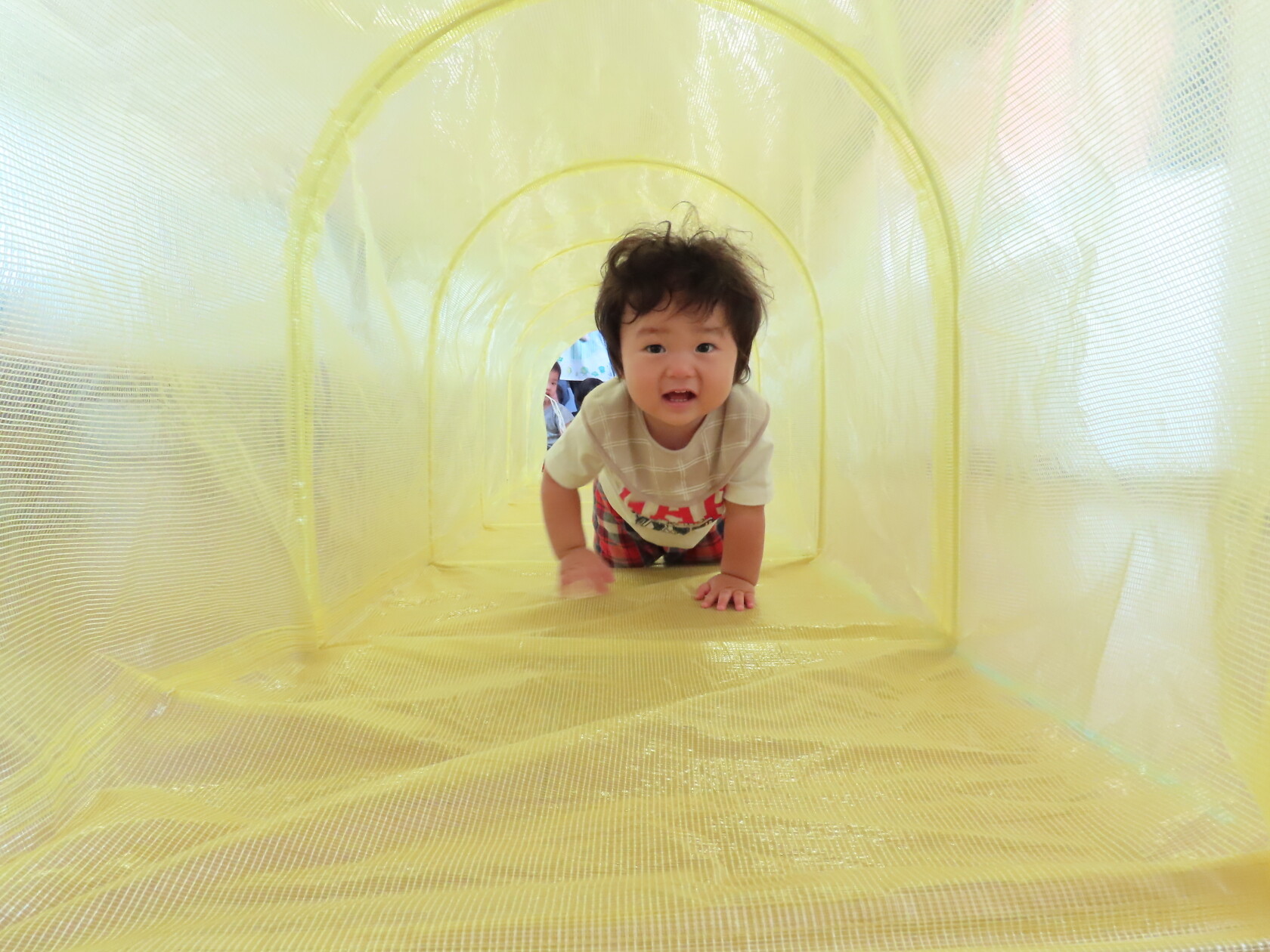 お名前を呼ばれ、「ヨーイ、ドン!!」の笛の合図で順番にハイハイでトンネルをくぐりました😆