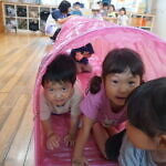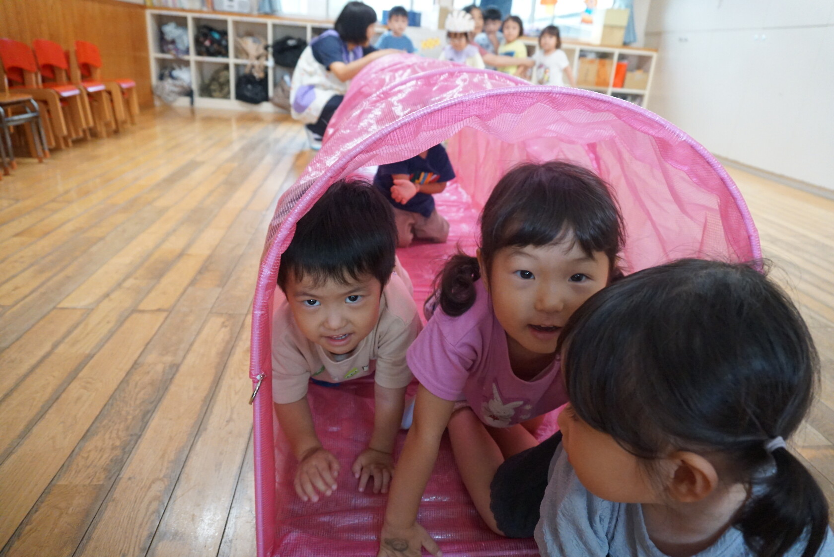 今日のできごと(ちゅうりっぷ) 公開済み: 2023年9月8日更新: 2023年9月8日 今日は、台風も近づき1日雨模様… ですが、ちゅうりっぷ組さんは今日も元気いっぱいです😁 「運動会の練習をしよう✨」と伝えると、壁に「お背中ペッタン」と背中をくっつけ、お山座りをする子ども達👍 だんだん上手にできるようになりました✨ トンネルをくぐることも上手です😊 本番にも格好良い姿を見てもらえるよう、頑張って練習したいとおもいます😆
