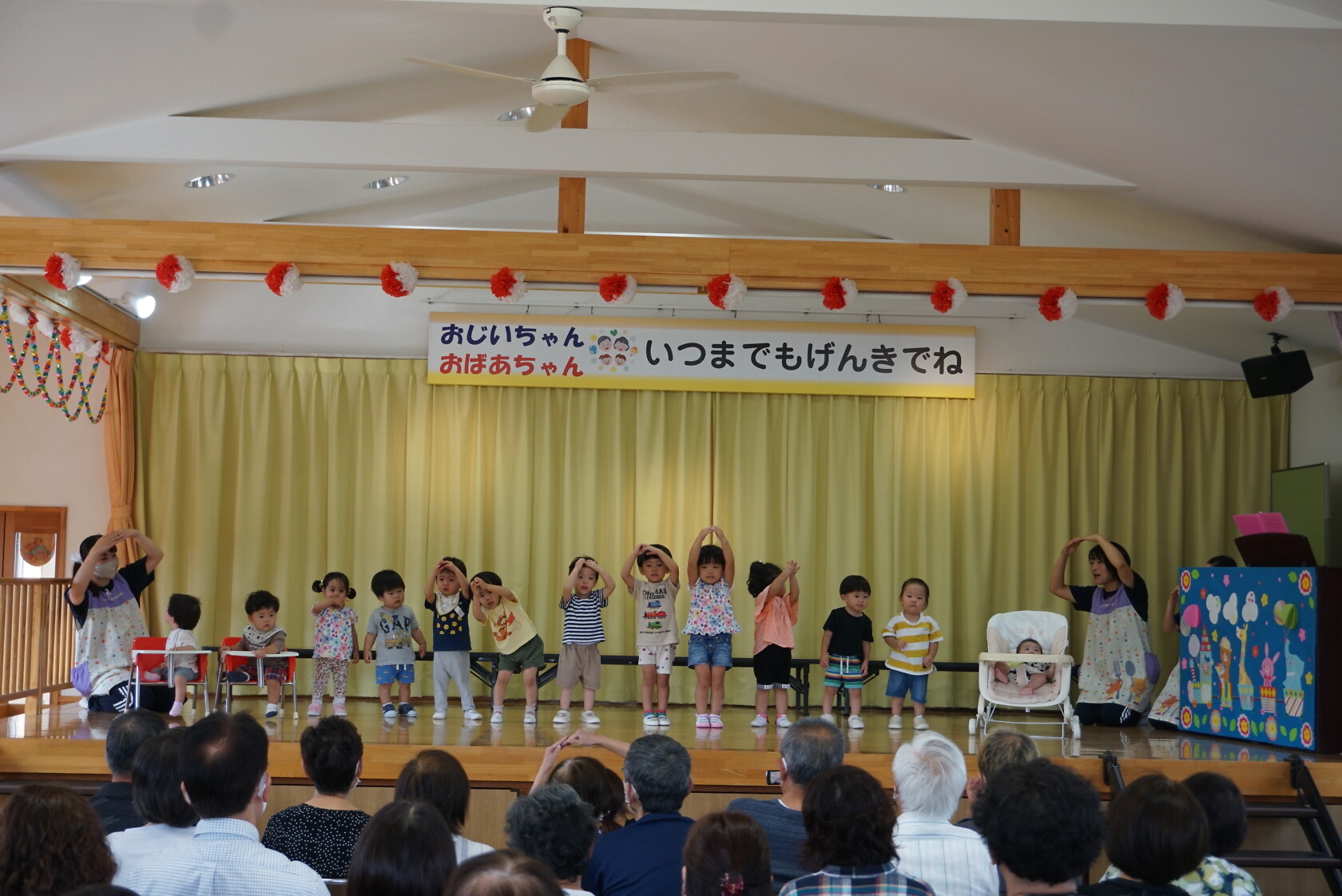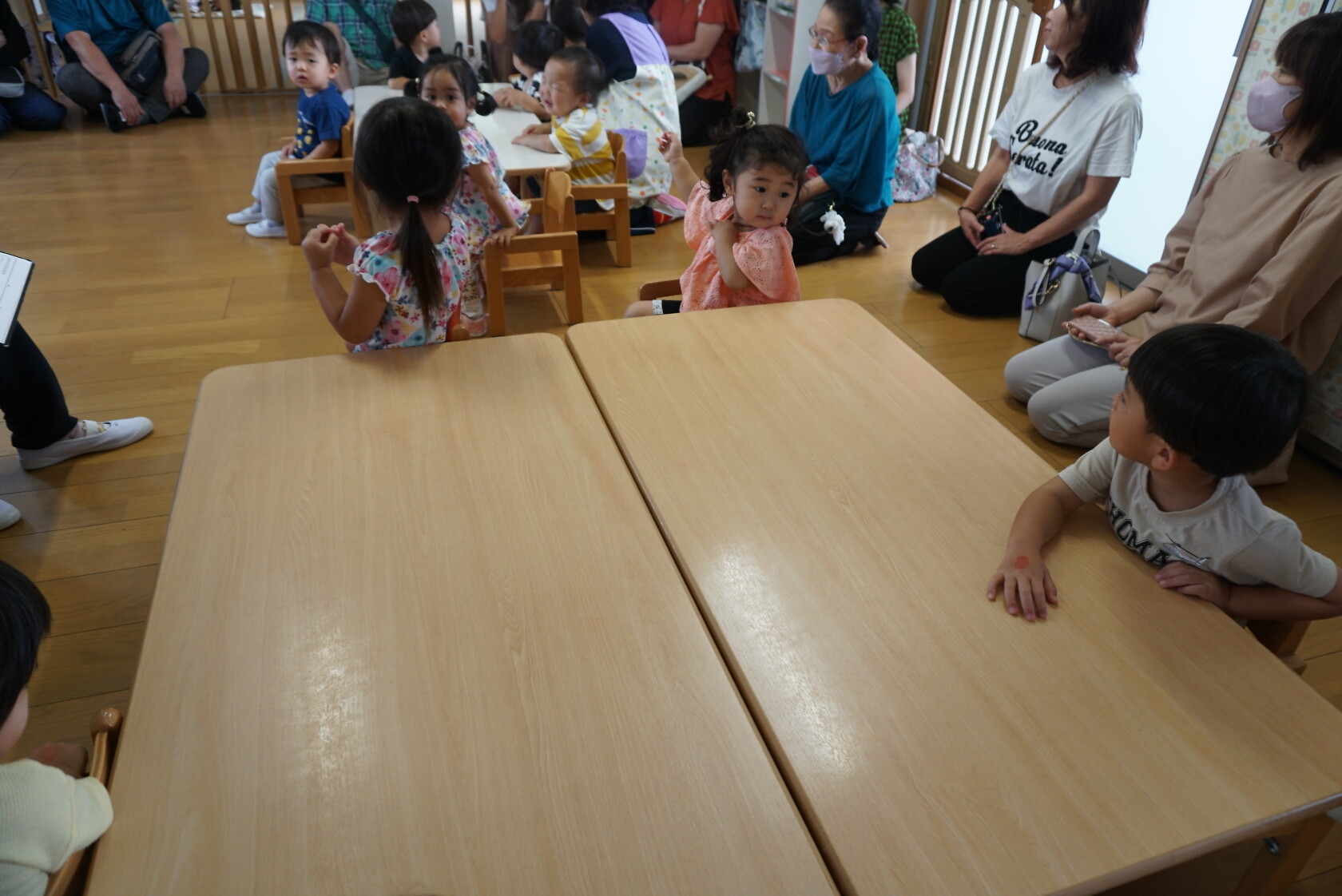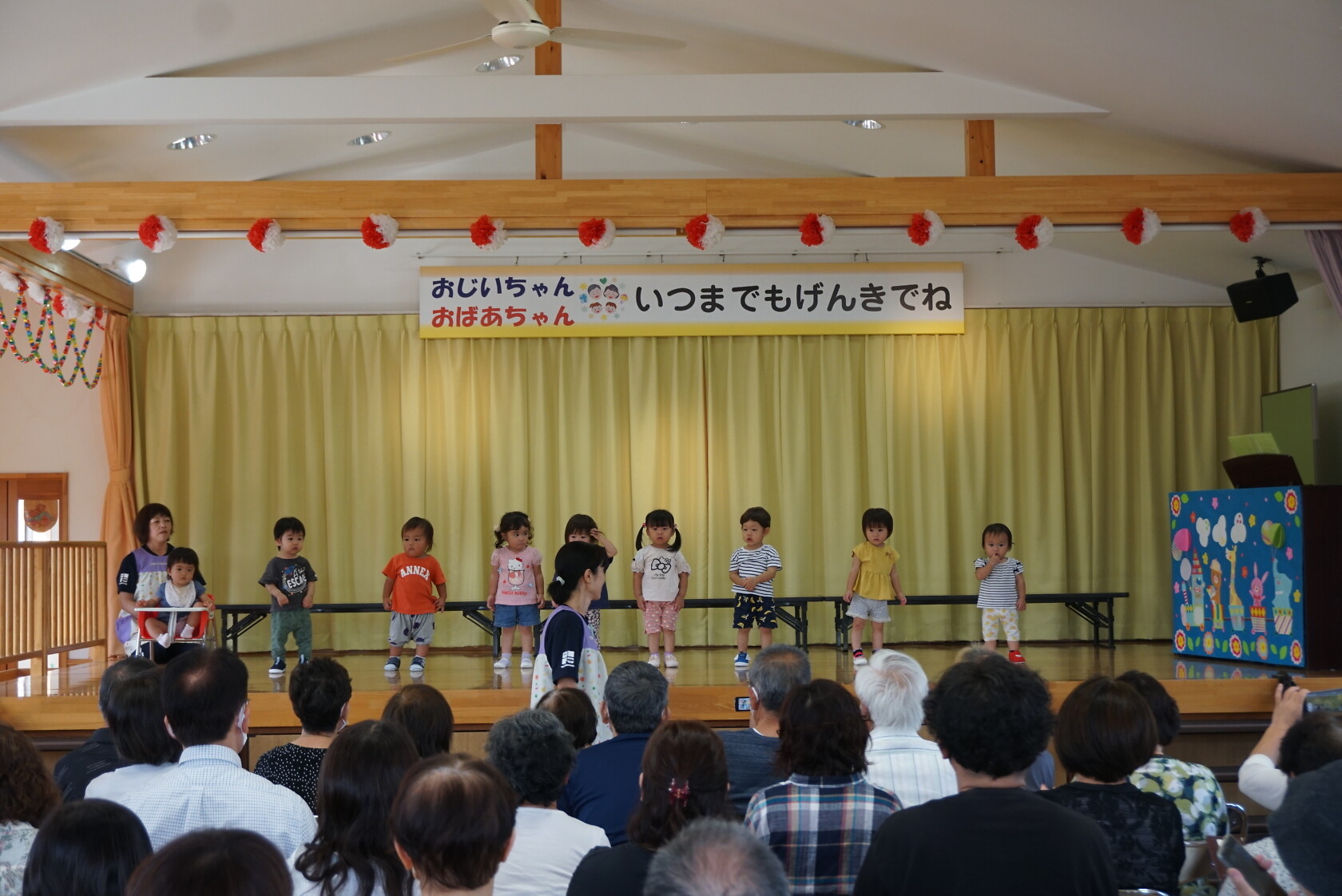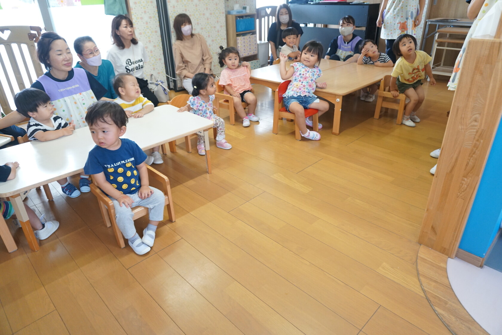 祖父母参観 公開済み: 2023年9月11日更新: 2023年9月11日 今日は祖父母参観がありました!! ホールで歌のプレゼントをした後、各組で活動をしました!! 普段と違う雰囲気に緊張して泣き出すおともだちもいましたが、保育園の様子を見てもらうことができました😁 今日はお忙しい中ありがとうございました!