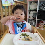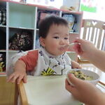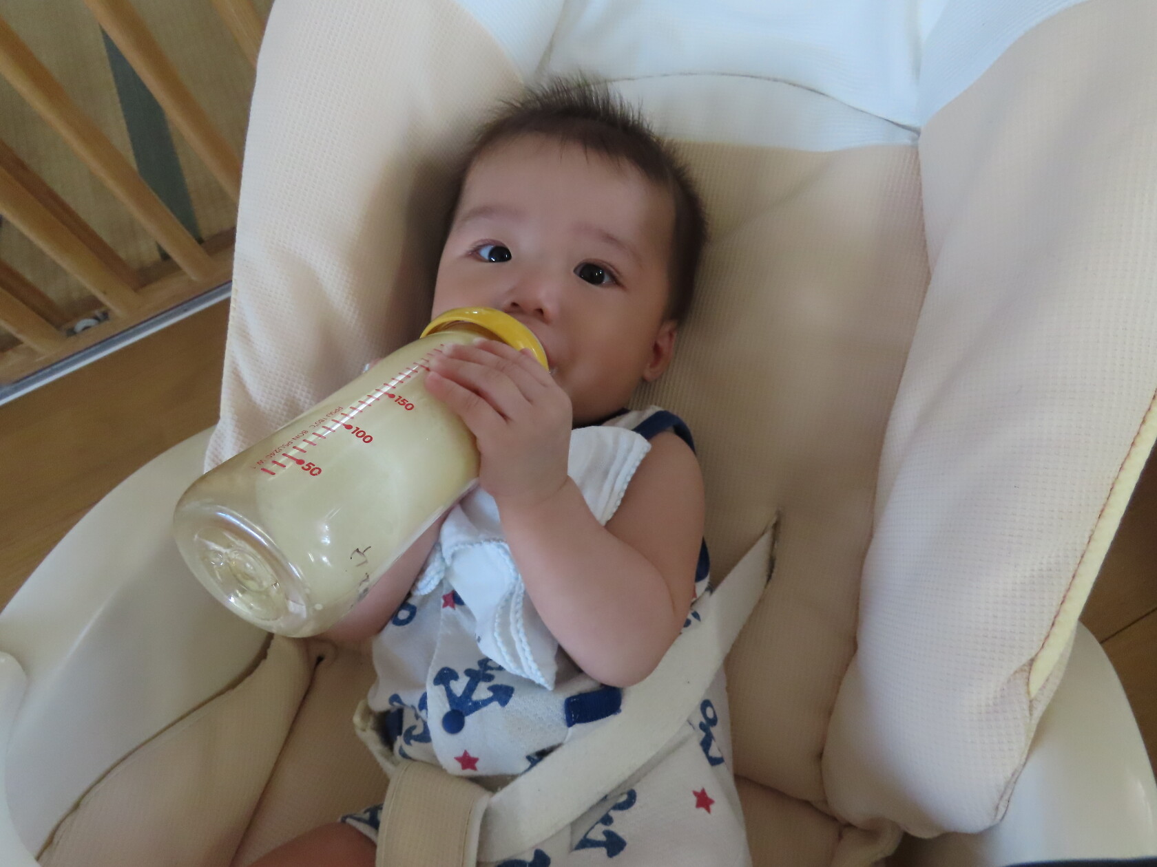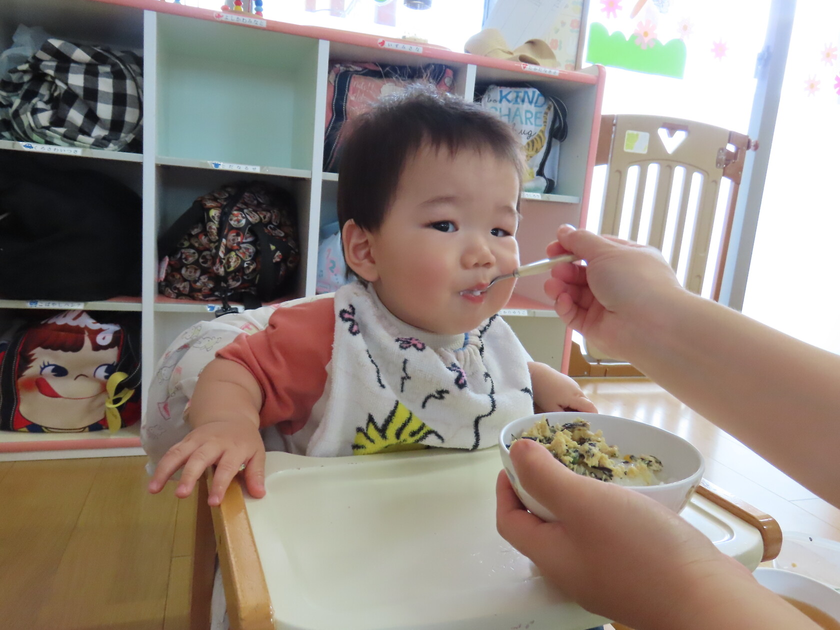 0歳児さんは、哺乳瓶を自分で持ってミルクを飲んだり、離乳食を好き嫌いせず、何でもよく食べています✨