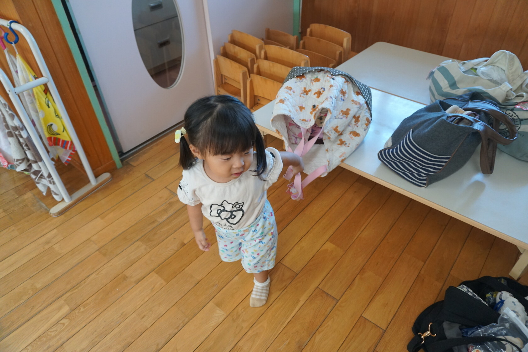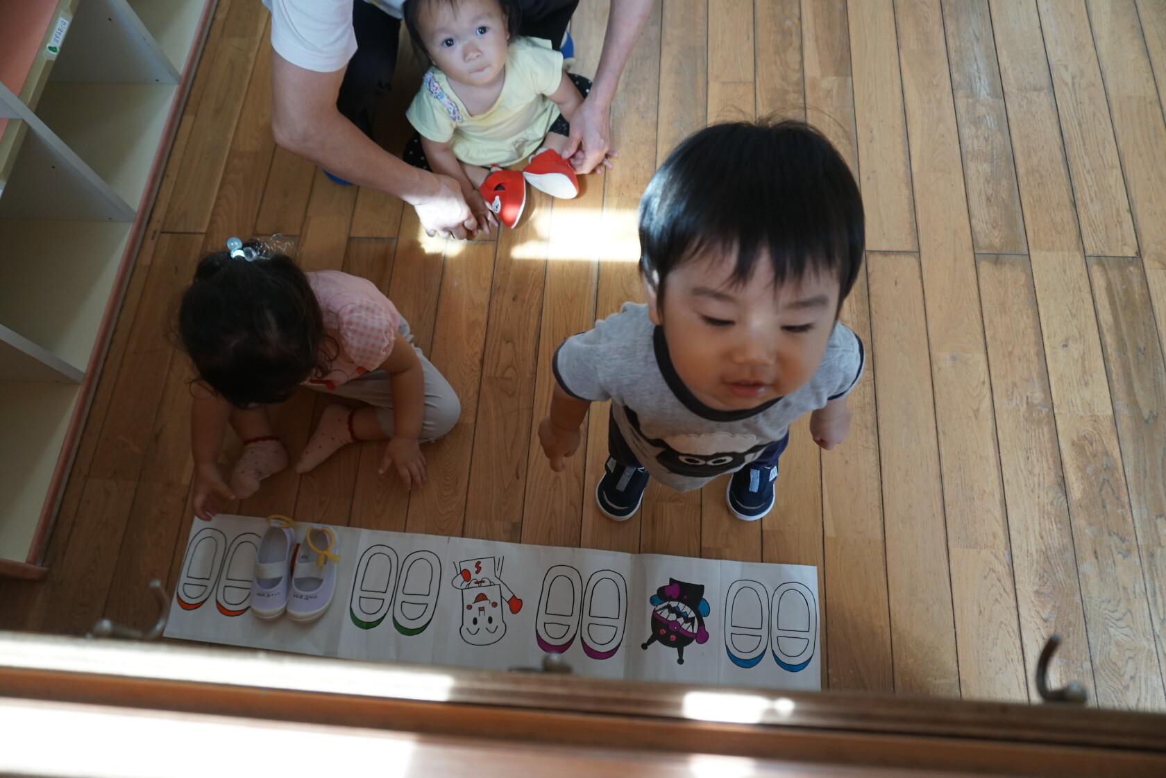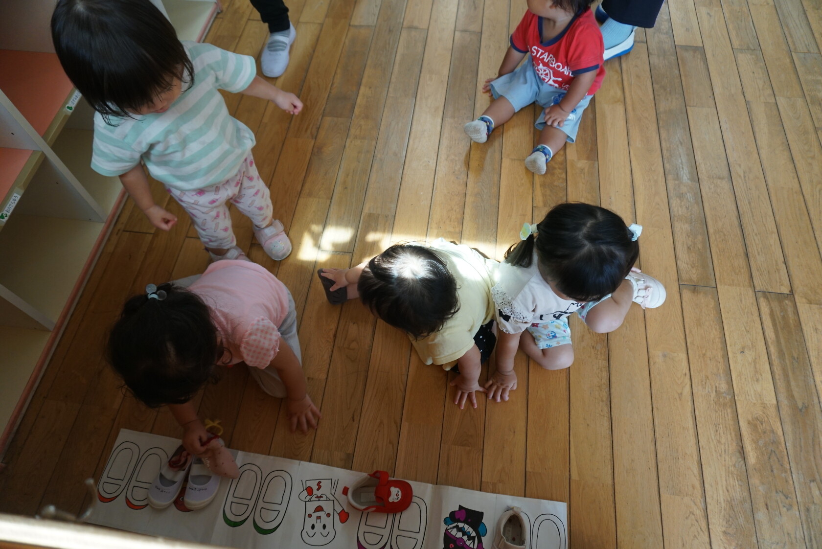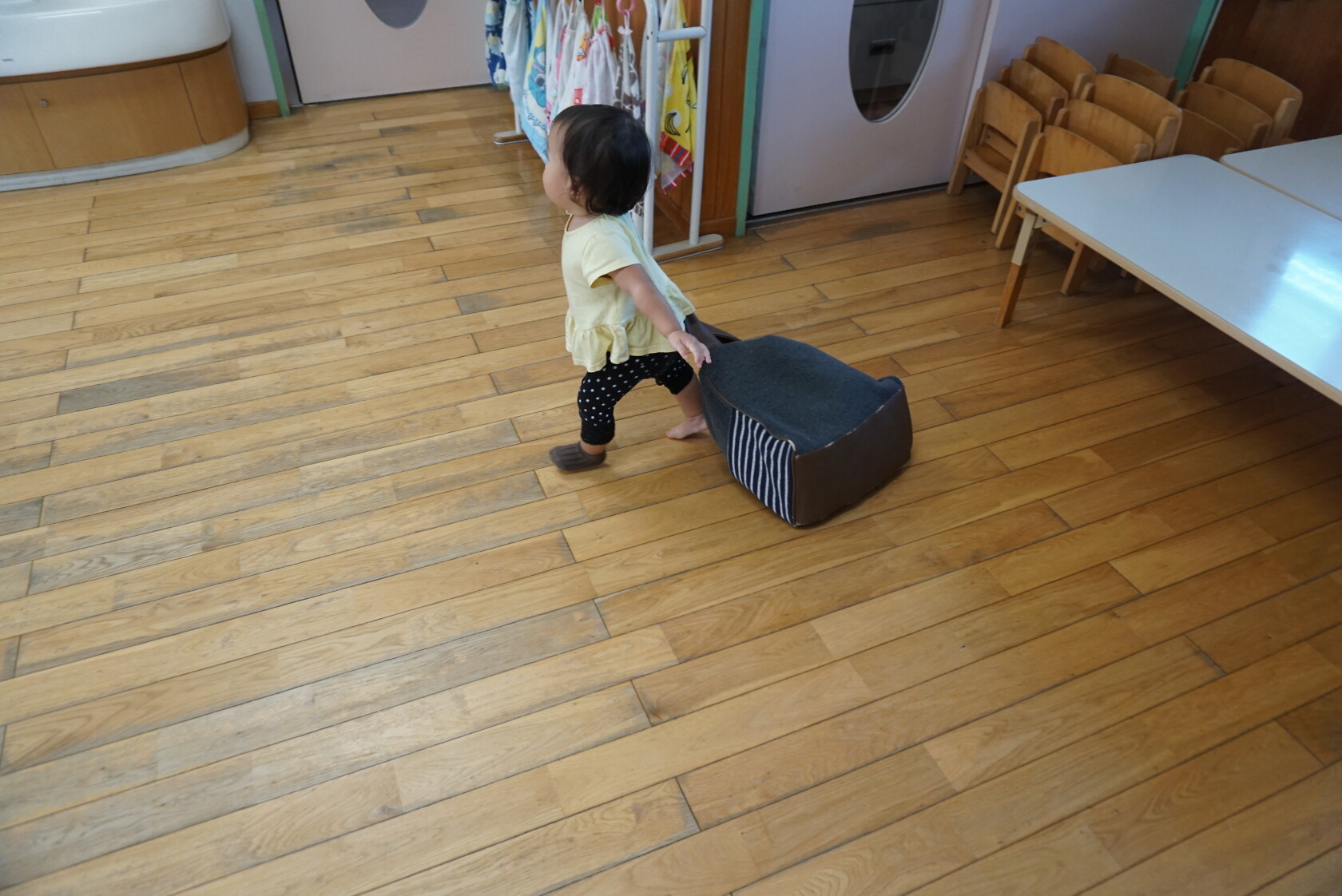 お着替えの前には、上履きを決められた場所に置き、カバンを運んだりしています💨 トイレやお着替えでは、ズボンやパンツの上げ下ろしを頑張っています💪