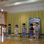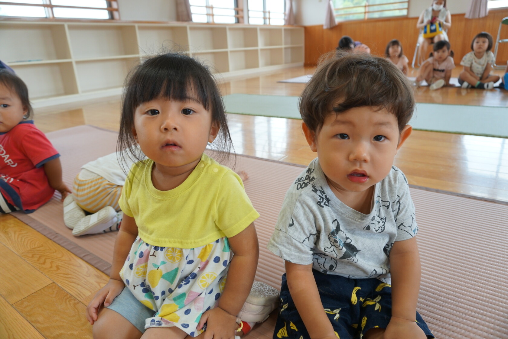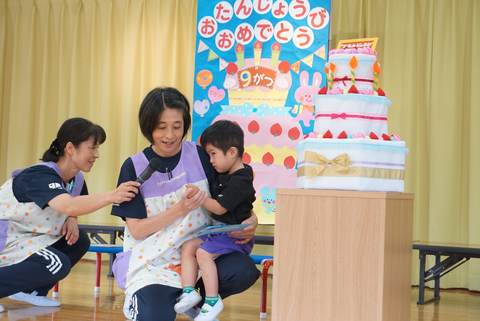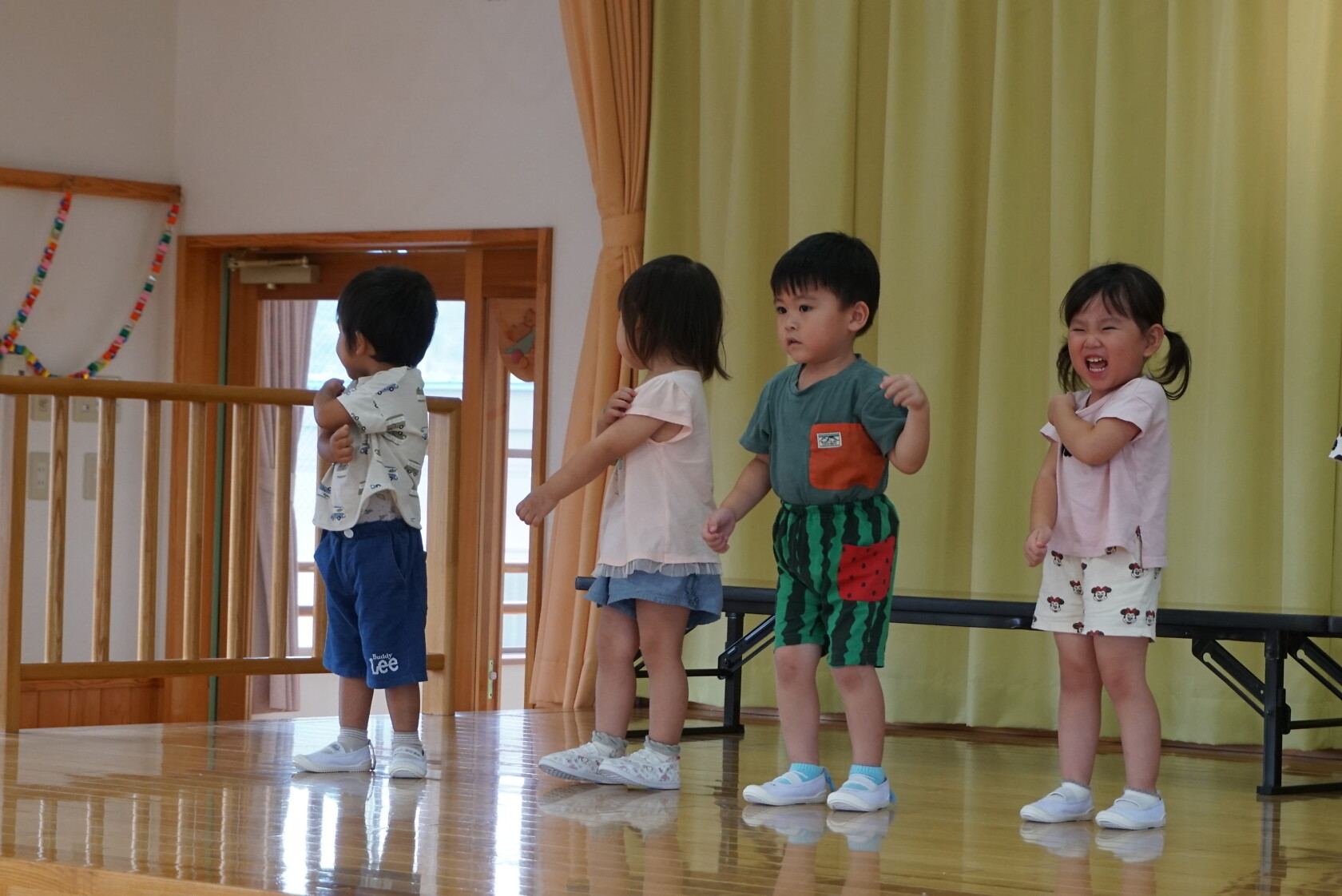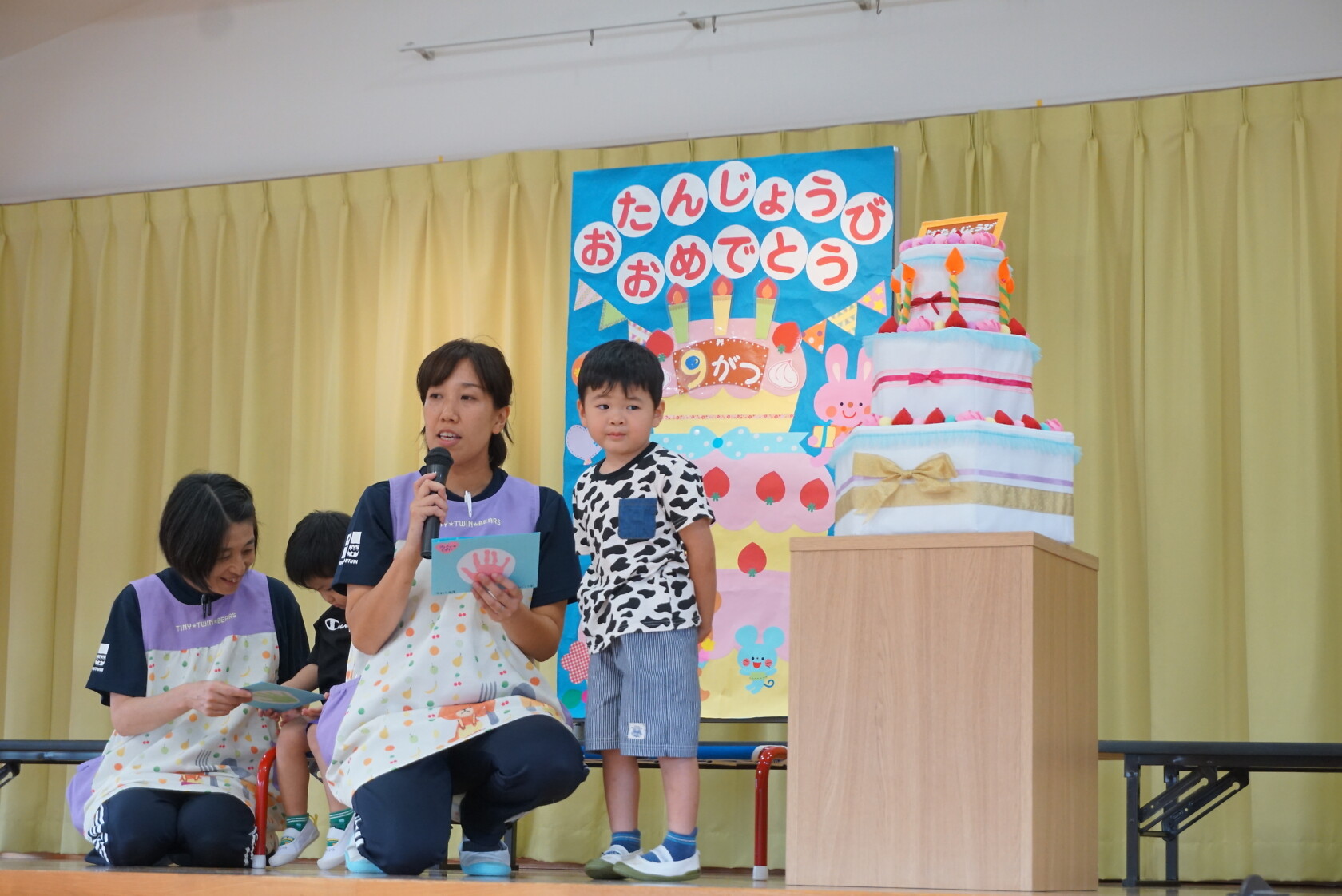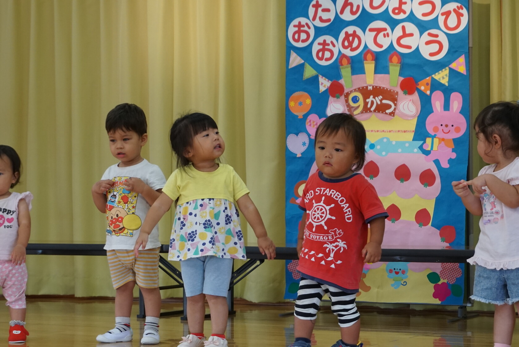 お誕生会(未満児) 公開済み: 2023年9月20日更新: 2023年9月20日 今日は、9月生まれのお誕生会でした🎂 未満児は、ちゅうりっぷ組から2名のお友達が舞台に上がりました😃 いつもと違う環境の中で、練習通りにはいかなかったようですが、時々、笑顔が見られましたね🎵 歌のプレゼントでは、小規模ちゅうりっぷ・さくら組「かたたたき」「大きな栗の木の下で」 さくら組「かたたたき」「いもほりのうた」 ちゅうりっぷ組「かたたたき」「おへそ」を、歌ってくれました🎼 令和5年度が始まり、半年がたちました🙂 4月当初に比べ、みんなが笑顔で舞台に立つことができ、とても成長を感じています😊 これからも、楽しみです✨ 9月生まれのお友達、おめでとうございます👏