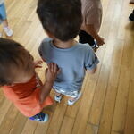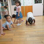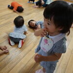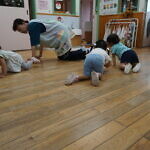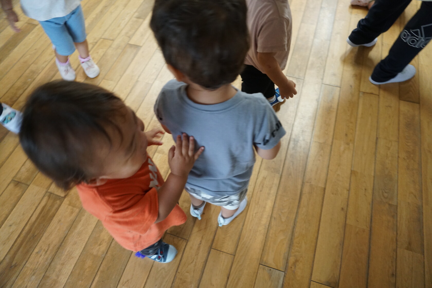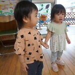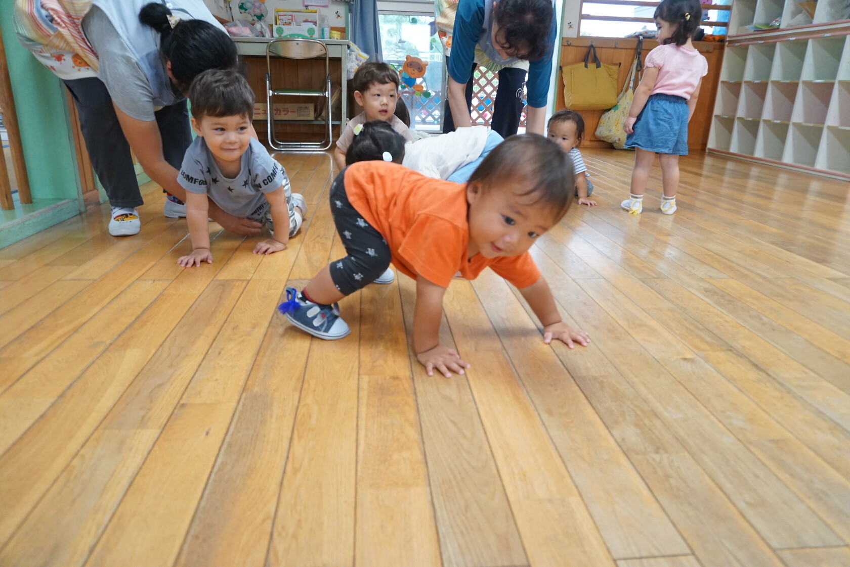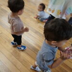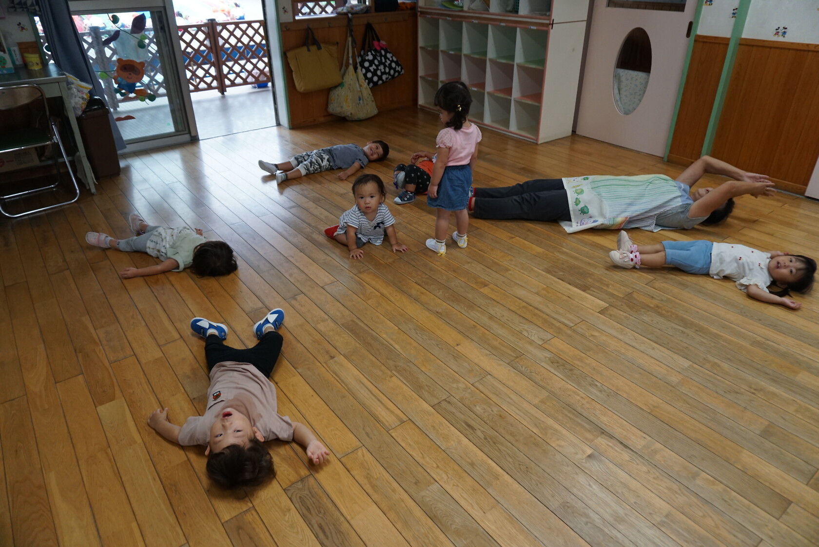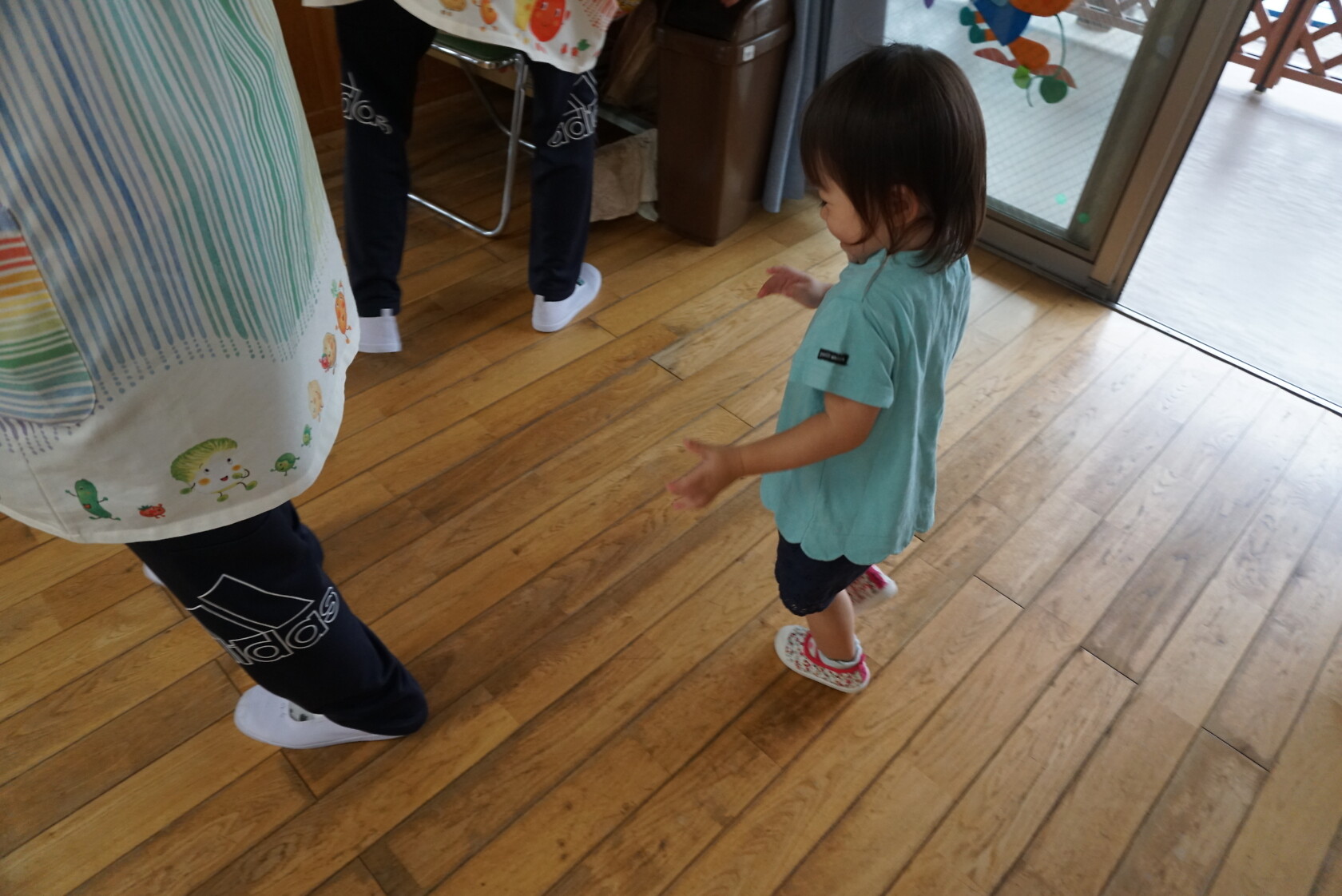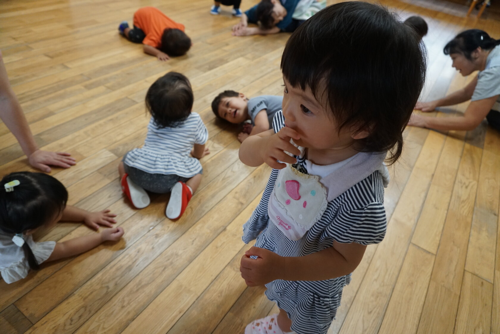今日は久しぶりに気温が下がり、いつもより過ごしやすい気候となりました☁ 外では、以上さんが体育指導で運動会の練習をしていたので、さくら組さんは外の様子を見て応援したり、おもちゃで遊んだり、リトミックを楽しみました🎵 以前よりも動きが上手になり、ピアノの音が変わると、違う動きができるようになってきました👍 今は、歩く・うさぎ・馬・汽車・メダカ・金魚と簡単な動きですが、少しずつ色々な動きを増やしていけるようにしていきたいと思います😊