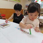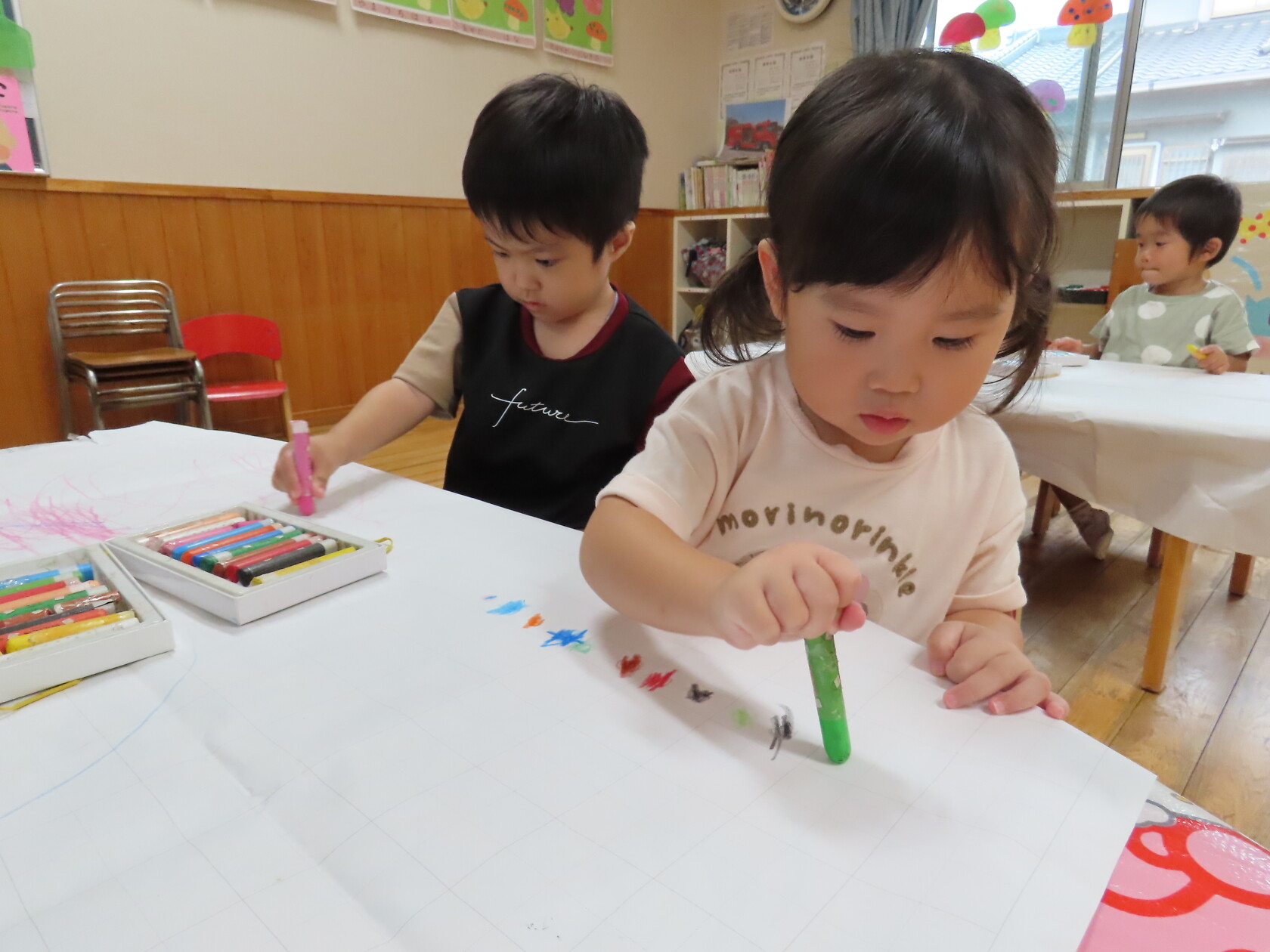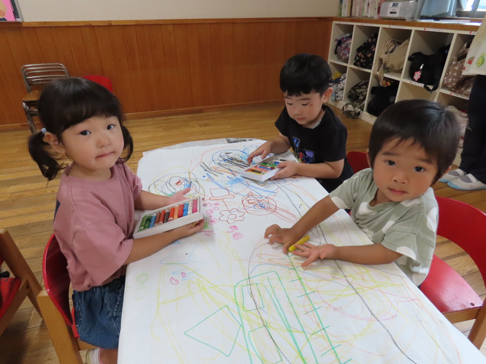 みんなで仲良く使うこと、使いたい色が一緒だったら順番に使うことを約束してから始めると…