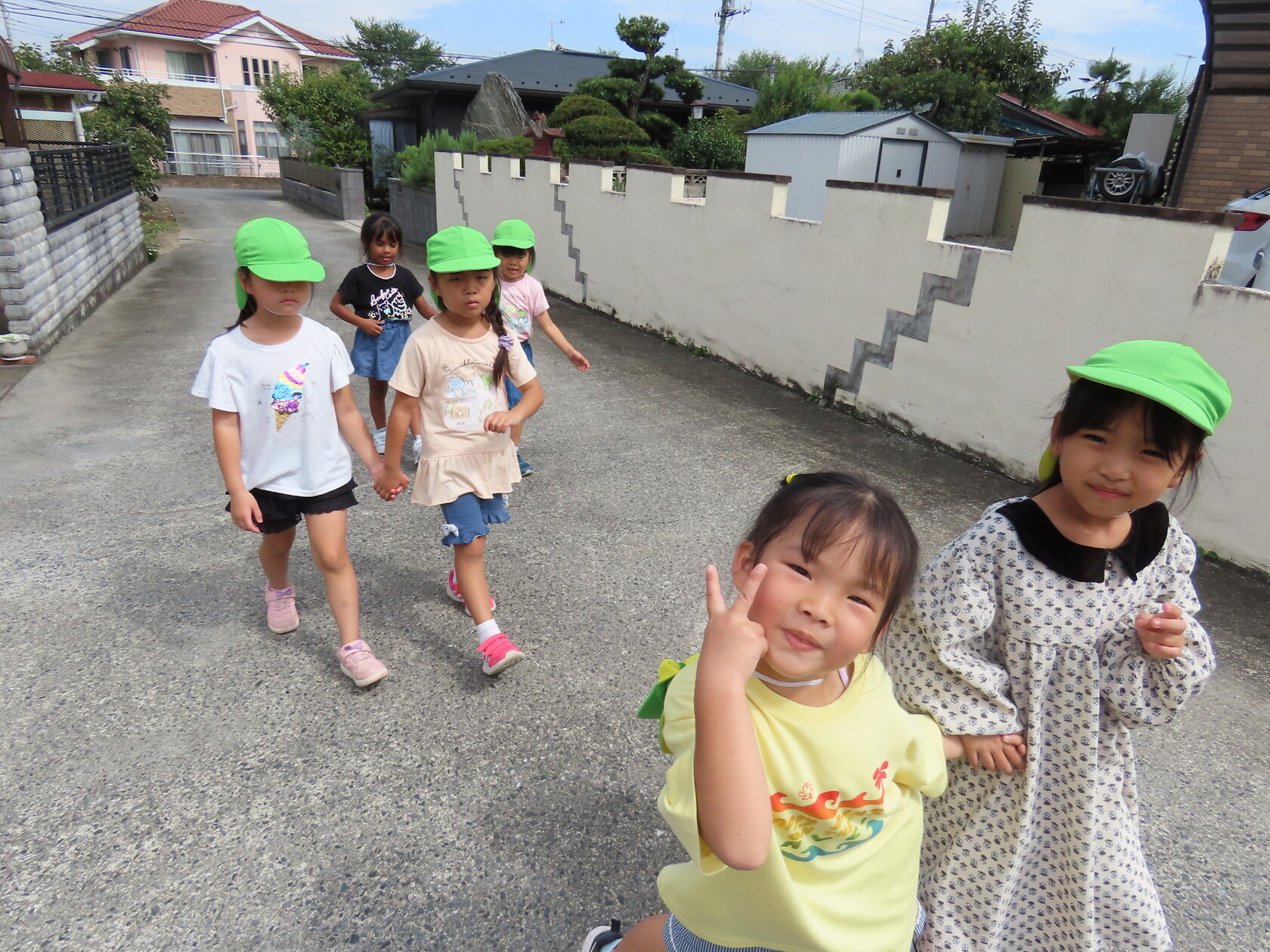 今日のできごと(ひまわり) 公開済み: 2023年9月27日更新: 2023年9月27日 今日は午前中鼓笛やクラス競技の練習をし、冷たい麦茶で水分補給をしてから久しぶりに少し園外散歩に出かけました😆。 さて、今回のコースは、、、? 立ち寄った場所でおみやげをいただきました✨。