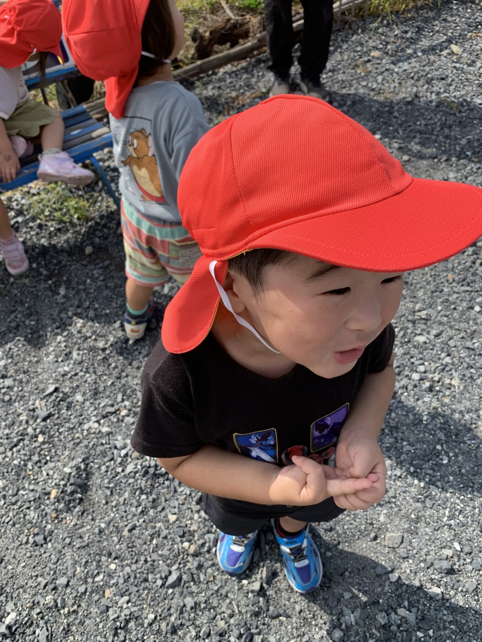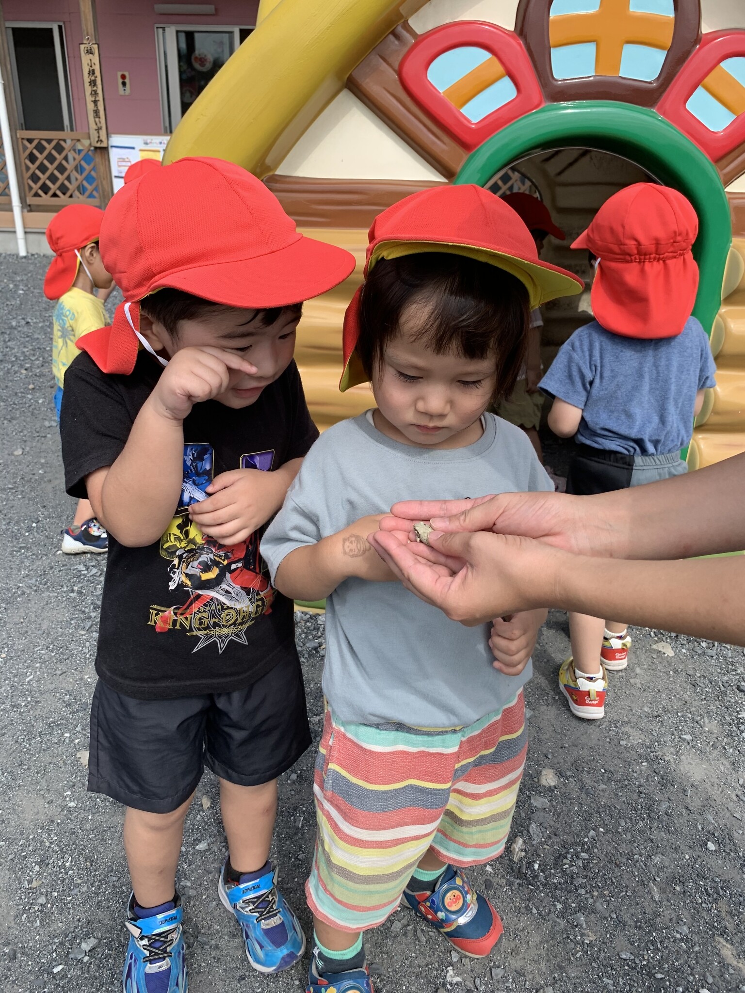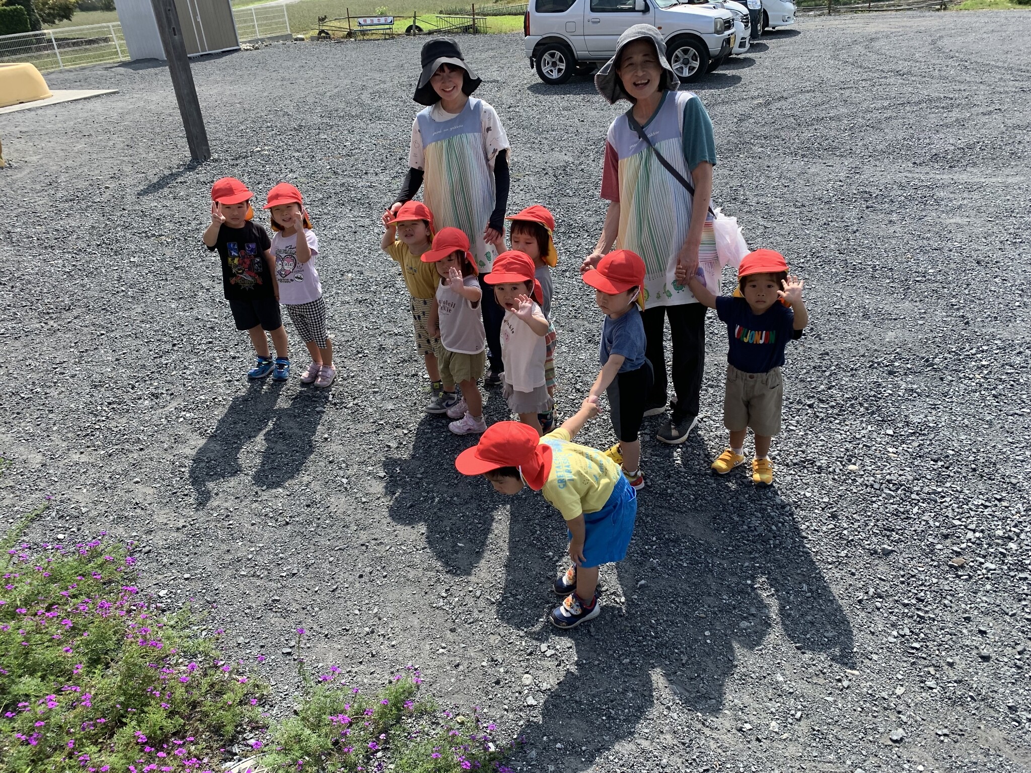 今日のできごと(ちゅうりっぷ) 公開済み: 2023年9月28日更新: 2023年9月28日 今日は、小規模さんへお散歩に行きました。 かわいい紫色のお花や、小さな虫も発見しました🐜 トンボやアリ、ちょうちょ、バッタ、カエルを見つけ大興奮のちゅうりっぷ組さんでした!! その後、小規模のお部屋にお邪魔して一緒に遊びました😁 お家でも、お話を聞いてみて下さいね♬♬