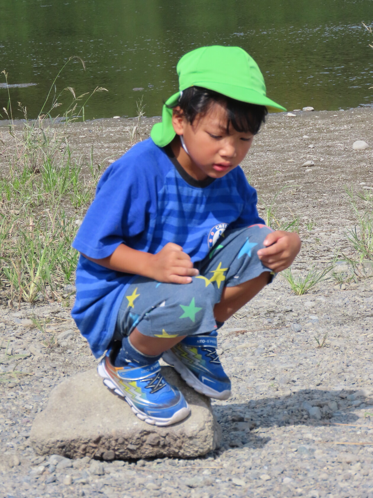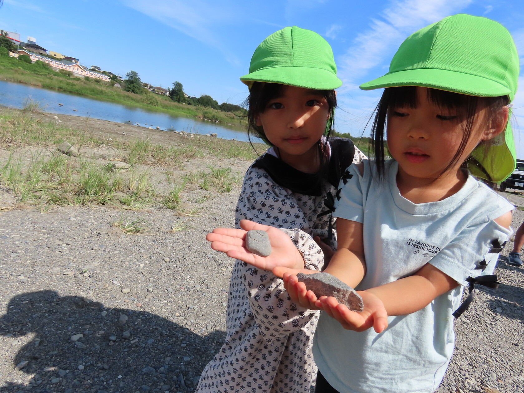 今日のできごと(ひまわり) 公開済み: 2023年10月3日更新: 2023年10月3日 今日は暑い日差しが弱まったので久しぶりに散歩へ行きました😁 途中、ザリガニをみつけてみんなで寄り道をしたりして河原に行きました😁 河原では水分補給をした後に石を積んだりして遊びました😁