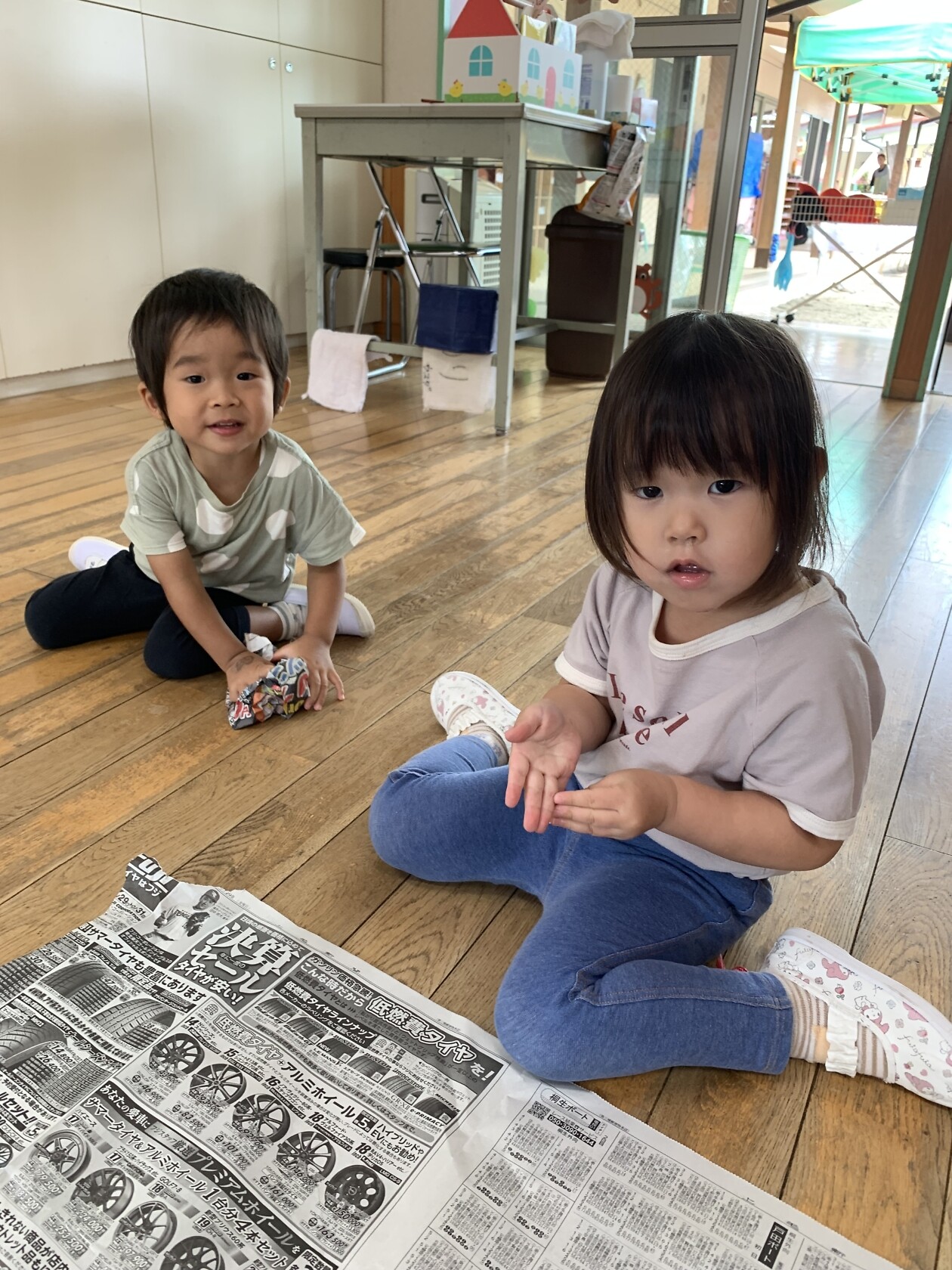 今日のできごと(ちゅうりっぷ) 公開済み: 2023年10月5日更新: 2023年10月5日 来週はいよいよ秋季遠足ですね😆 今日はお部屋で遠足ごっこをして遊びました。 「バスごっこ」を歌ったり、新聞紙をピクニックシートに見立てて、お弁当を食べる真似をしたりしてみました🍙 「お弁当は〇〇がいい!」など話しているお友達もいました! 体調に気をつけ、来週の遠足楽しみましょう🎵