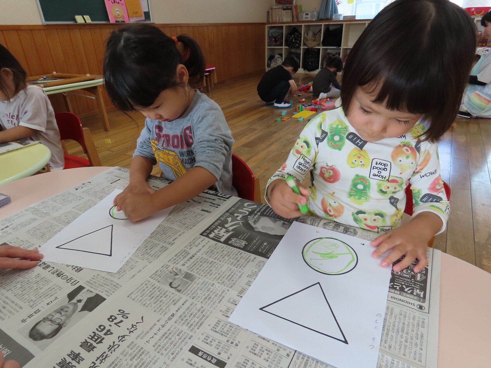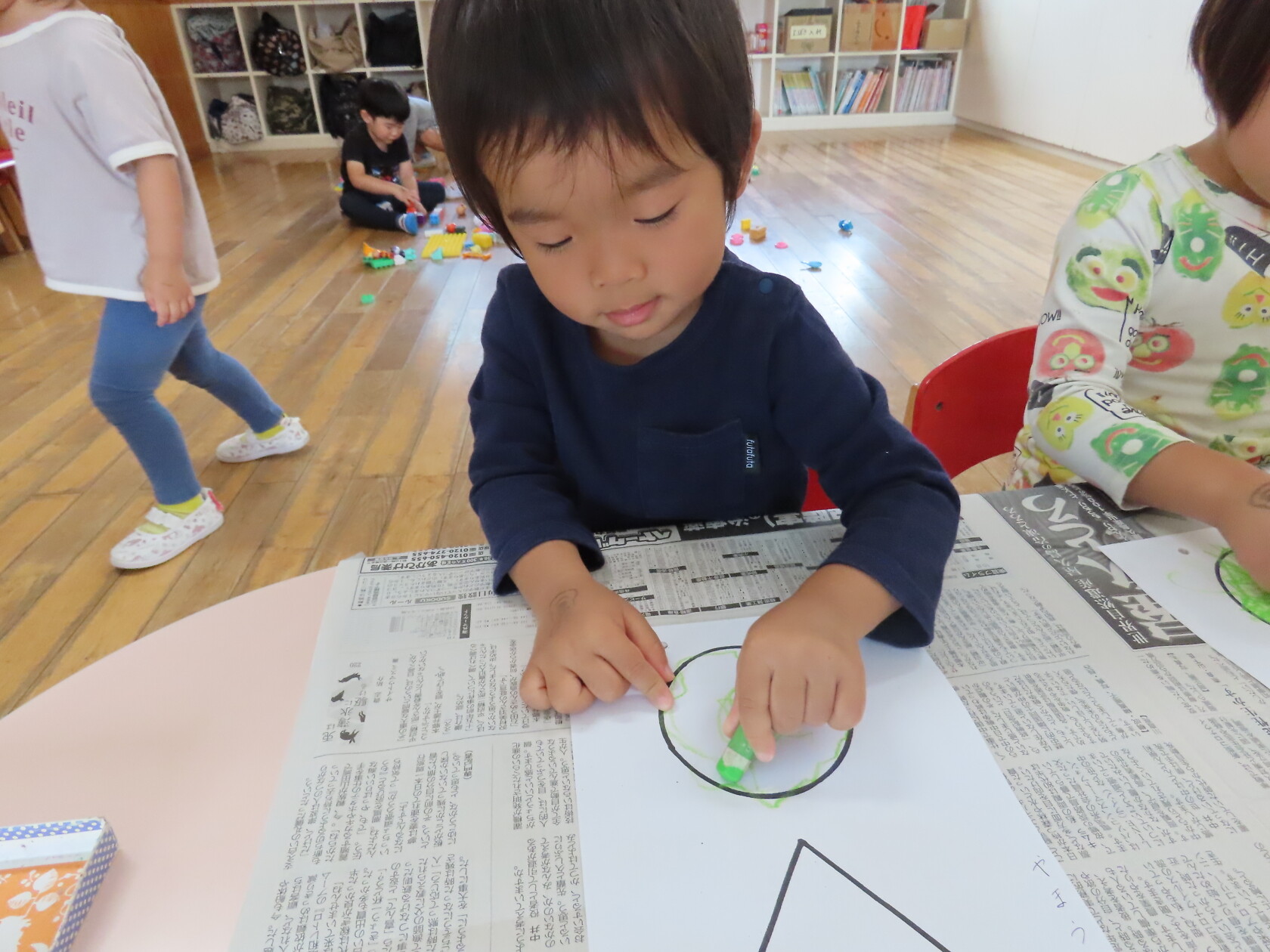 みんな先生の話をよく聞き、丸の中を真剣に塗っていました😊