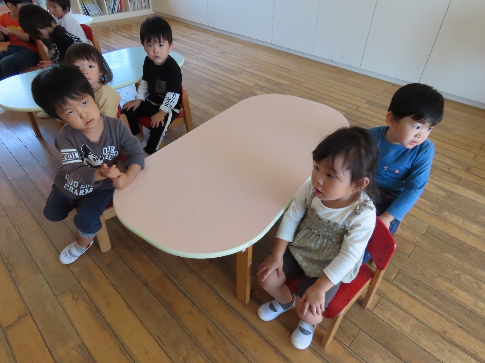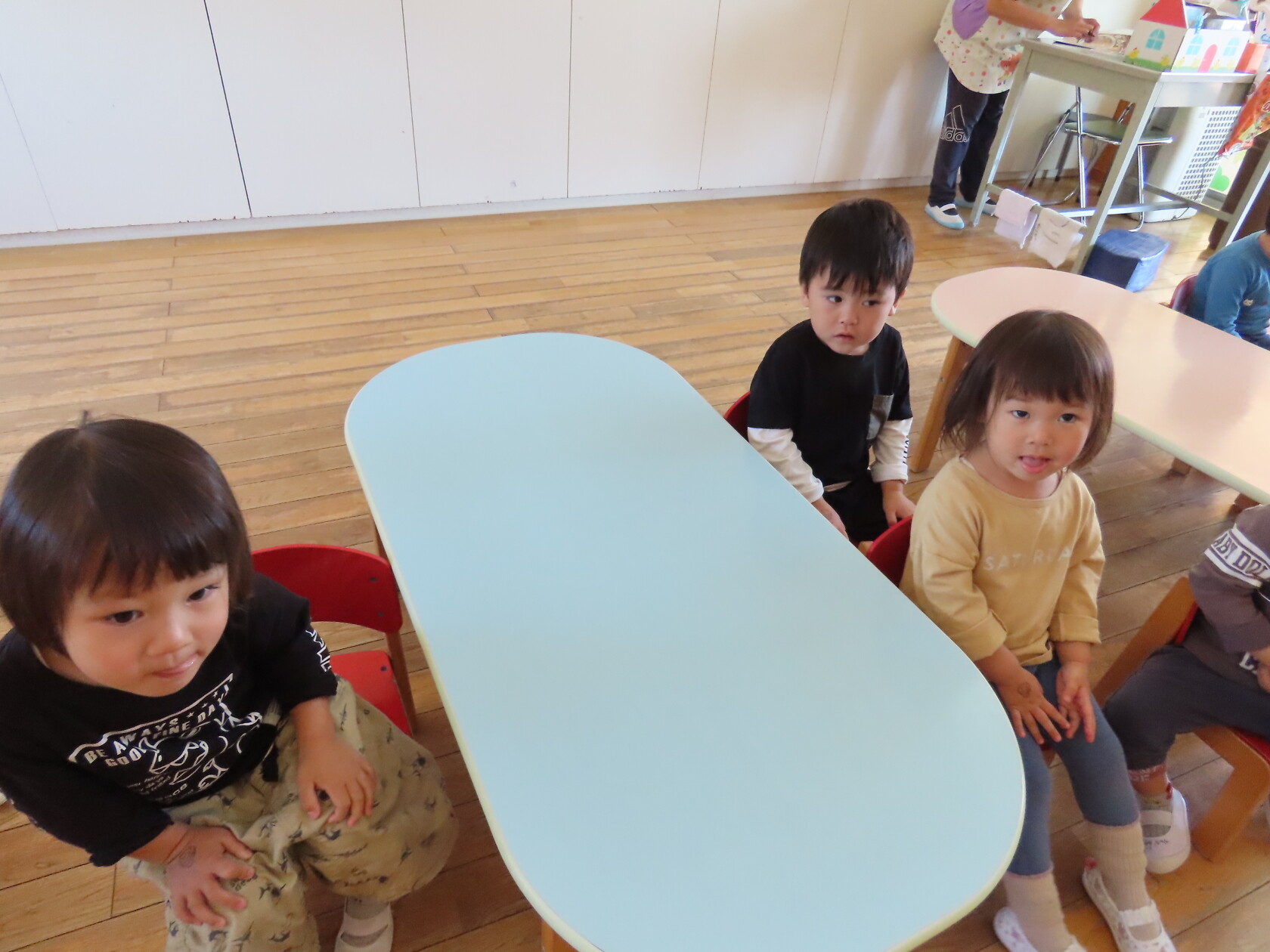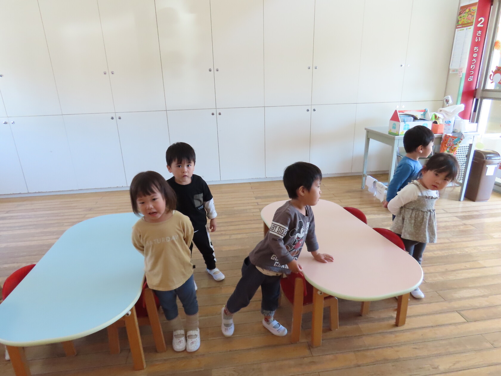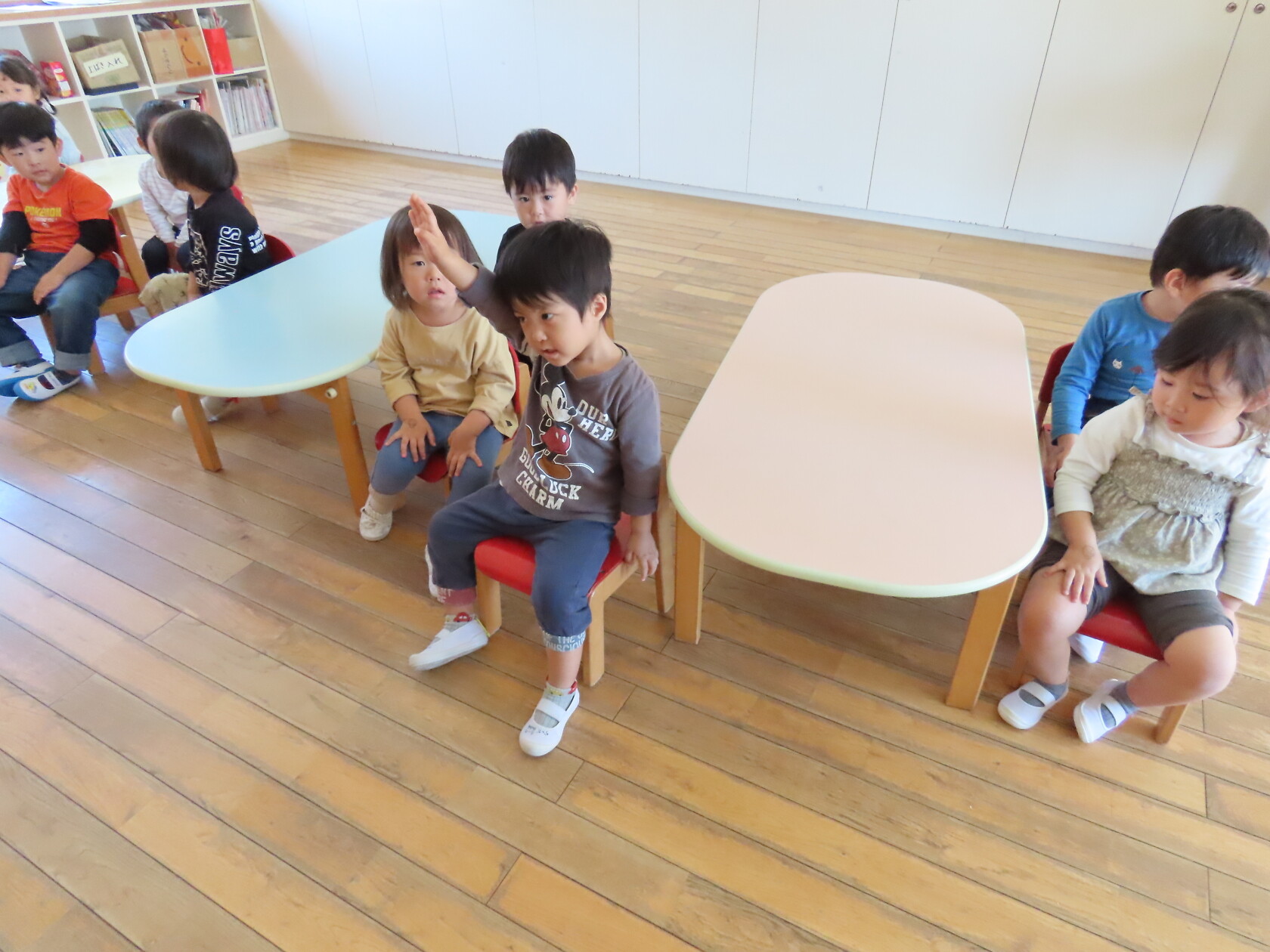 今日のできごと(ちゅうりっぷ) 公開済み: 2023年10月16日更新: 2023年10月16日 今日は朝の会の様子をパシャリ📸 園歌は少しずつ歌詞を覚え、歌える子が増えてきました🎵 月の歌も毎日楽しそうに歌っています🎤 出席確認では右手をピンと伸ばし「はい、げんきです!」と大きな声で言えるようになり、成長を感じます😊 休みのお友達もよく分かっていて、休みの子の人数を「ひとり」「ふたり」と数えるのがちゅうりっぷ組のちょっとしたブームになっています‼ 日々の生活の中で楽しく言葉を覚えていきたいですね✨