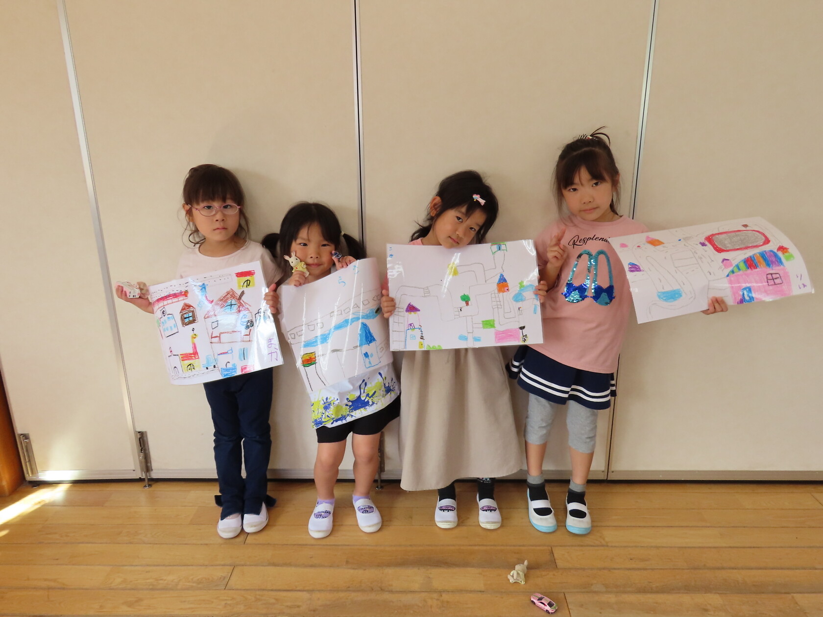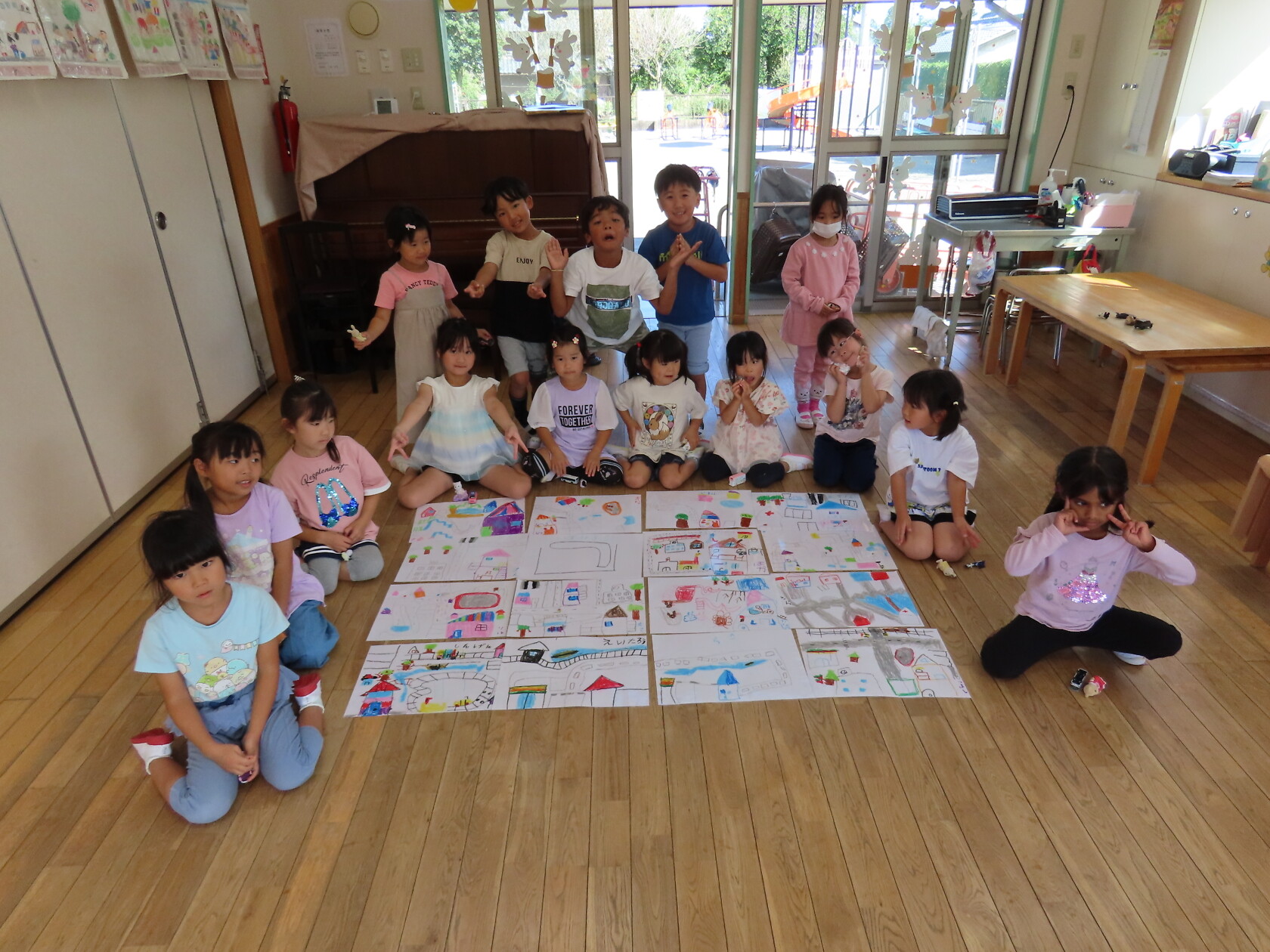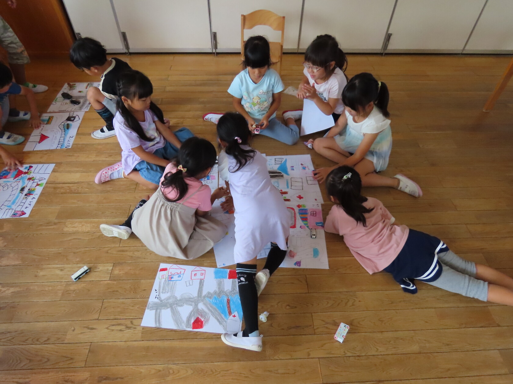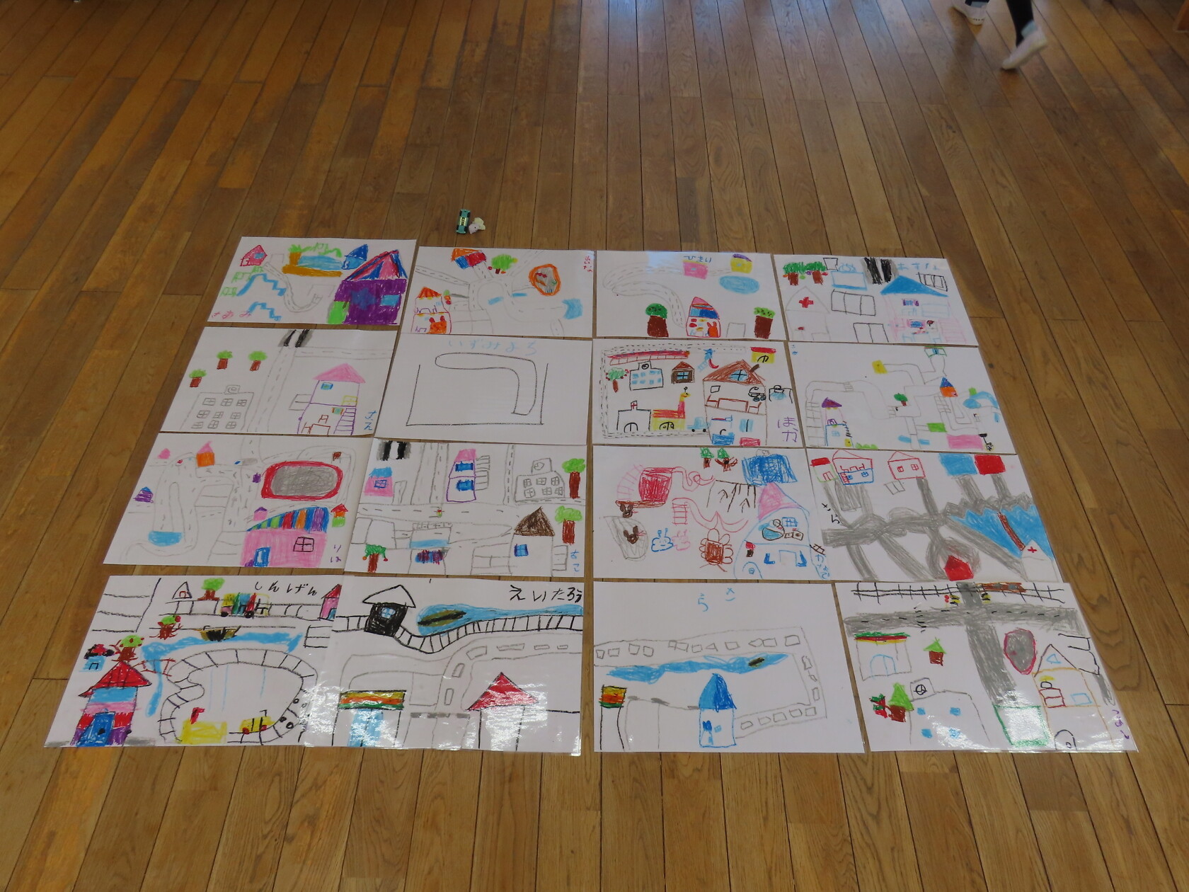 今日のできごと(ひまわり) 公開済み: 2023年10月16日更新: 2023年10月16日 今日はみんなでいずみ町をつくりました!! みんなが町づくりのリーダーになって、自由に町を描きました😁 各々でつくった町を最後合体させると大きな町ができました😁 出来た後は、トミカやぬいぐるみを使って遊んでいました😊