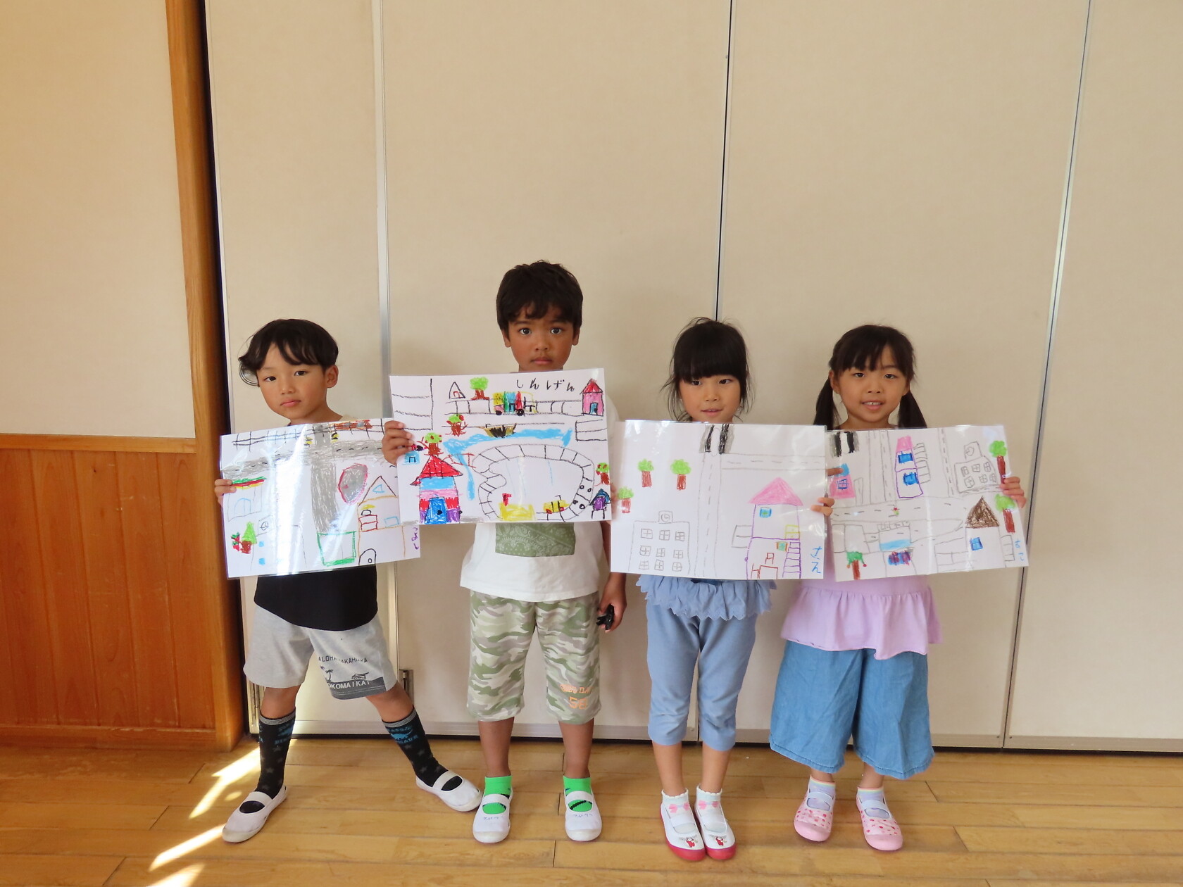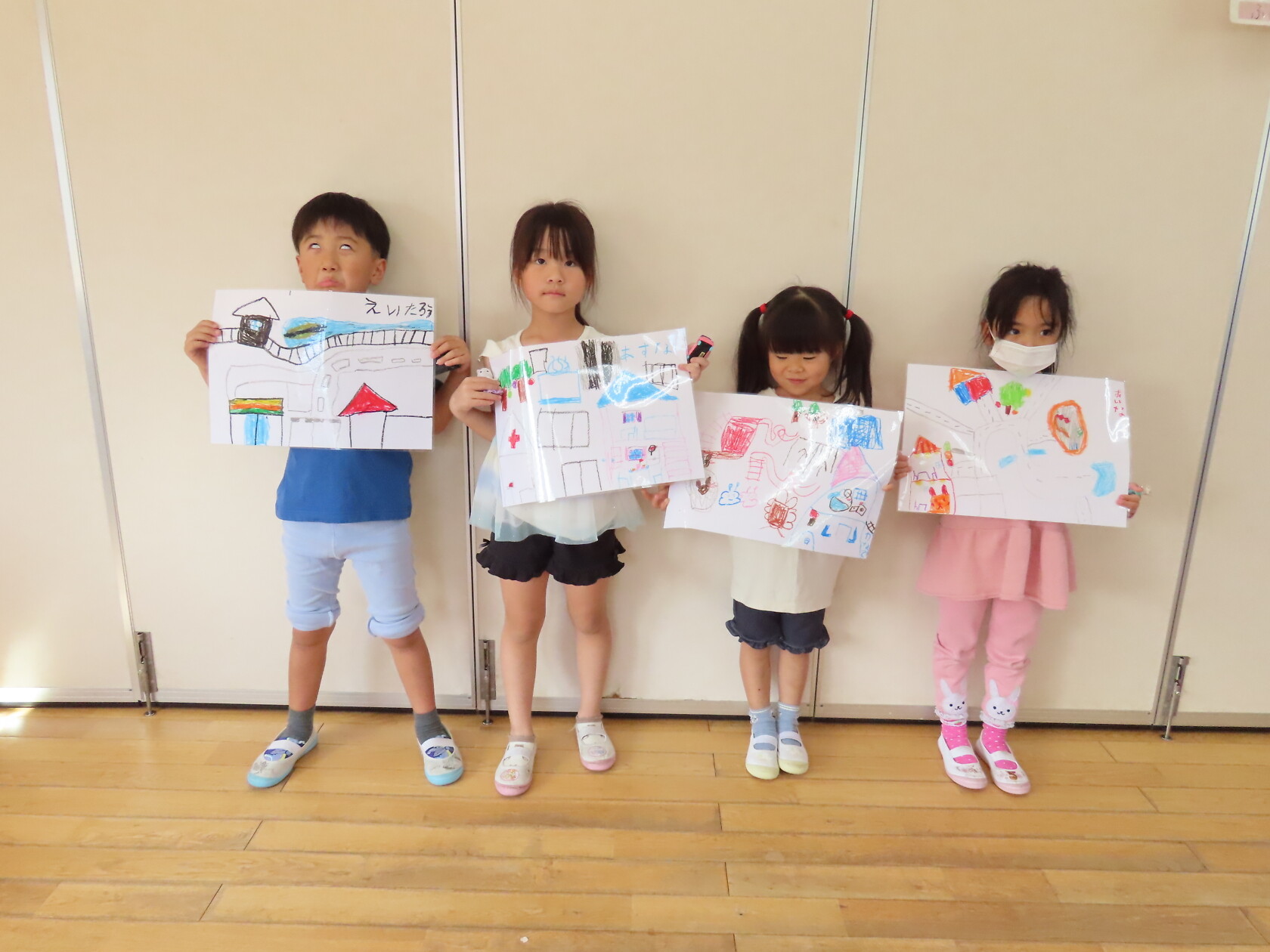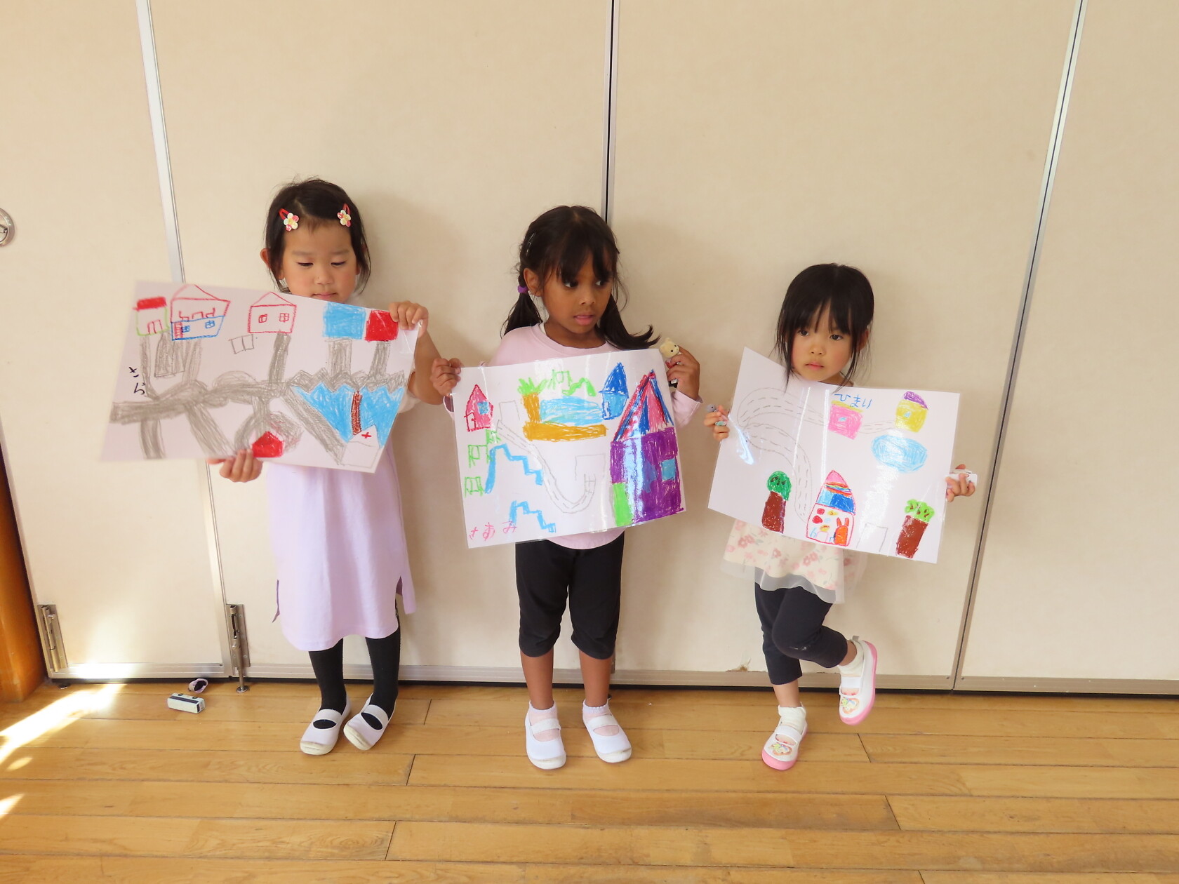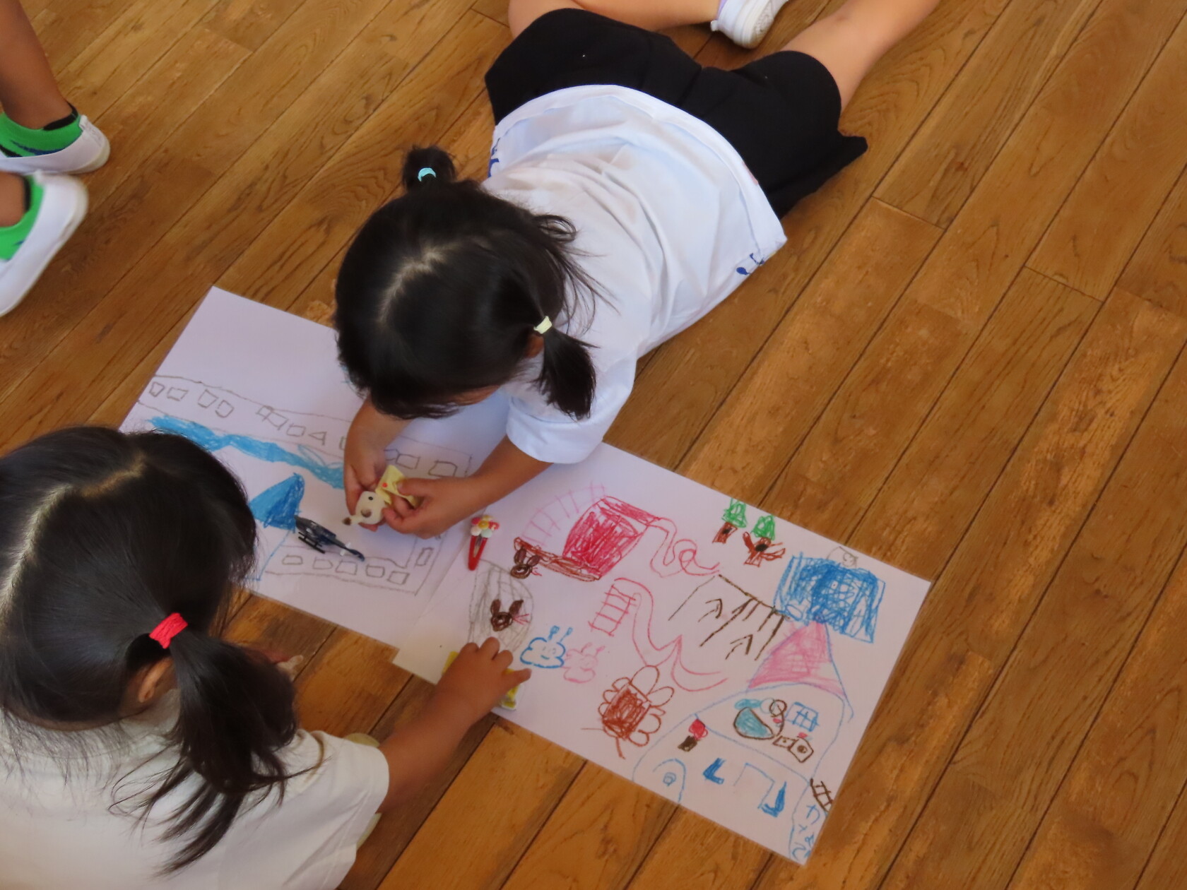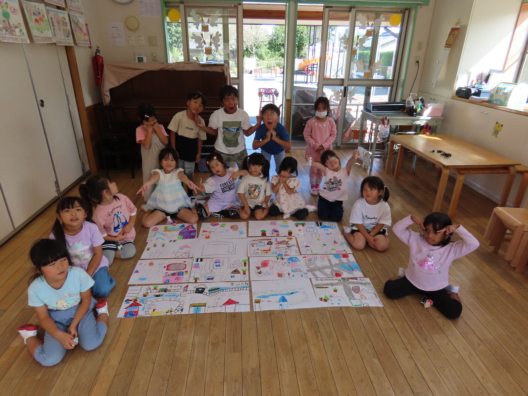 今日のできごと(ひまわり) 公開済み: 2023年10月16日更新: 2023年10月16日 今日はみんなでいずみ町をつくりました!! みんなが町づくりのリーダーになって、自由に町を描きました😁 各々でつくった町を最後合体させると大きな町ができました😁 出来た後は、トミカやぬいぐるみを使って遊んでいました😊