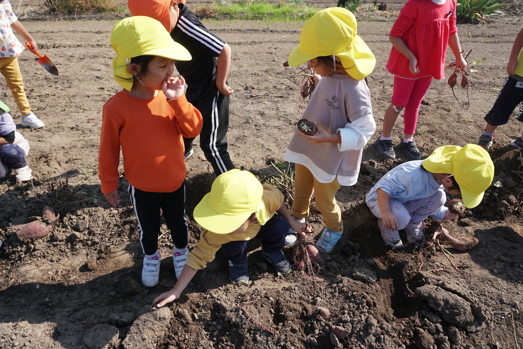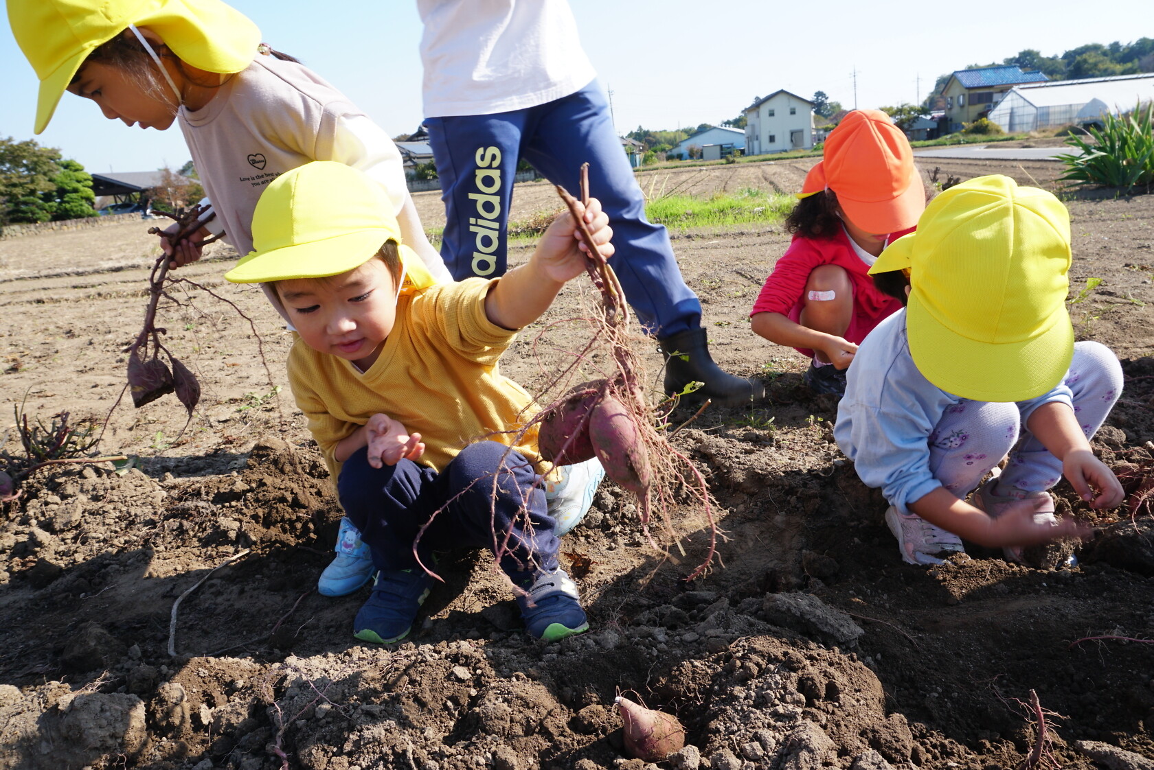 おいもほり(すみれ) 公開済み: 2023年10月27日更新: 2023年10月27日 今日はおいもほりをしました✨ 大きなおいもが採れると「見てみて!こんなに大きいよ!」と楽しそうにしていました😊給食やおやつが楽しみですね!!