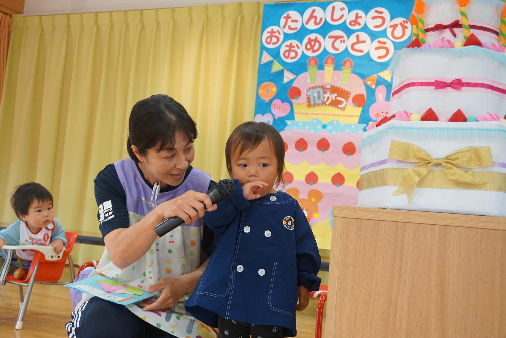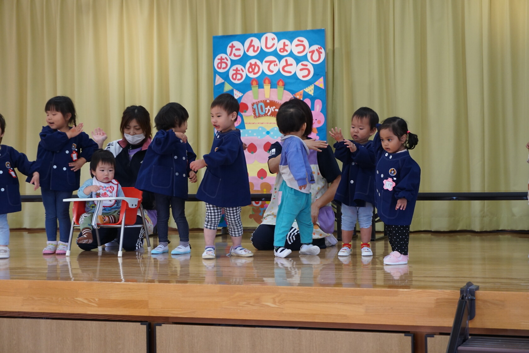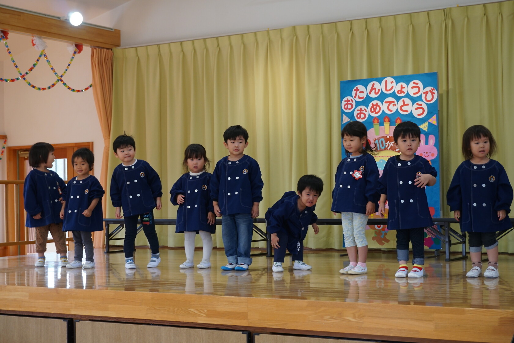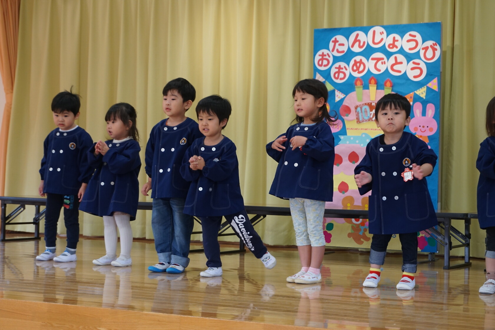 2人のお友だちが前に出て、お誕生日の歌を全員で歌いました!お誕生カードを担当の先生から頂いた後はお歌のプレゼント🎼