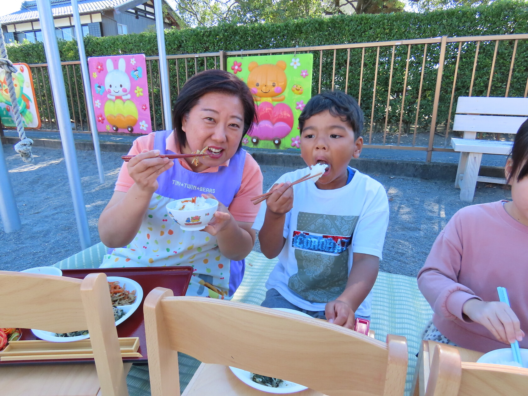 「みんなで外で食べるといつもより2倍おいしいねー😆!!」と嬉しそうな声も聞こえ、ちょっとしたハイキング気分でした‼