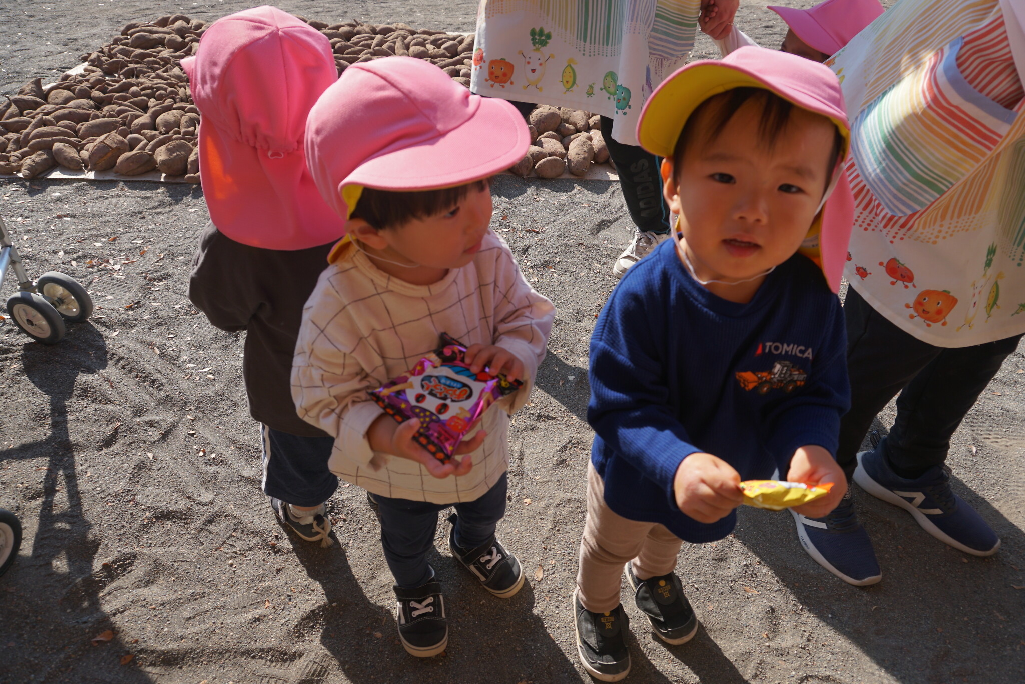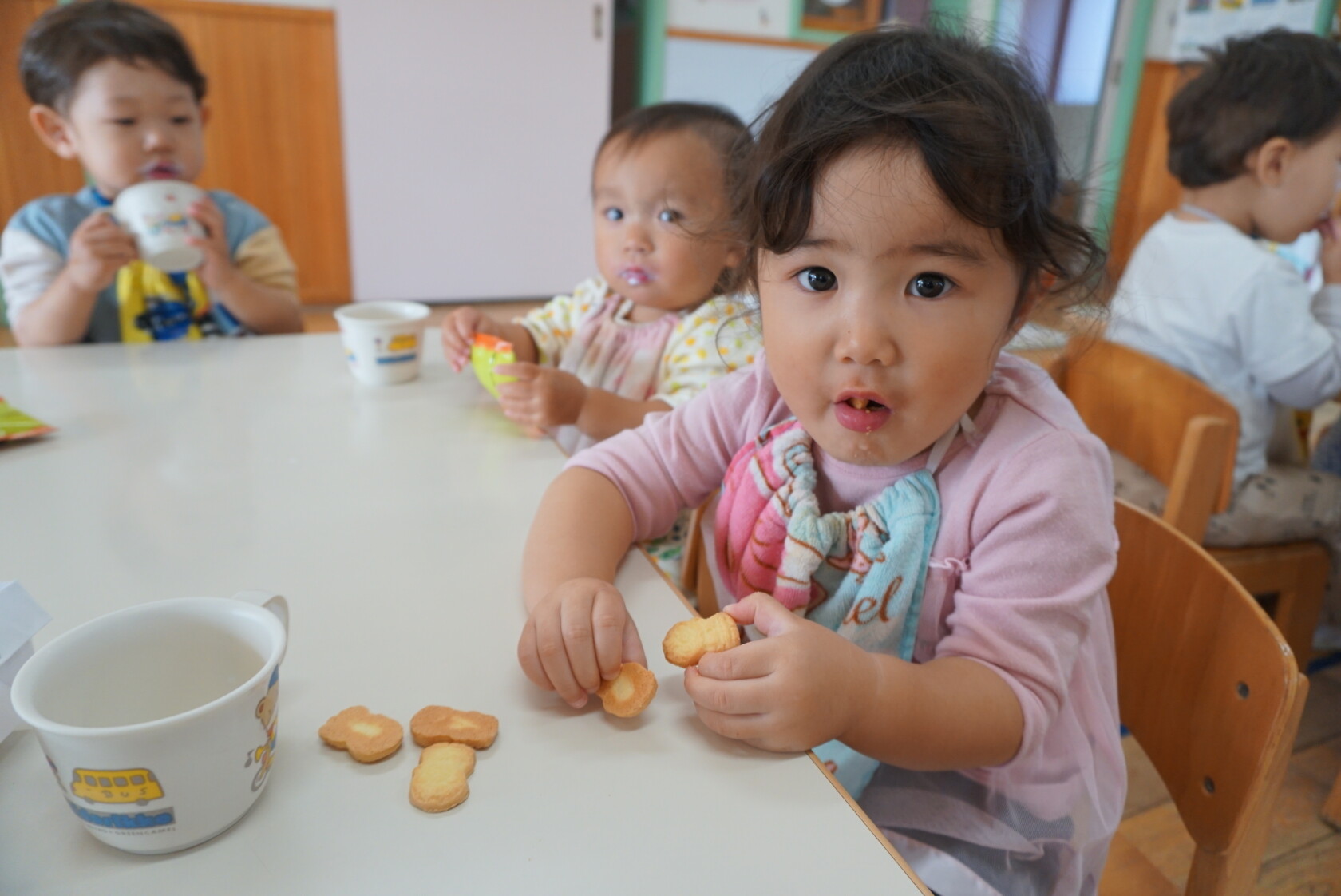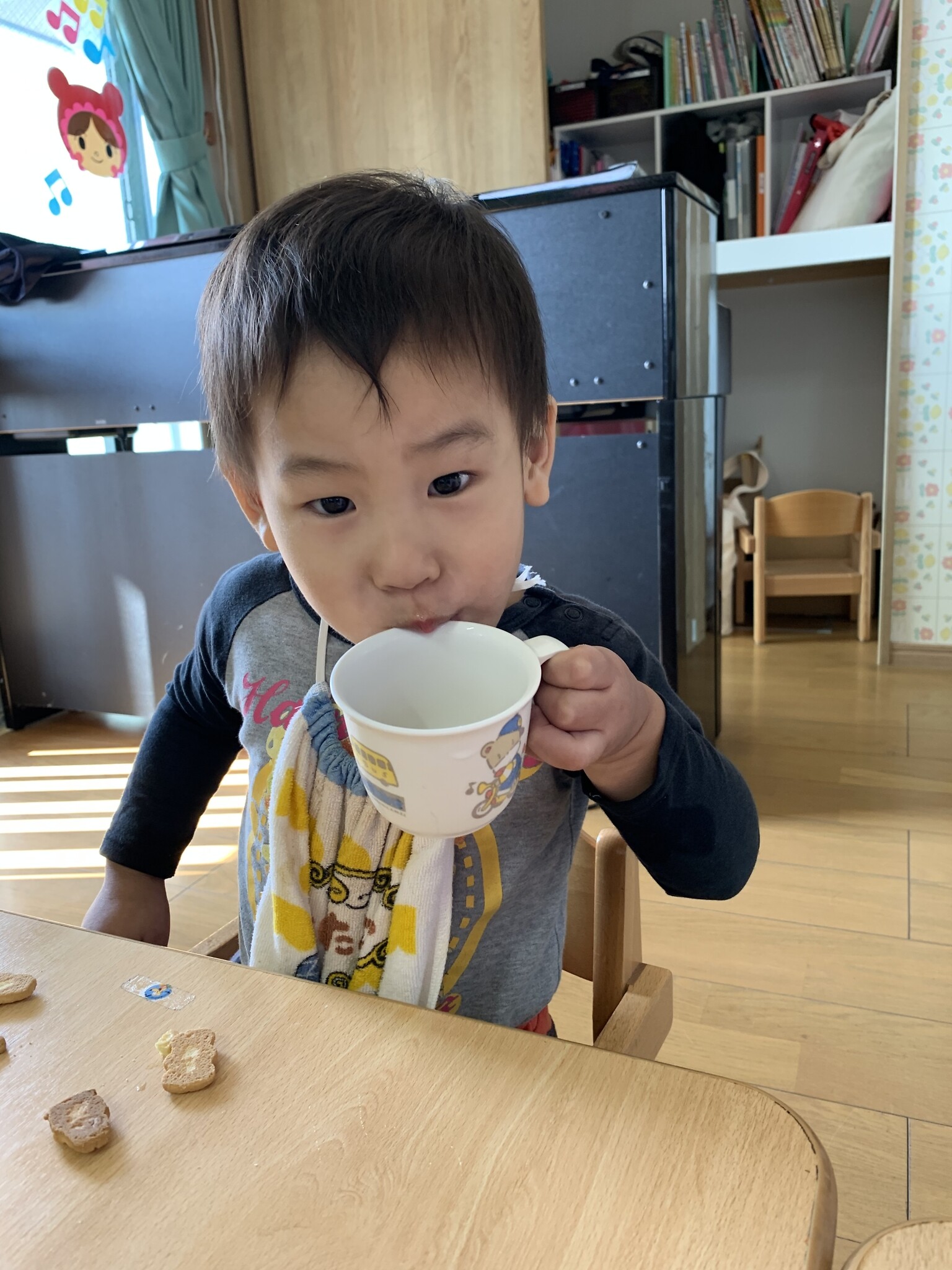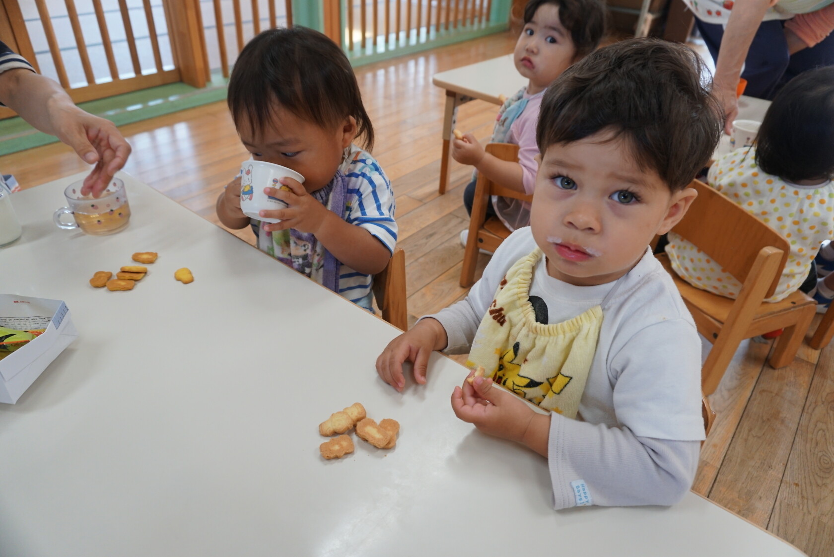ハロウィン(未満児) 公開済み: 2023年10月31日更新: 2023年10月31日 今日はハロウィンだったので事務所にお菓子をもらいにいきました😁 先生達からお菓子をもらって嬉しそうでした!! 午前中のおやつで美味しく食べました!!