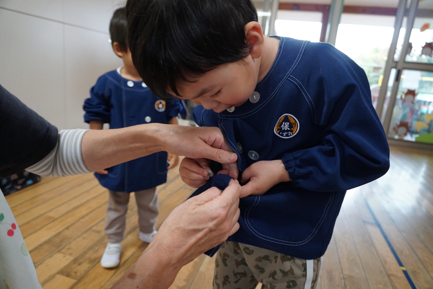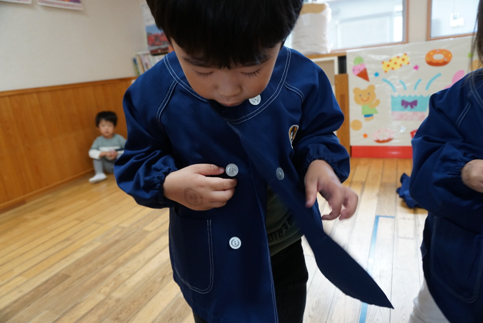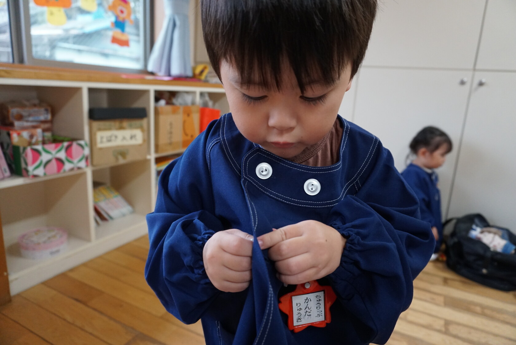 今日のできごと(ちゅうりっぷ) 公開済み: 2023年11月6日更新: 2025年8月7日 今園服を着ているところをパシャリ!! ボタンかけが一人でできるお友達が増えてきました👏 一つできると「見て!」と言いながら、かけたボタンを見せてくれます😊 お家でもチャレンジしてみてくださいね!
