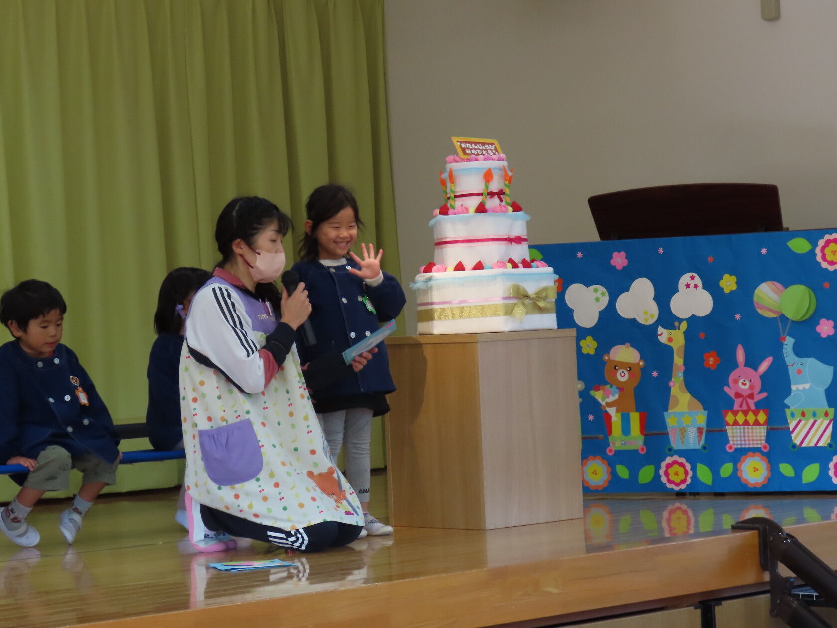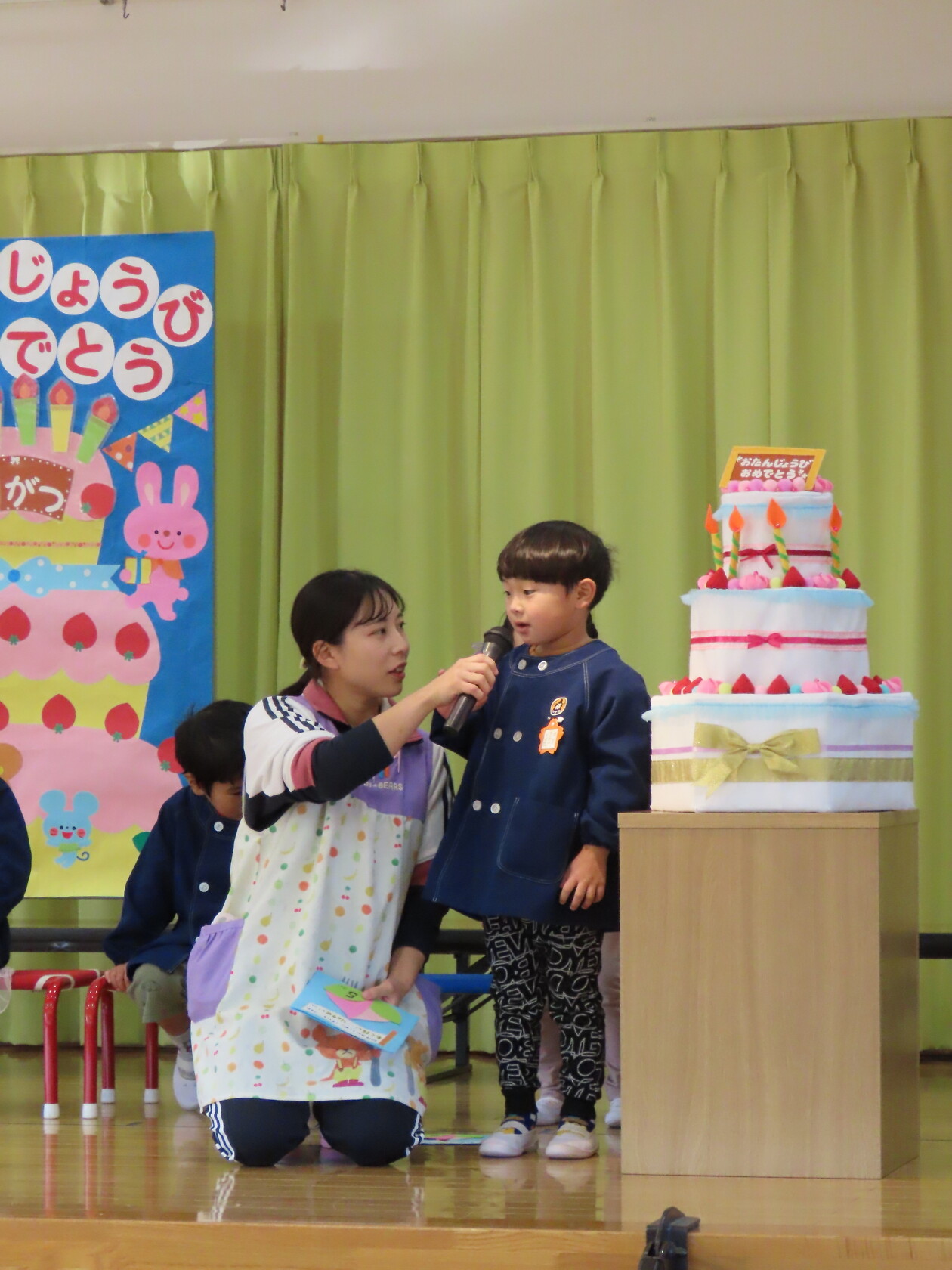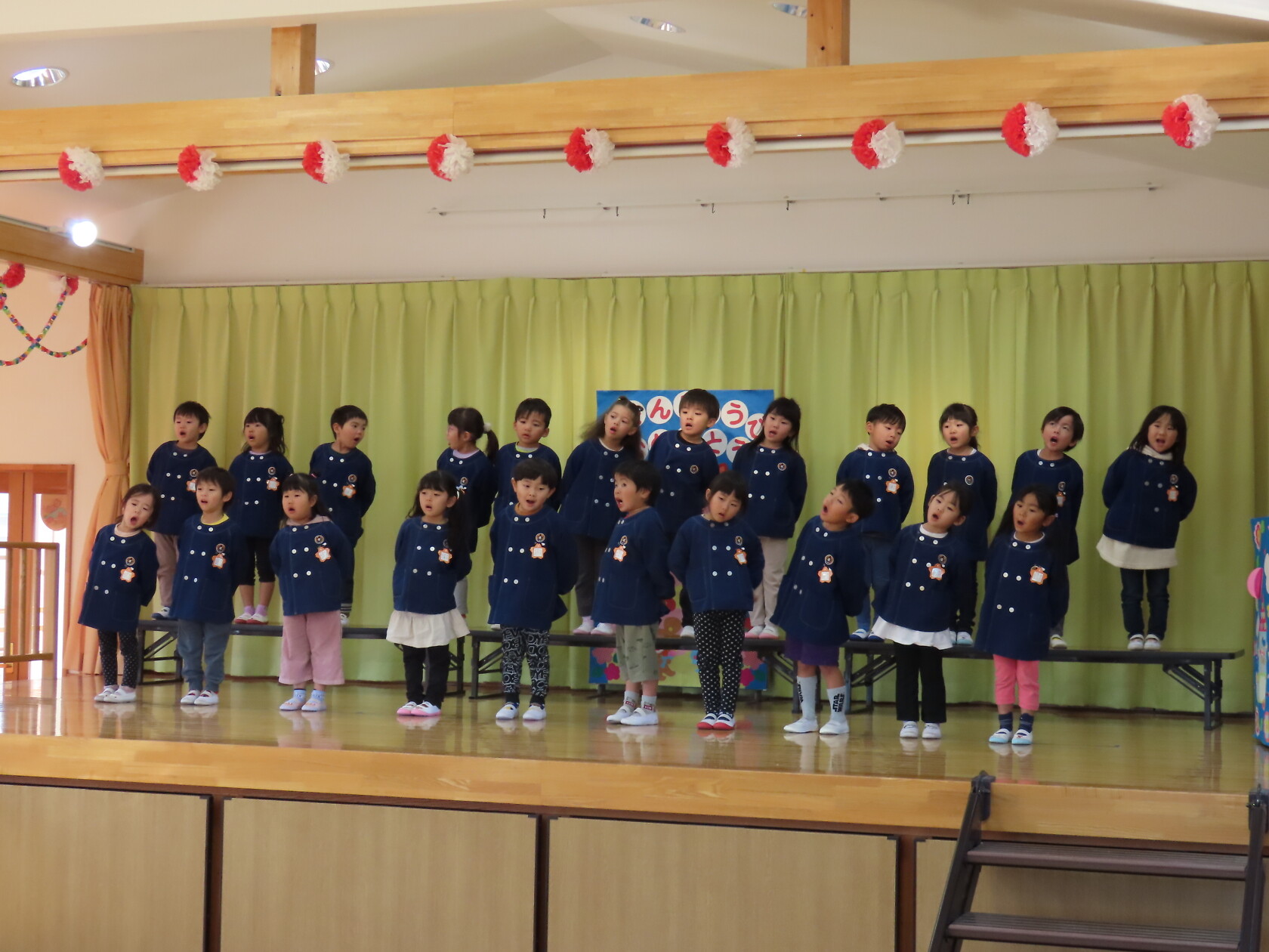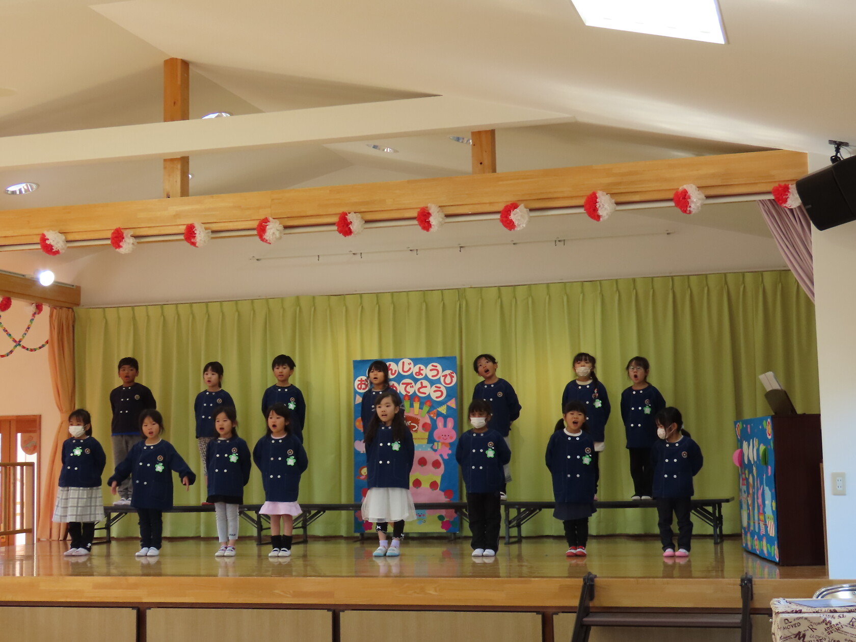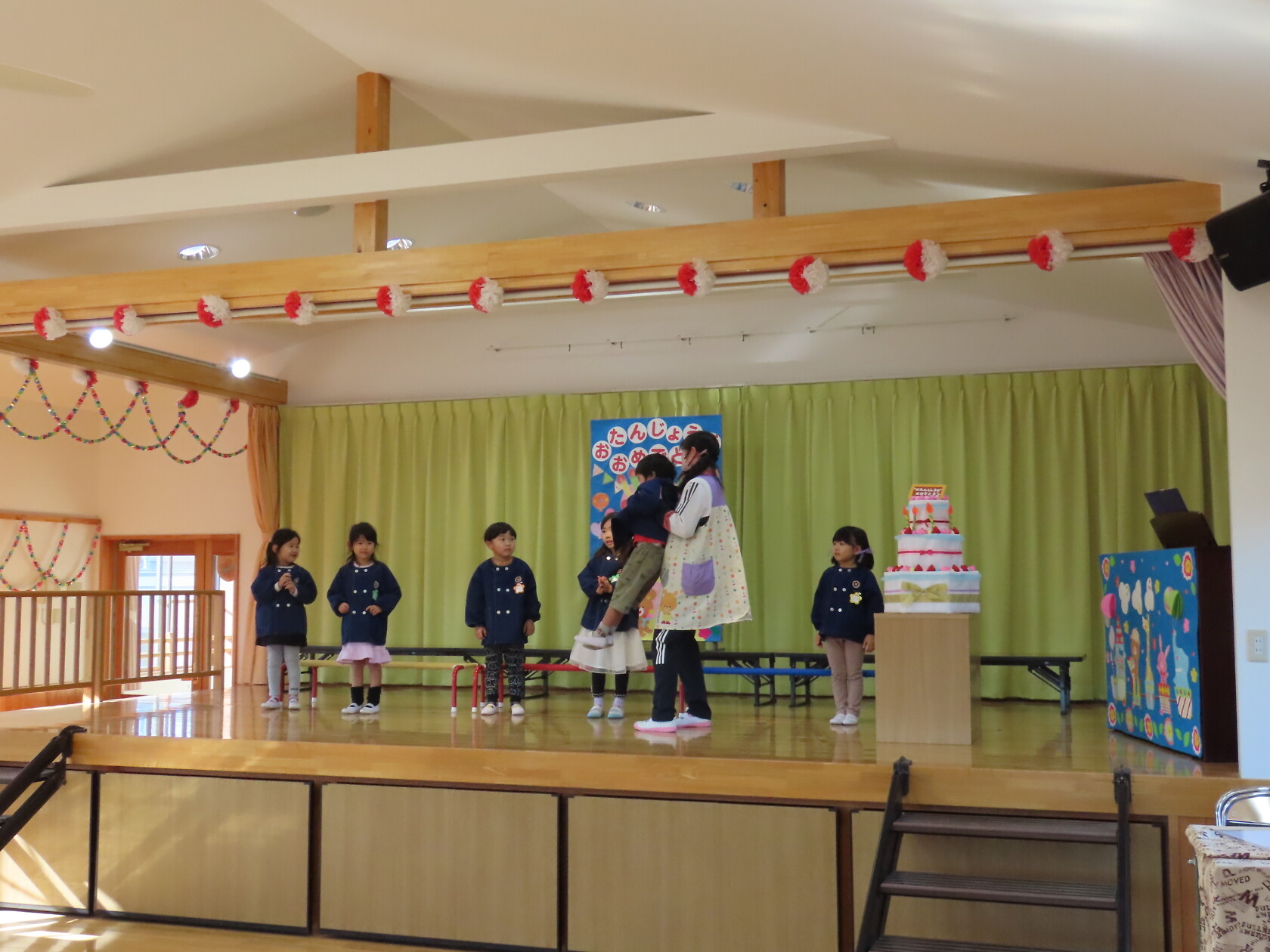 お誕生会(以上児) 公開済み: 2023年11月22日更新: 2023年11月22日 今日は11月うまれのお誕生会でした。 今月は6名のお誕生のお友だちでした。 ステージに上がり、上手にお誕生カードの発表が出来ました😊。 お歌のプレゼントは すみれ組 「秋の空」「すうじの歌」 ゆり組 「ホ!ホ!ホ!」「もみじ」 ひまわり組「ハローマイフレンズ」「はたけのポルカ」でした。 11月うまれのお友だち、お誕生日おめでとうございます✨。