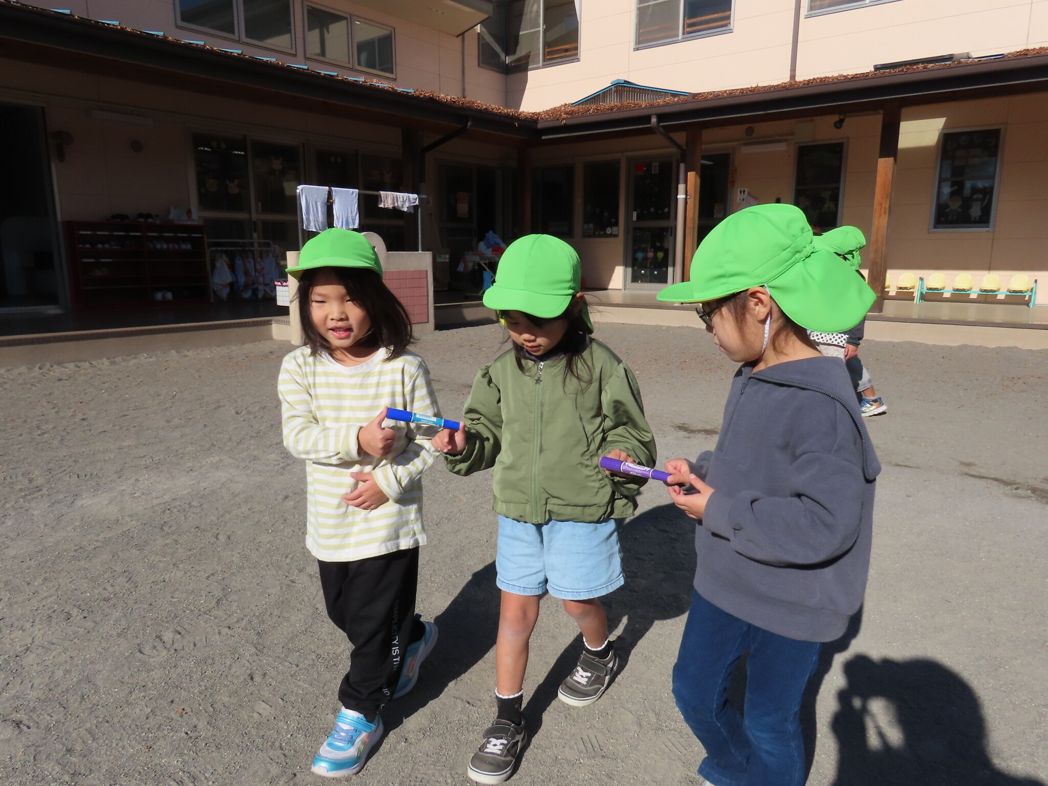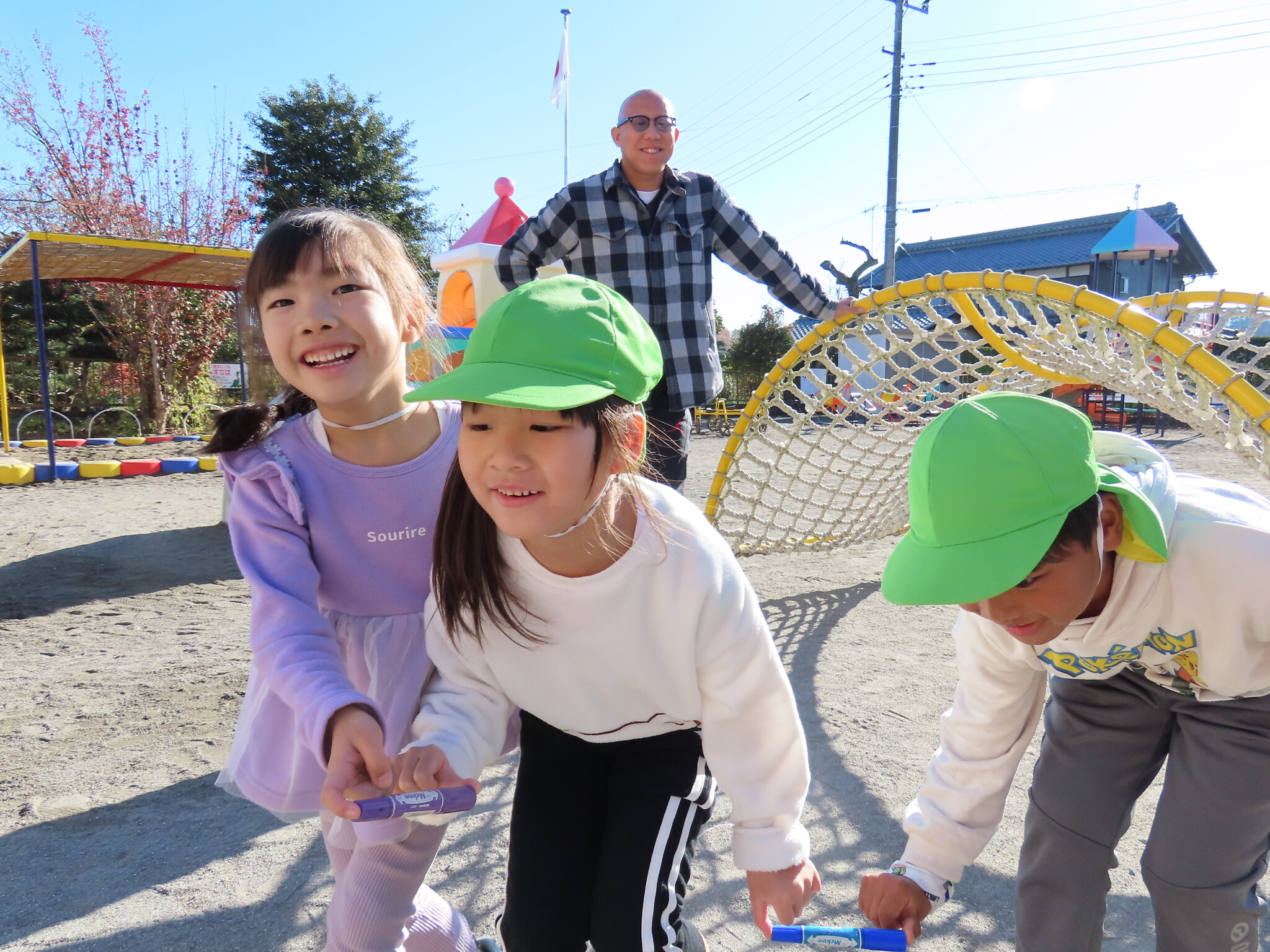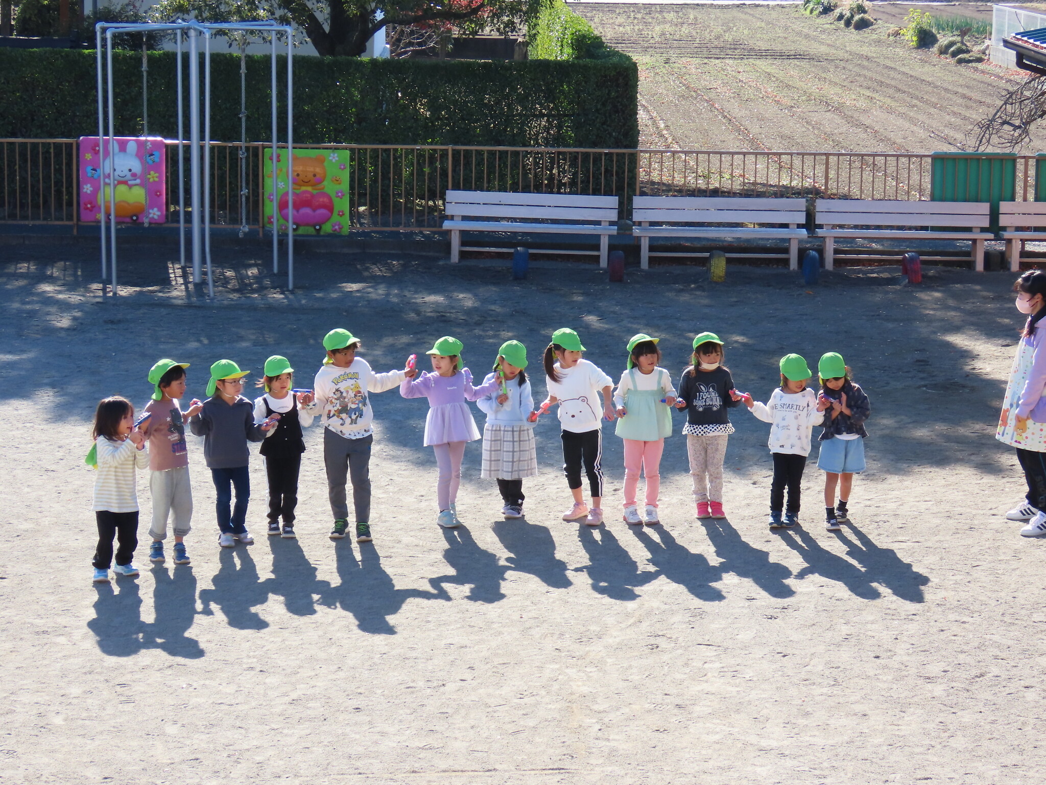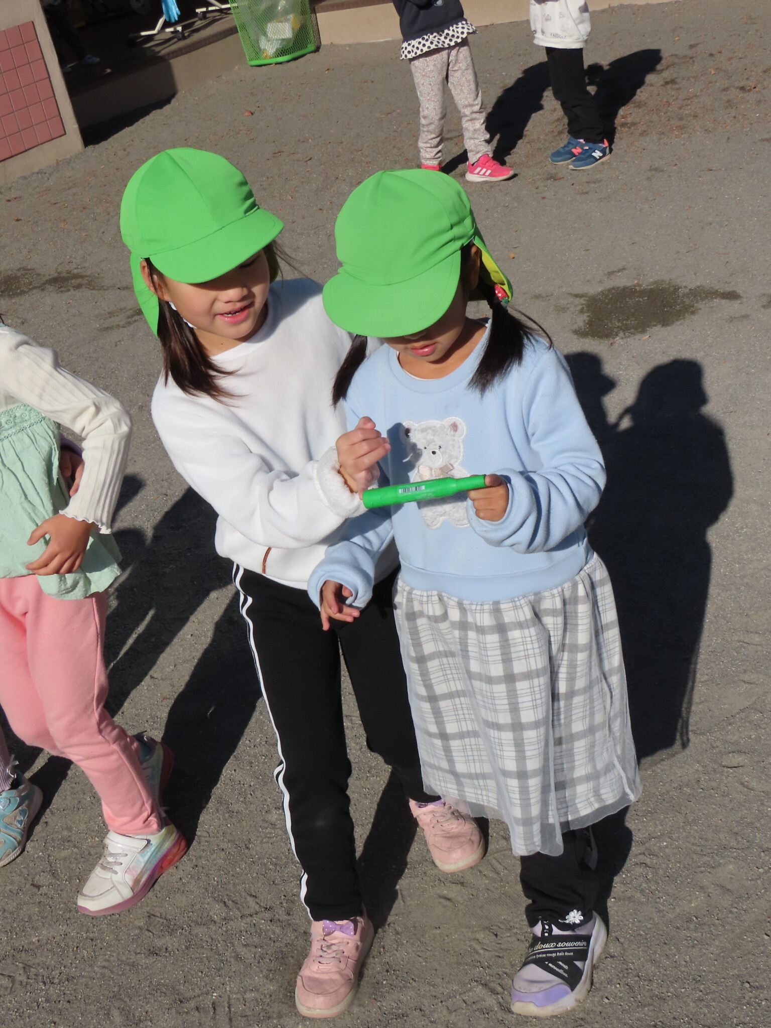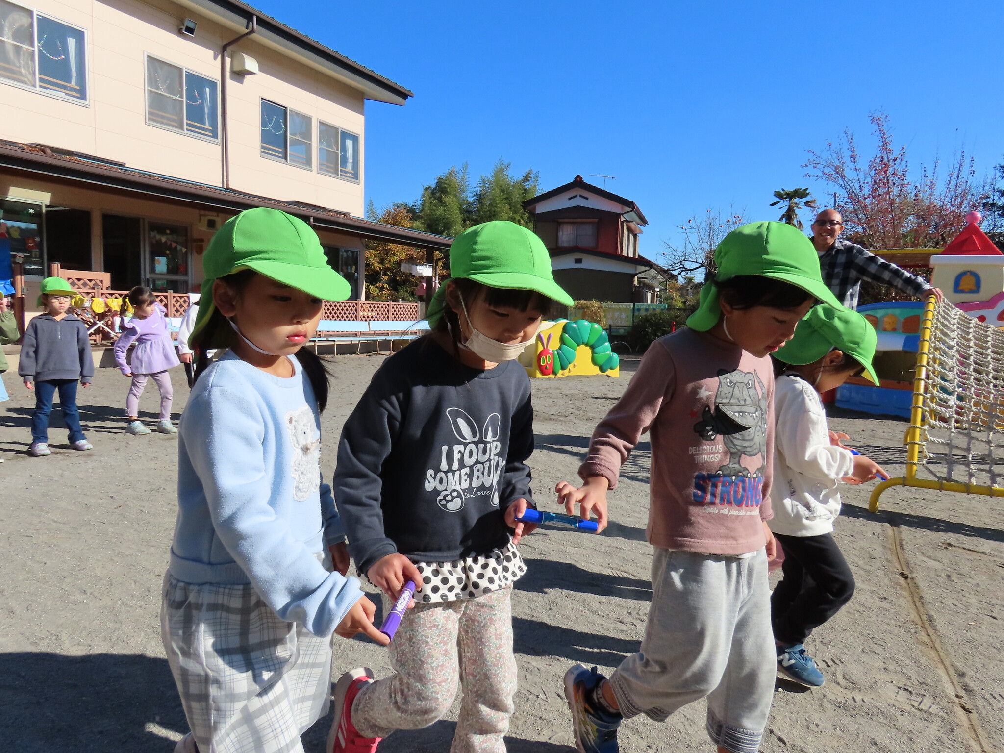 今日のできごと(ひまわり) 公開済み: 2023年12月6日更新: 2023年12月6日 今日は外が暖かかったので園庭でゲームをして遊びました!! チームを組んでペンを落とさないように競争をしました!! 最後はみんなで一列でやりましたが、まだ難しかったようです😁