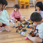 ブロックを長く繋げて道路のようにしたり、四角形にして駐車場を作ったりと楽しく遊ぶことが出来ました✨