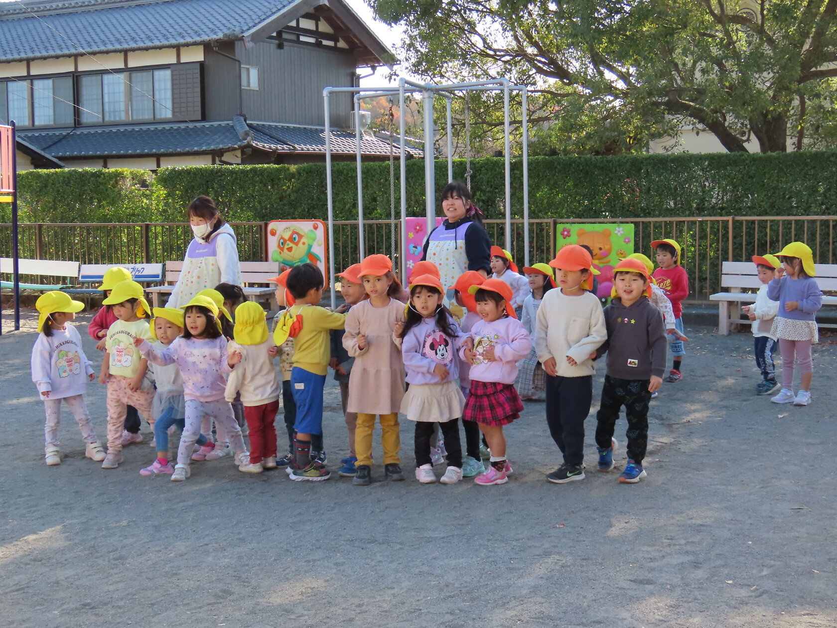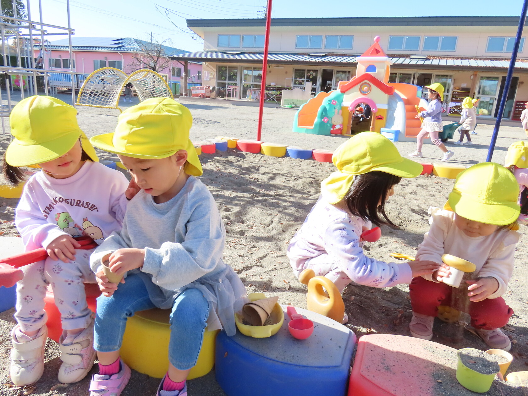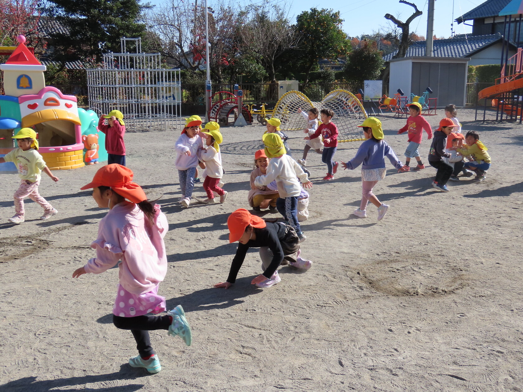 今日のできごと(すみれ、ゆり) 公開済み: 2023年12月8日更新: 2023年12月8日 今日は、すみれ組とゆり組合同で外遊びをしました☺ 水で描いた丸の中に鬼に捕まらずに逃げることが出来るかドキドキしながら走っていました😁 なかなか2クラスで遊ぶ機会がないのでとても楽しそうでした🎵 片付けも最後までしっかりと出来ましたね✨