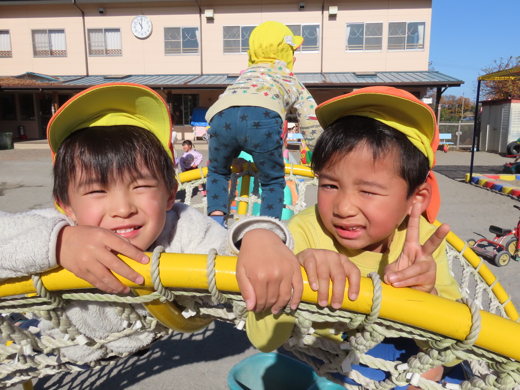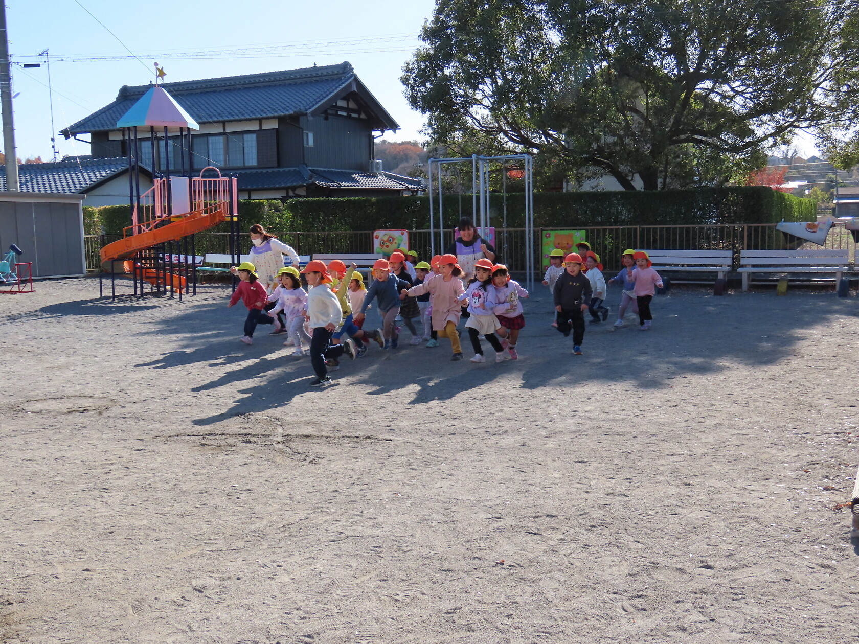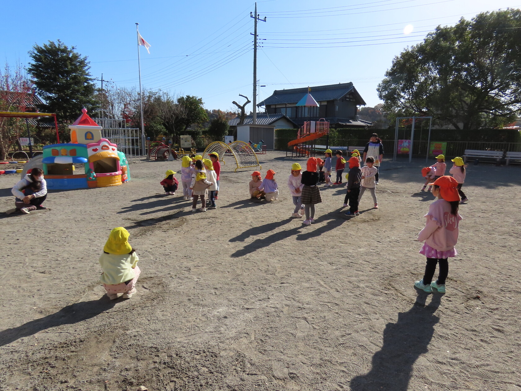 今日のできごと(すみれ、ゆり) 公開済み: 2023年12月8日更新: 2023年12月8日 今日は、すみれ組とゆり組合同で外遊びをしました☺ 水で描いた丸の中に鬼に捕まらずに逃げることが出来るかドキドキしながら走っていました😁 なかなか2クラスで遊ぶ機会がないのでとても楽しそうでした🎵 片付けも最後までしっかりと出来ましたね✨