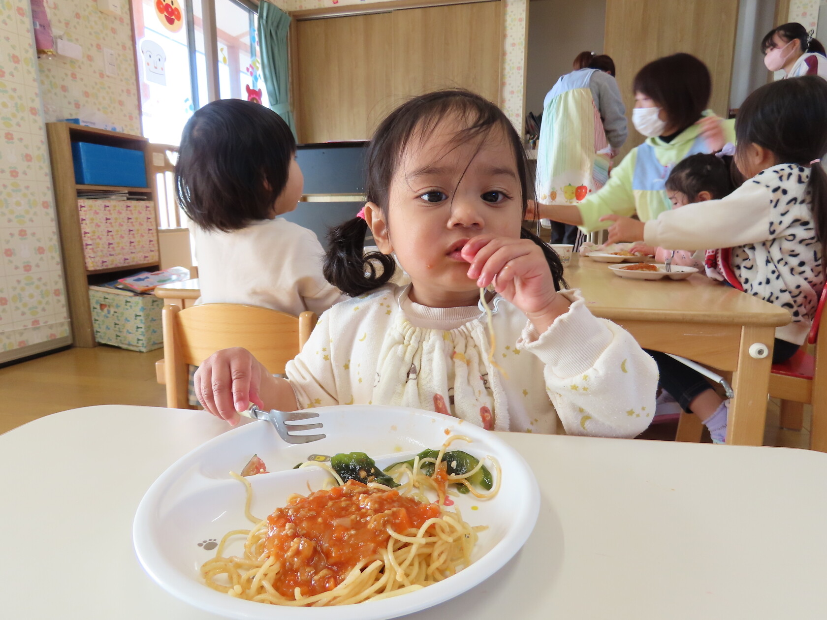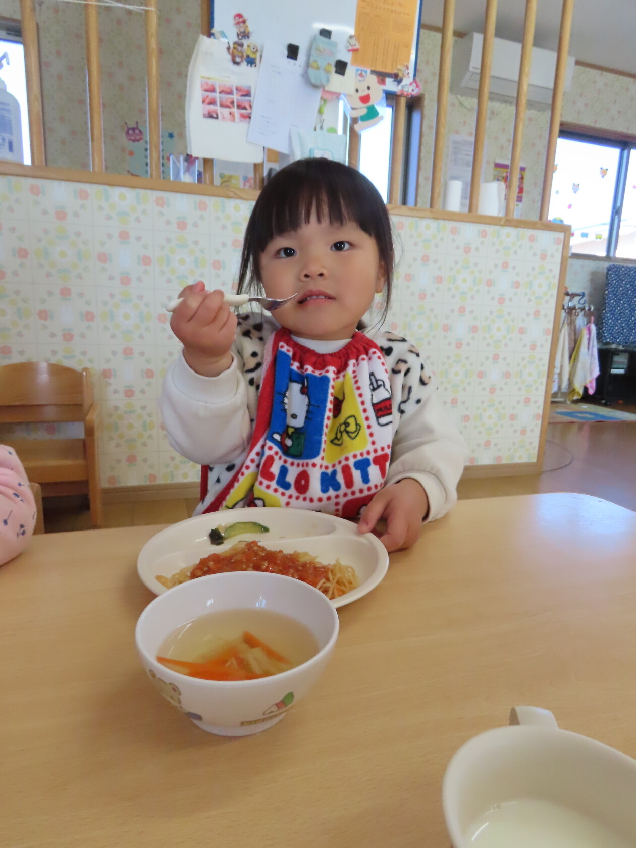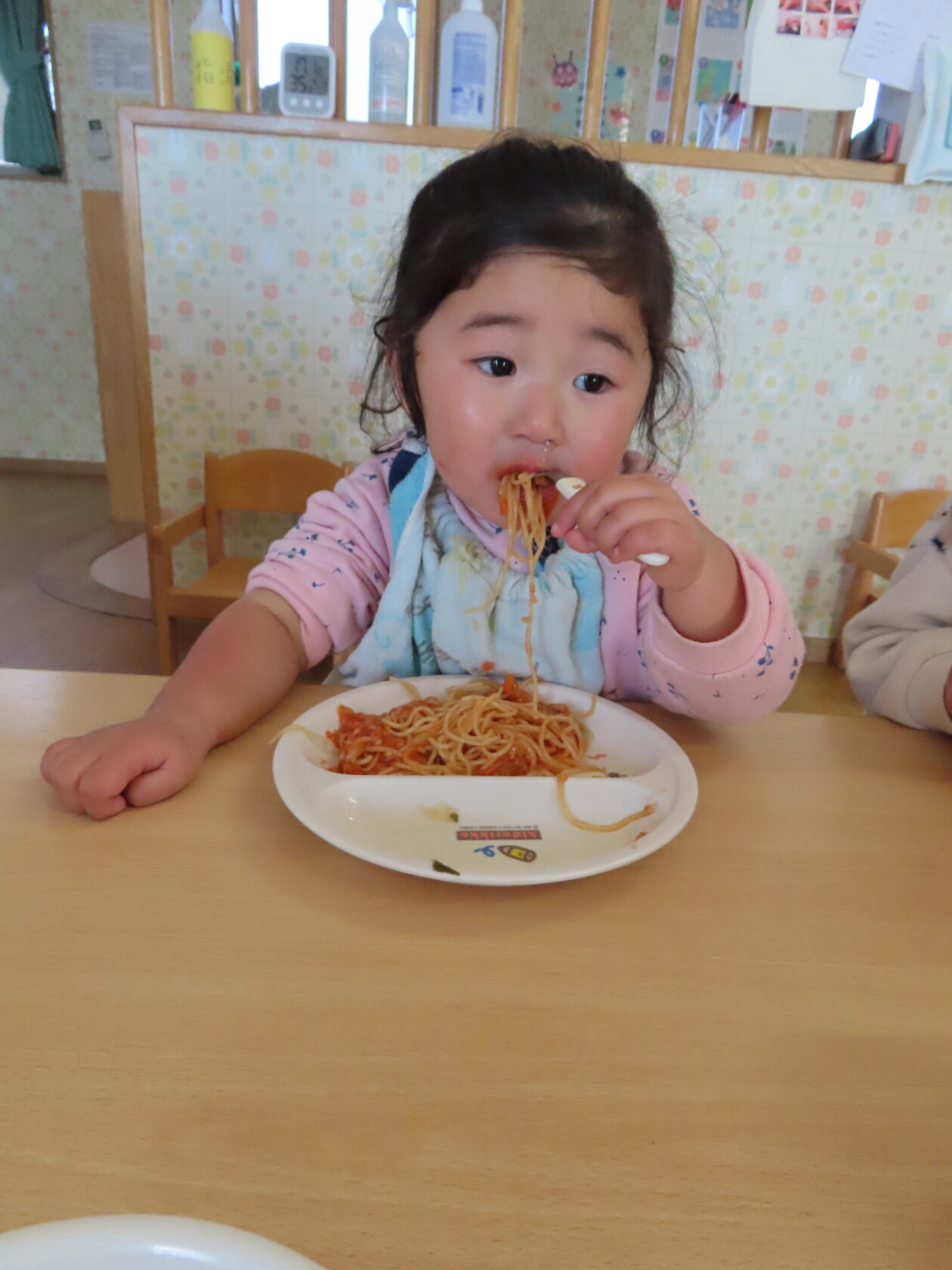 今日の給食は、みんながすきなミートスパゲッティでした。