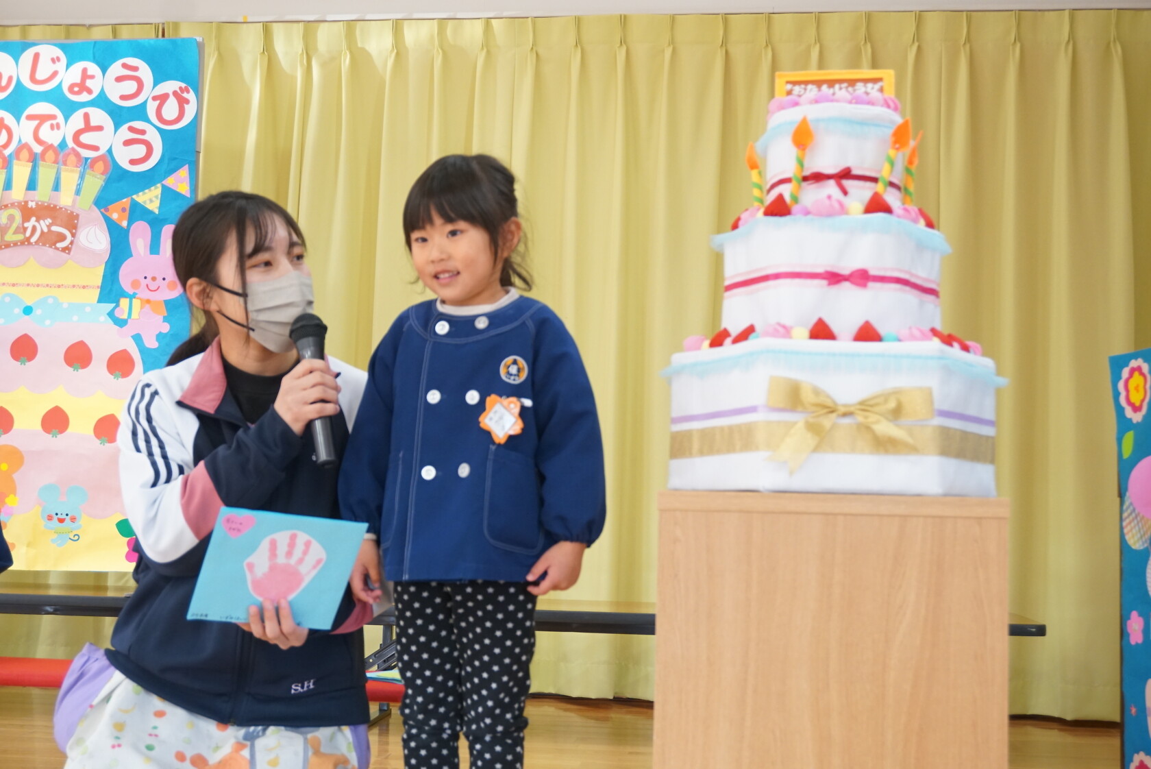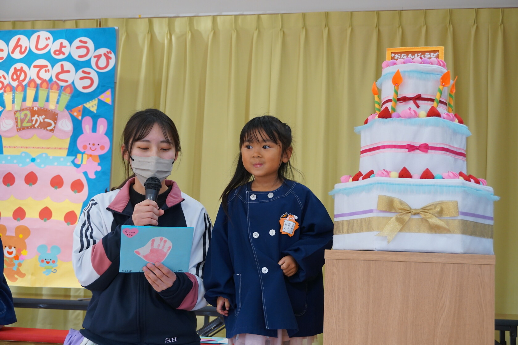 今日は、12月生まれのお友だちのお誕生会でした。今月は5人の女の子がいました。