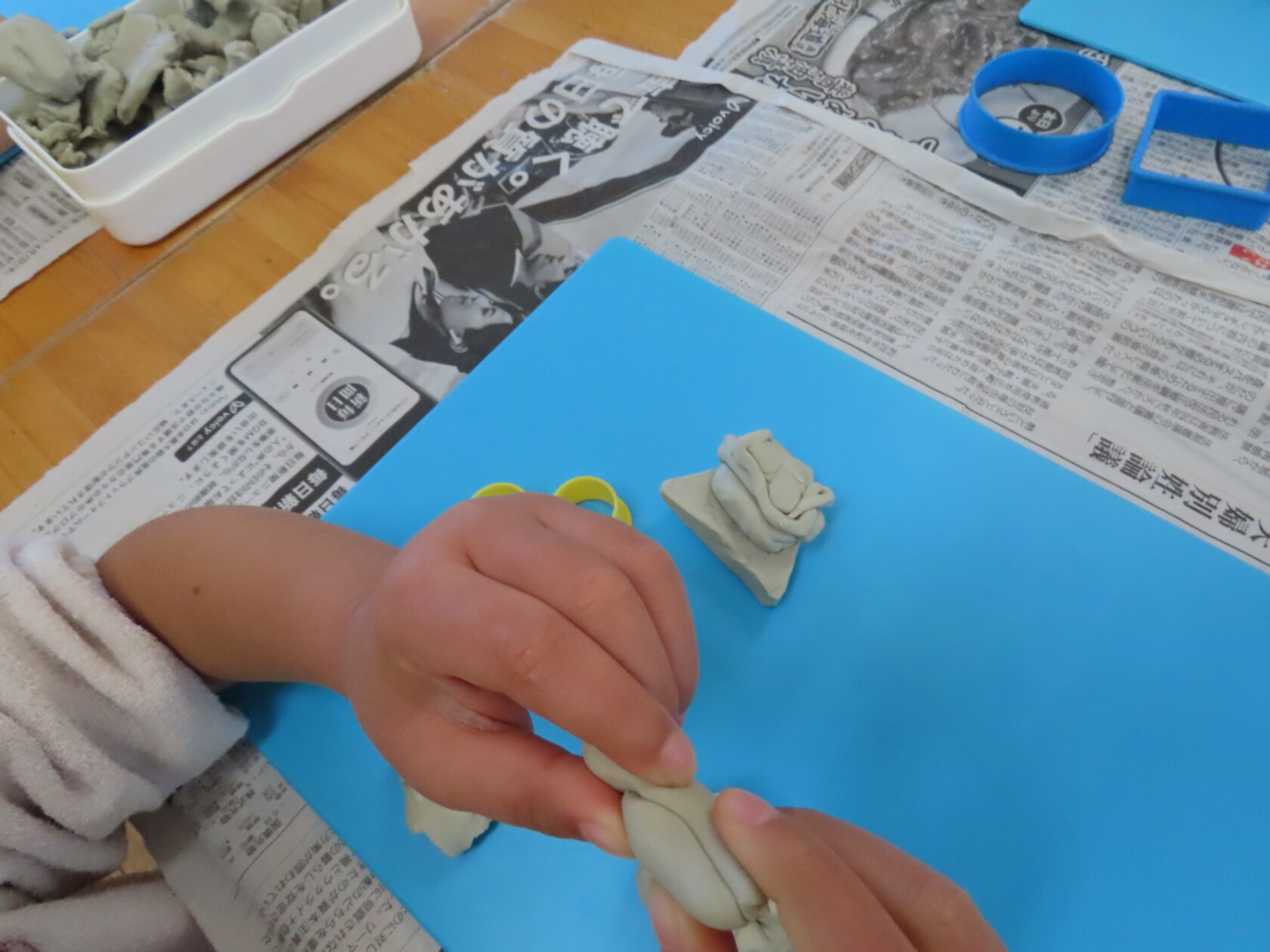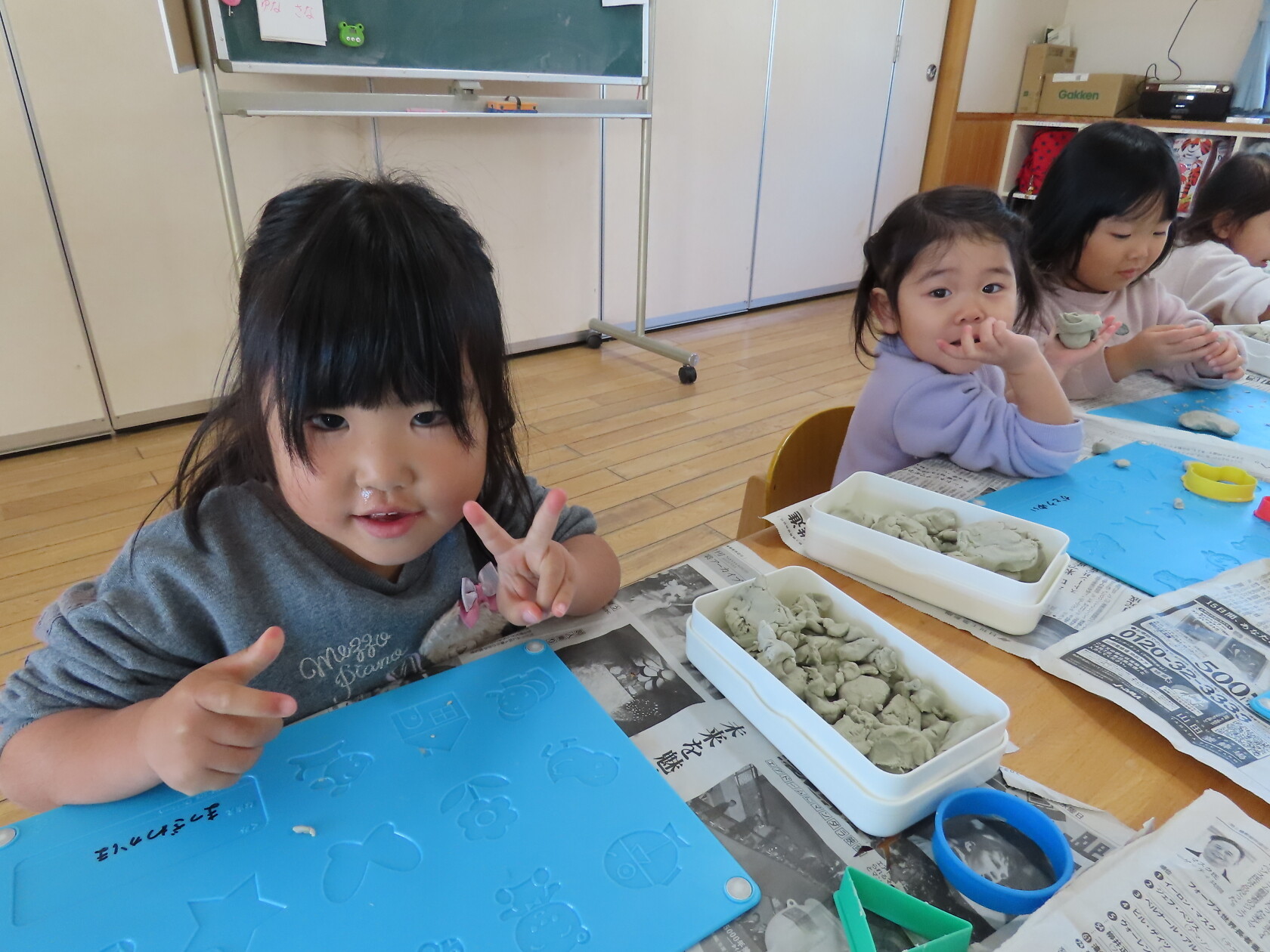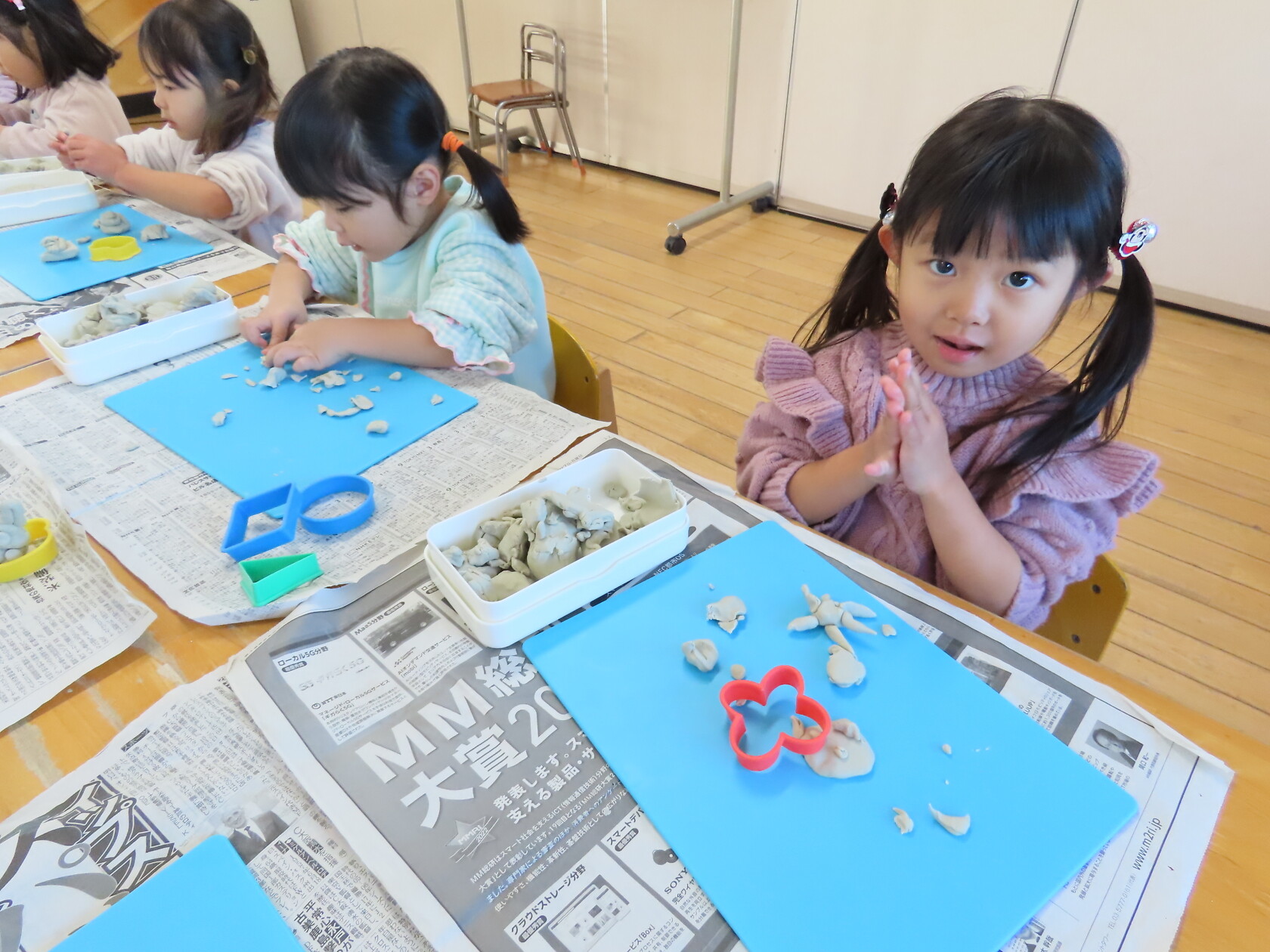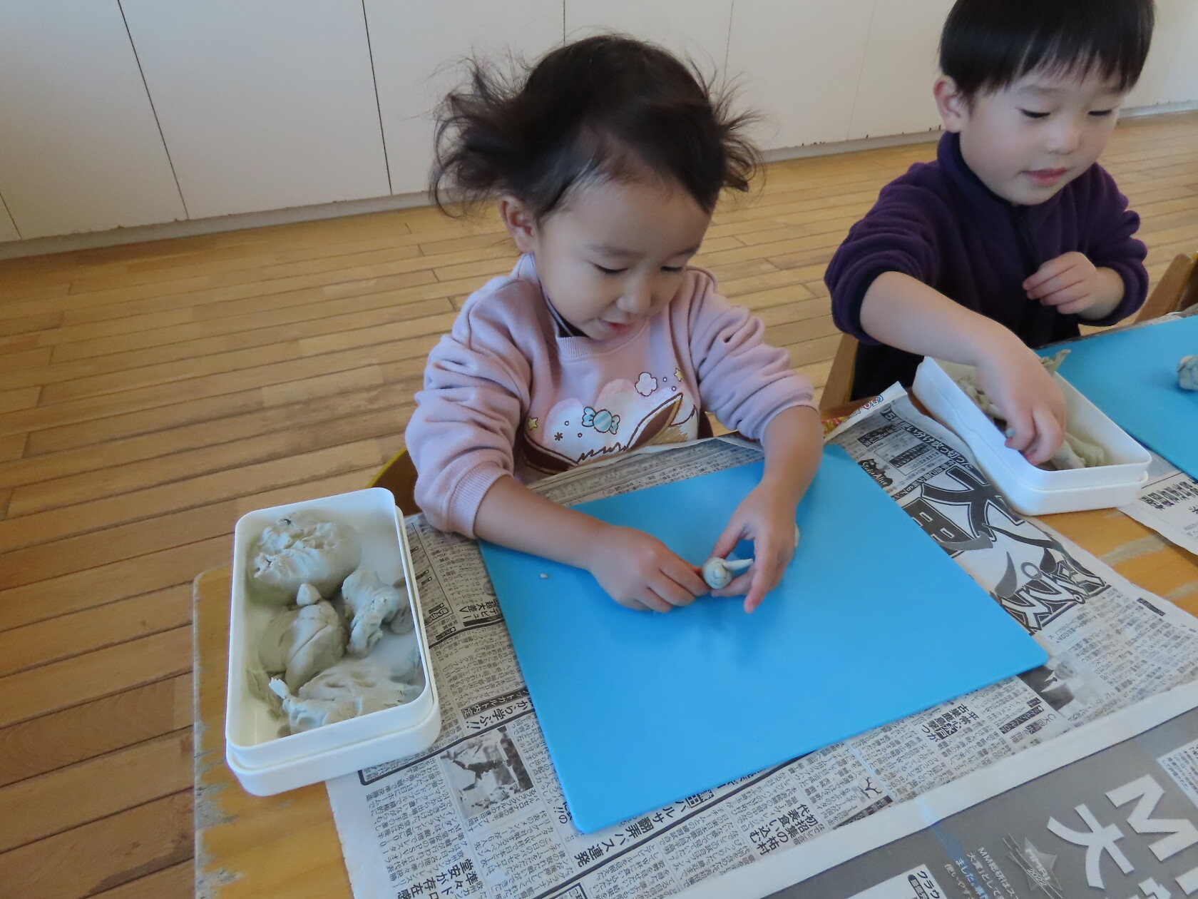 今日のできごと(すみれ) 公開済み: 2023年12月21日更新: 2023年12月21日 今日は室内で粘土遊びをしました🎵 お星様✨やうさぎ🐰、おばけなど自分がイメージした物が段々と作れるようになってきました。 又、お友達と作品を見せ合ったり、お友達と同じ物を作るために「どうやって作ったの?」と聞き真似をするなど 楽しく会話しながら遊ぶことが出来ました💕