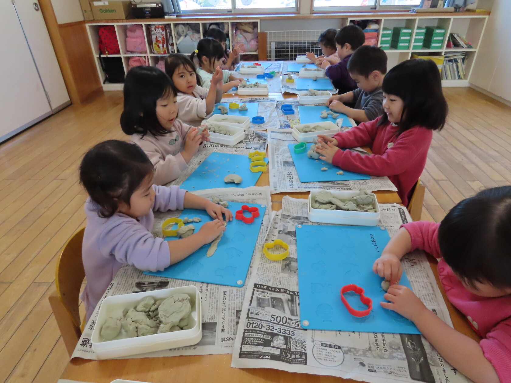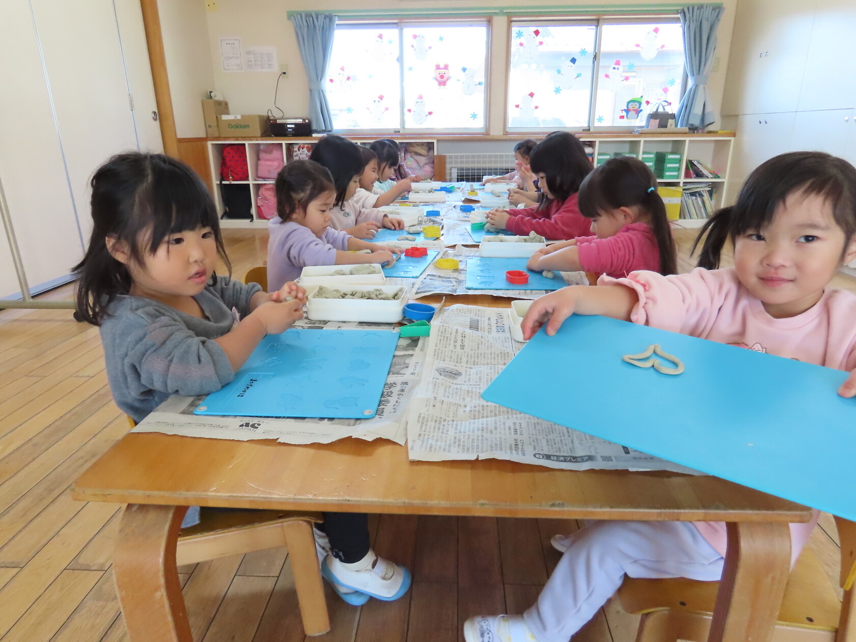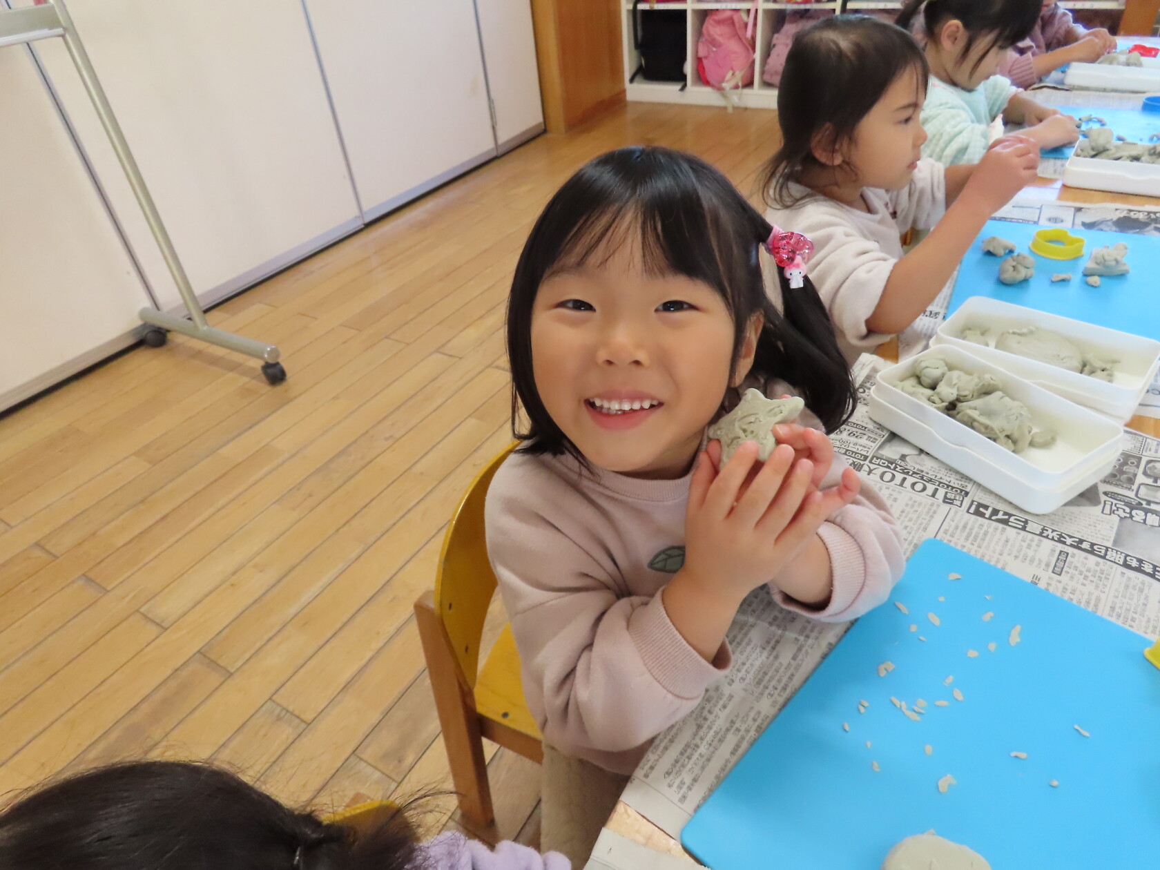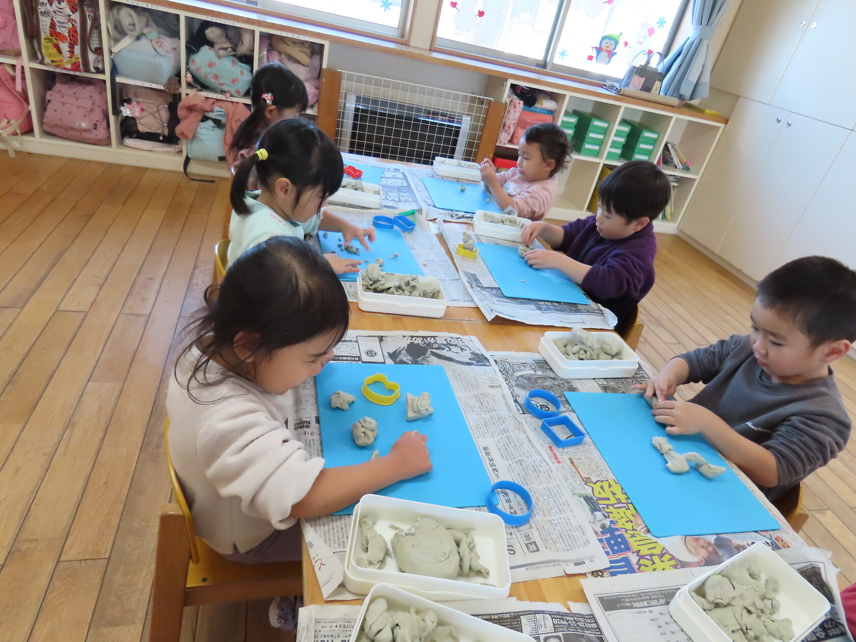 今日のできごと(すみれ) 公開済み: 2023年12月21日更新: 2023年12月21日 今日は室内で粘土遊びをしました🎵 お星様✨やうさぎ🐰、おばけなど自分がイメージした物が段々と作れるようになってきました。 又、お友達と作品を見せ合ったり、お友達と同じ物を作るために「どうやって作ったの?」と聞き真似をするなど 楽しく会話しながら遊ぶことが出来ました💕