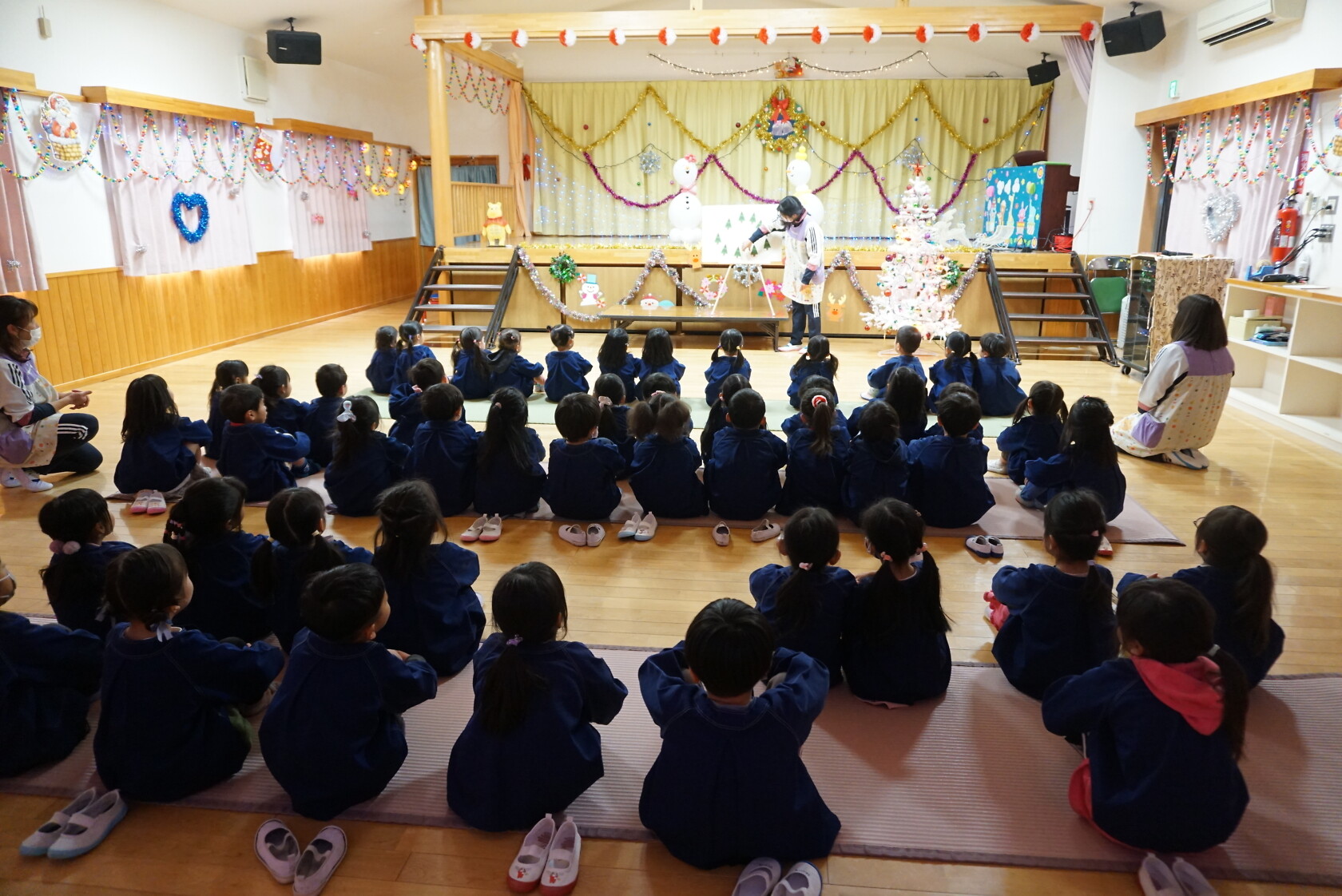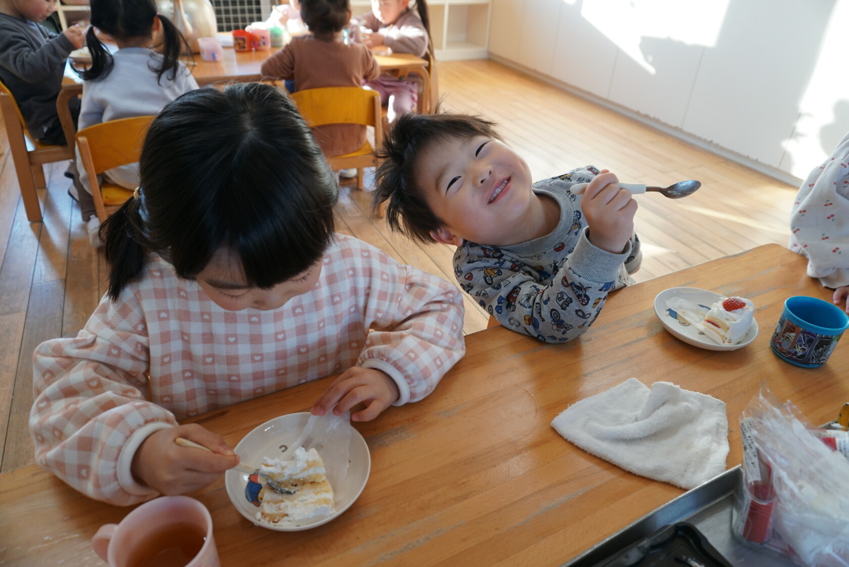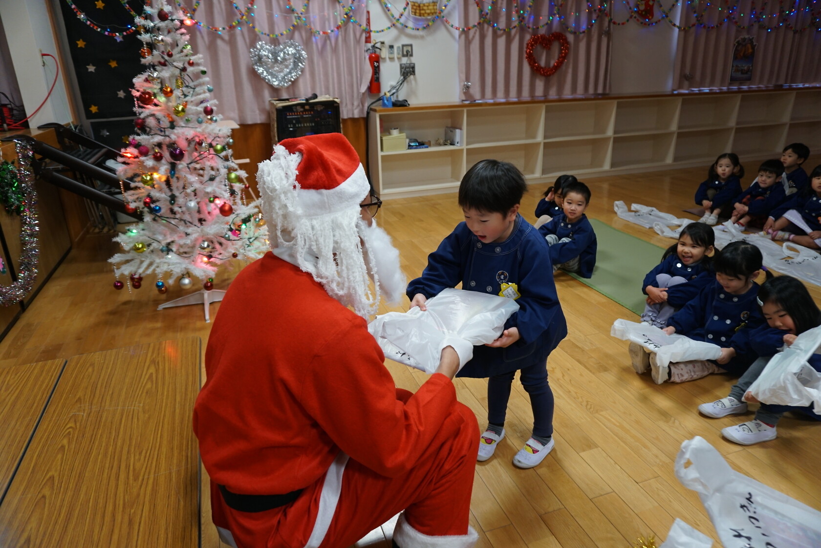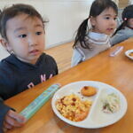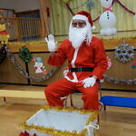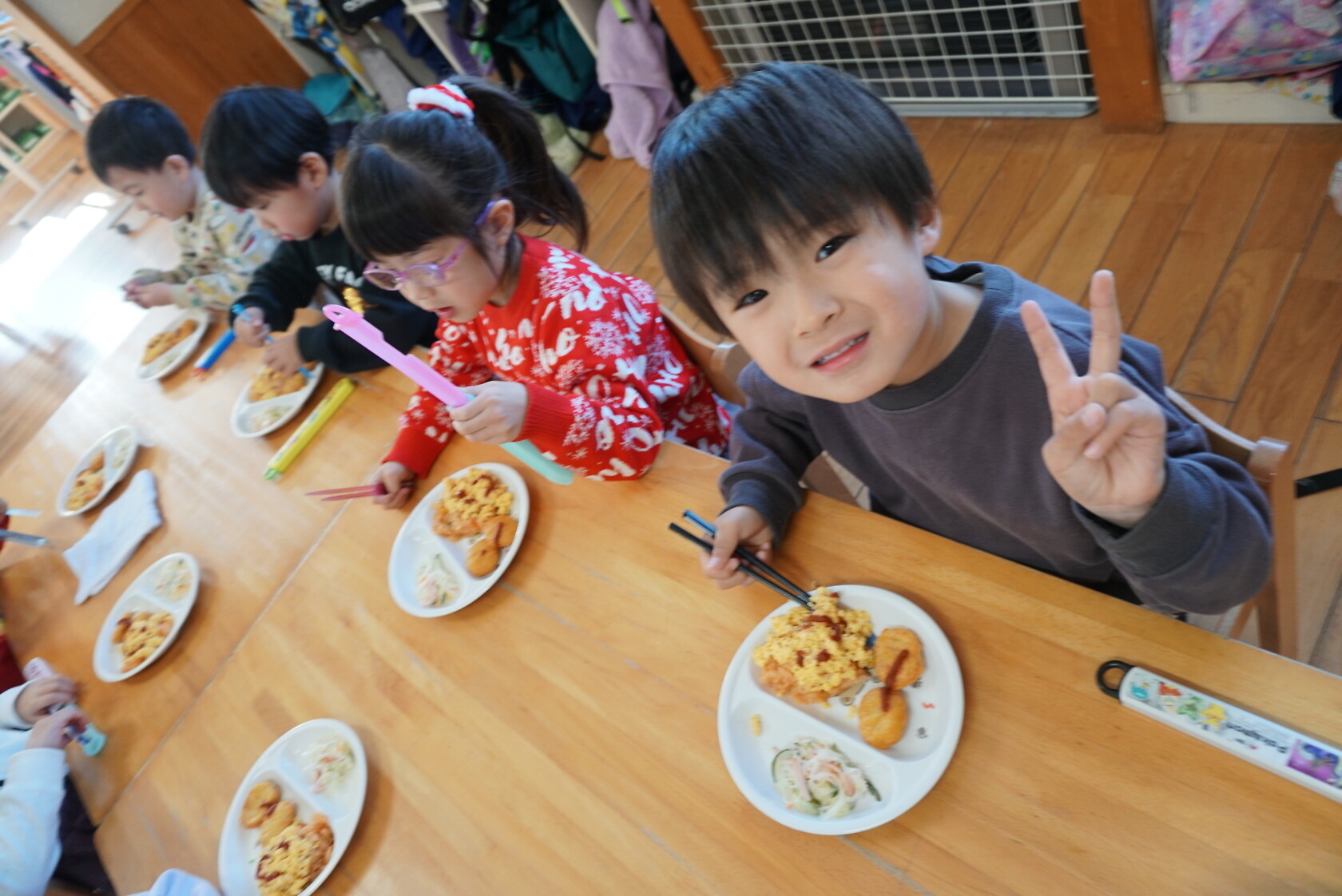 クリスマス会(以上児) 公開済み: 2023年12月25日更新: 2023年12月25日 今日はクリスマス会がありました!! 歌を歌ったりサンタさんからプレゼントをもらったりと楽しい時間を過ごしました😁 給食には顔の描かれたオムライスがでて、嬉しそうに食べていました😁 おやつのケーキもみんな大興奮でした!!