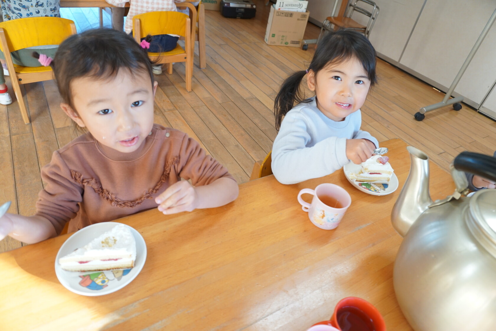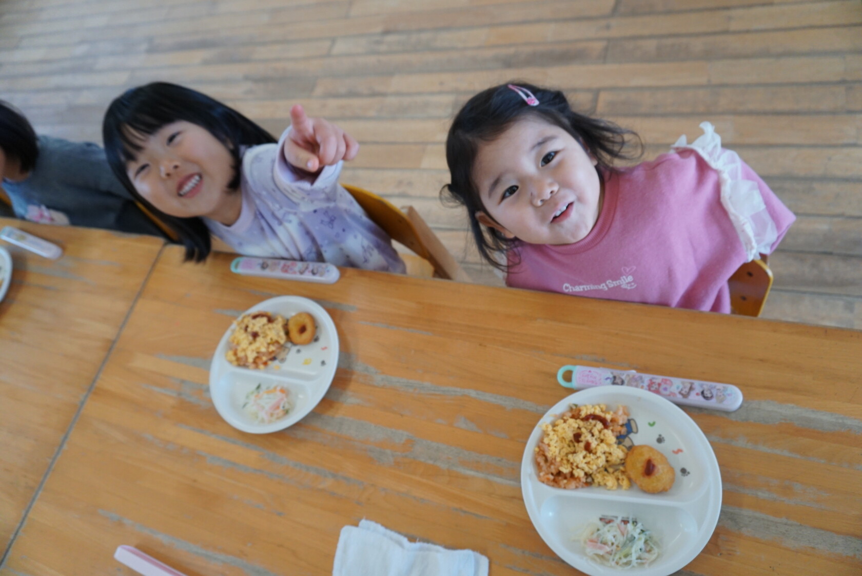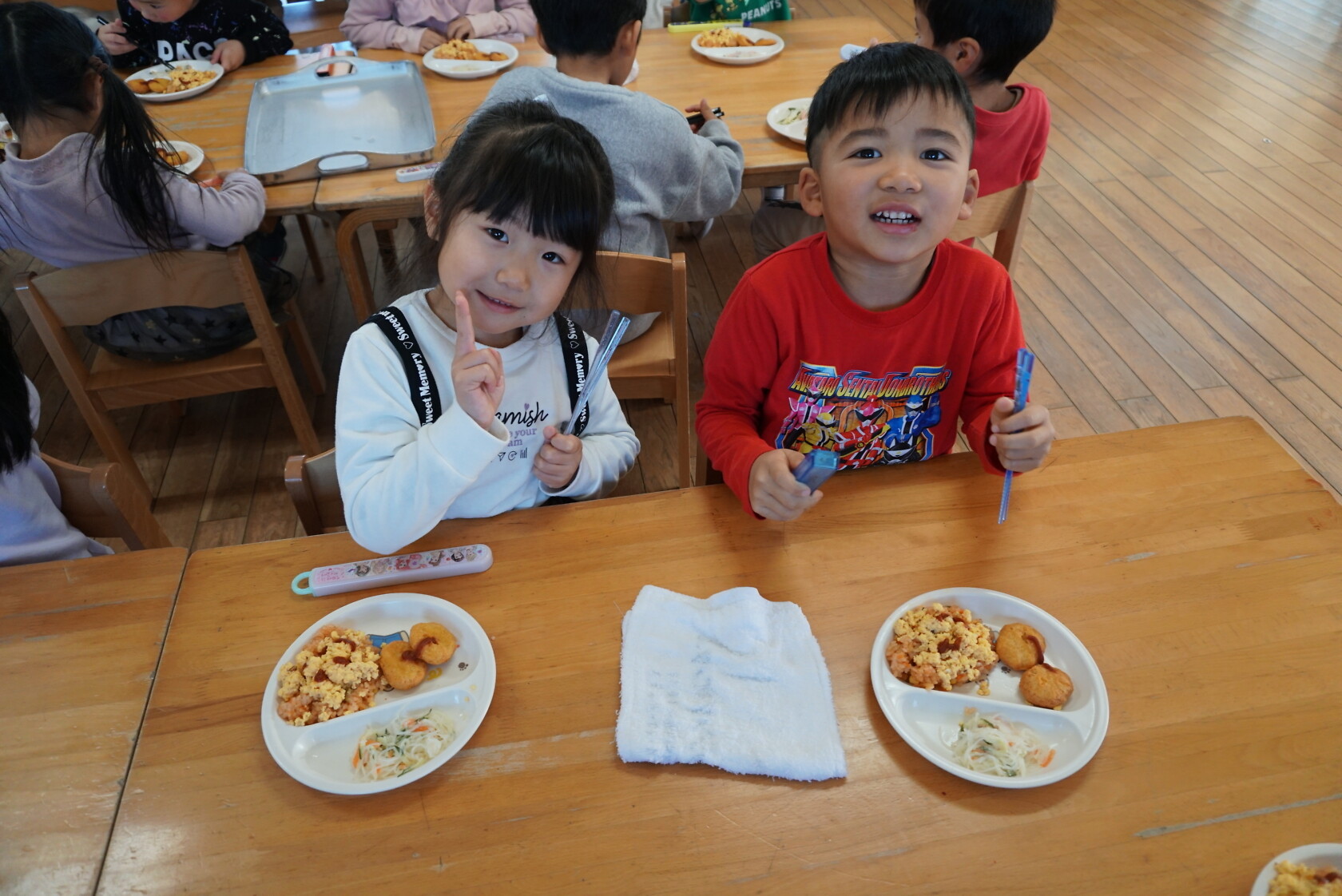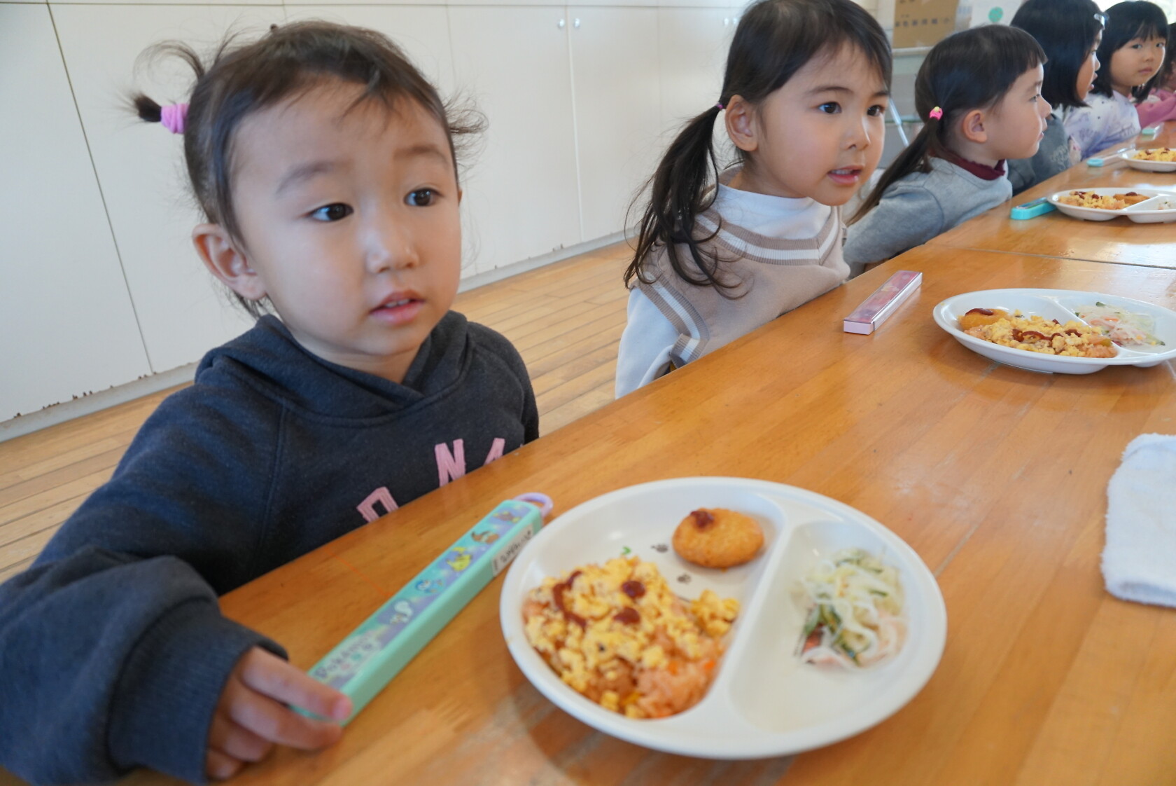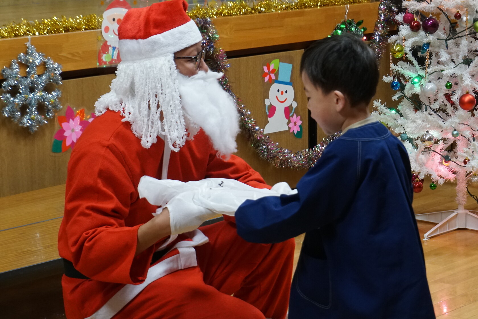 クリスマス会(以上児) 公開済み: 2023年12月25日更新: 2023年12月25日 今日はクリスマス会がありました!! 歌を歌ったりサンタさんからプレゼントをもらったりと楽しい時間を過ごしました😁 給食には顔の描かれたオムライスがでて、嬉しそうに食べていました😁 おやつのケーキもみんな大興奮でした!!