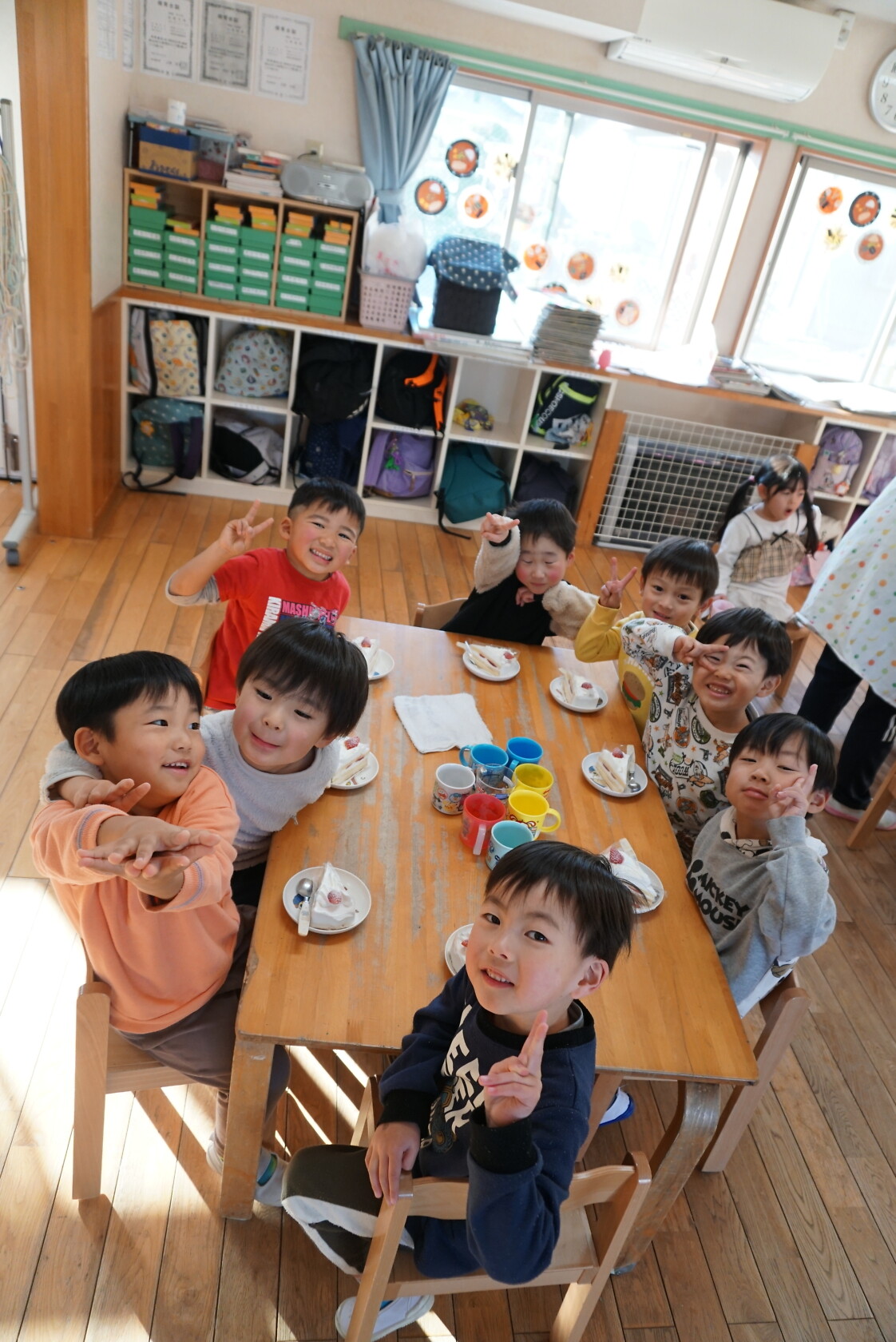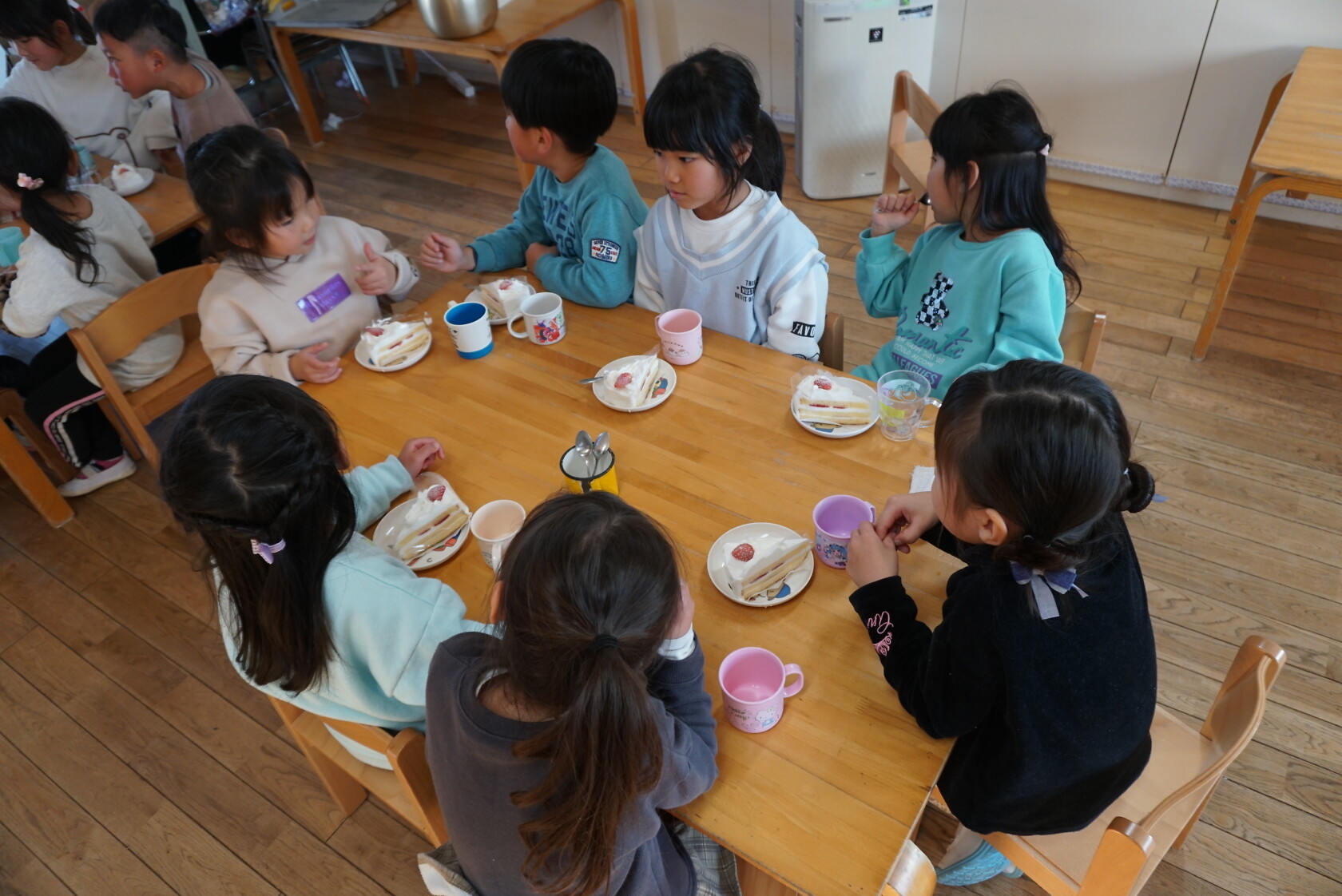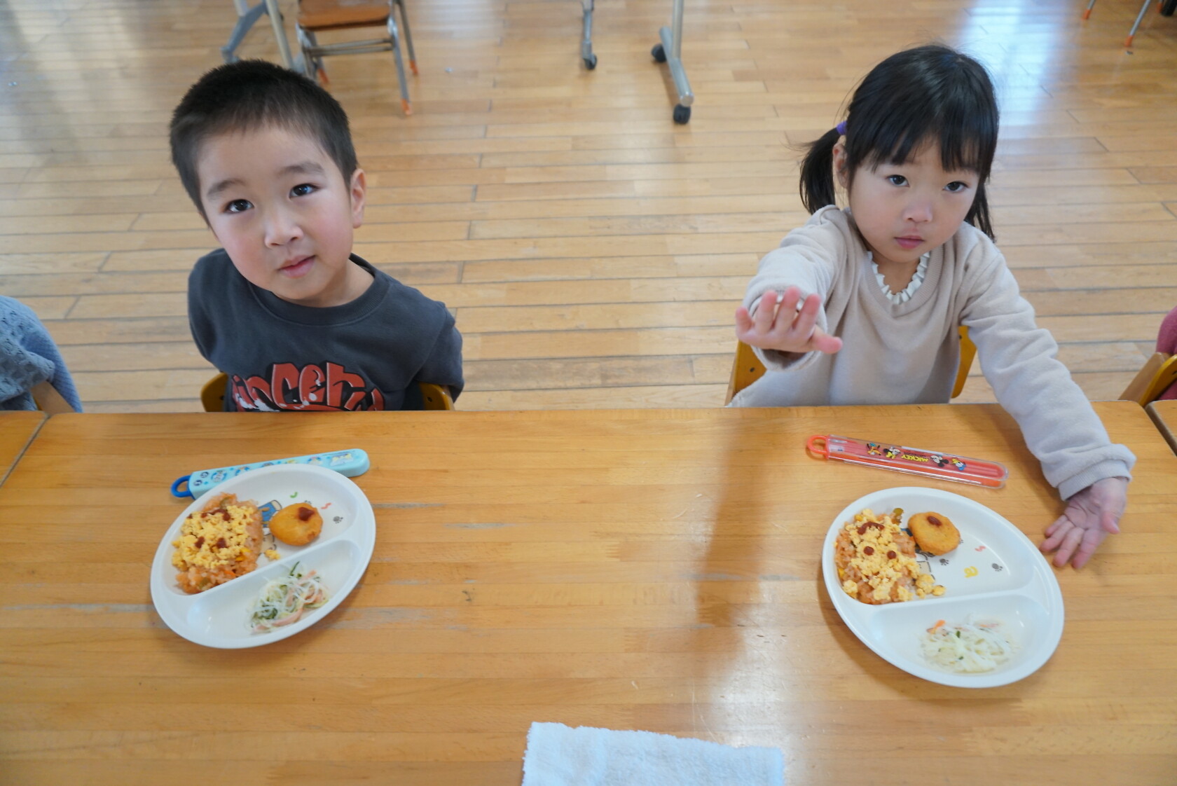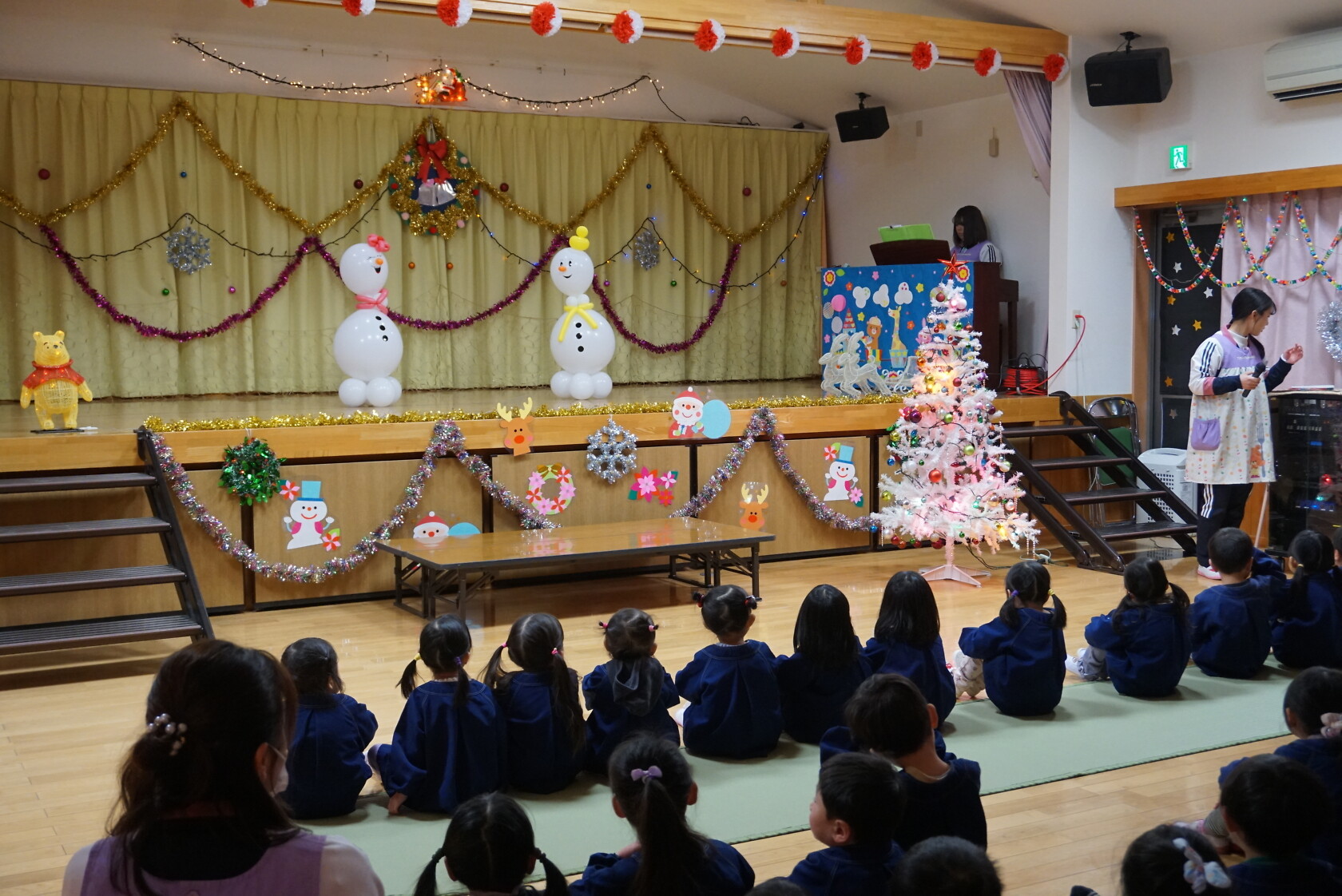 クリスマス会(以上児) 公開済み: 2023年12月25日更新: 2023年12月25日 今日はクリスマス会がありました!! 歌を歌ったりサンタさんからプレゼントをもらったりと楽しい時間を過ごしました😁 給食には顔の描かれたオムライスがでて、嬉しそうに食べていました😁 おやつのケーキもみんな大興奮でした!!