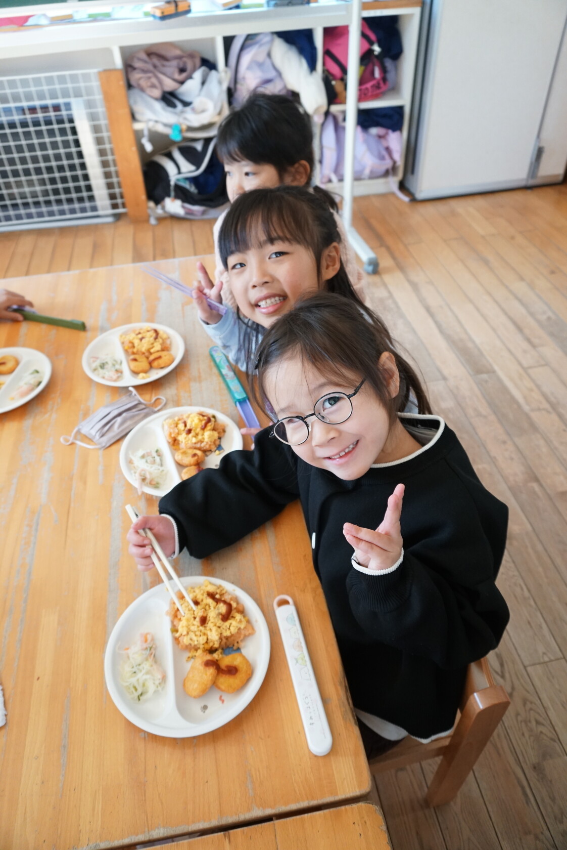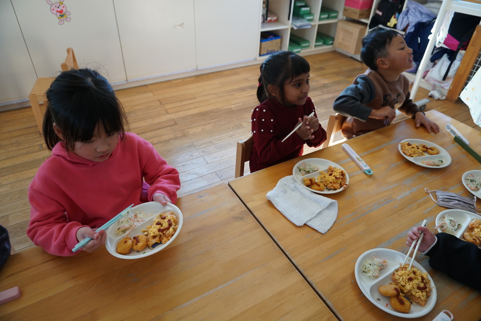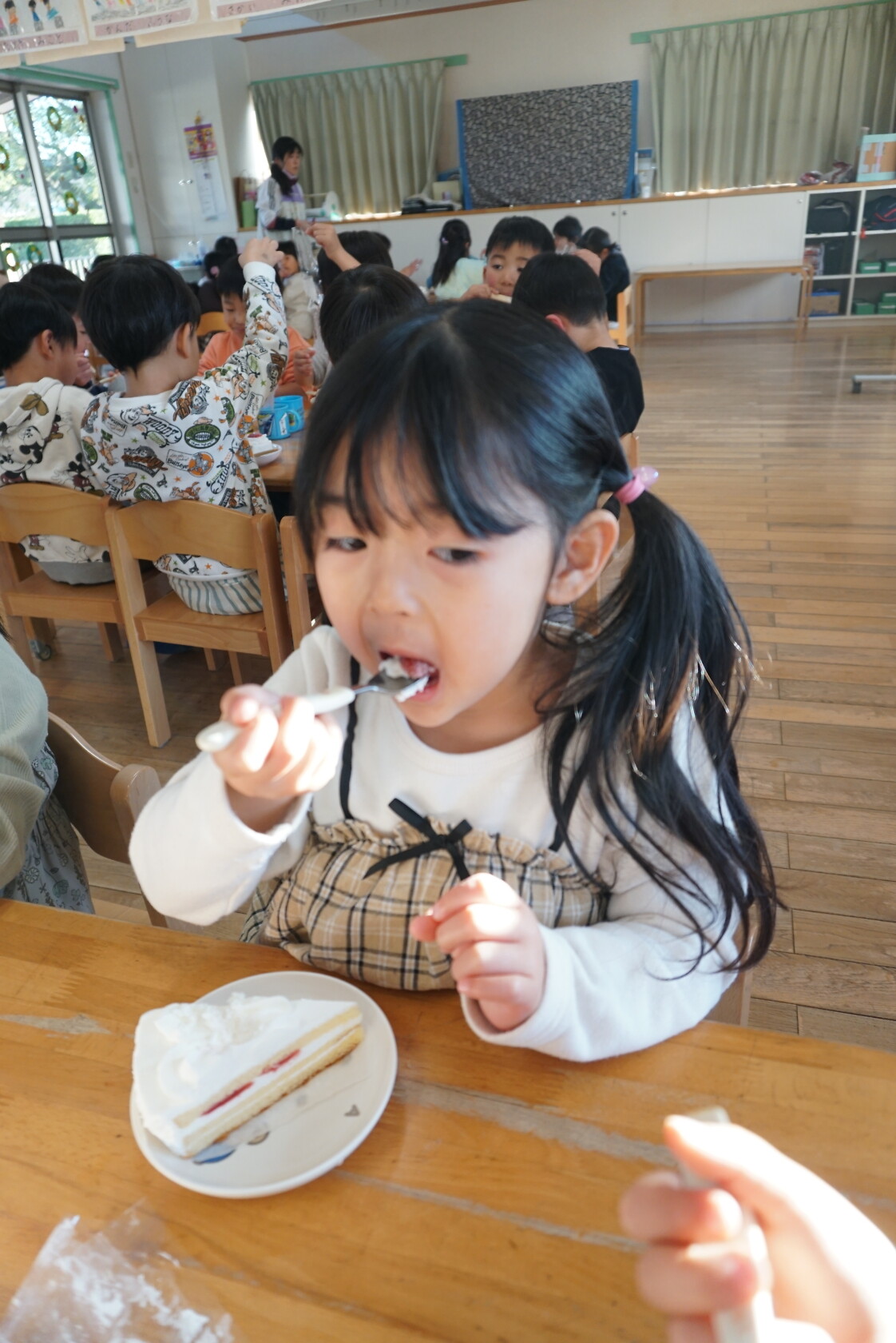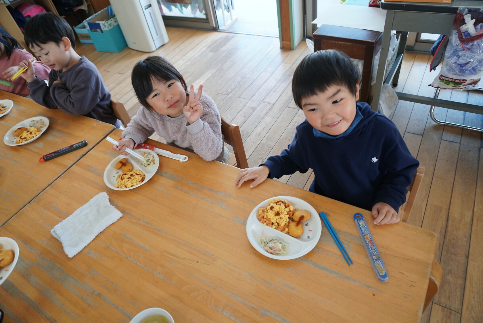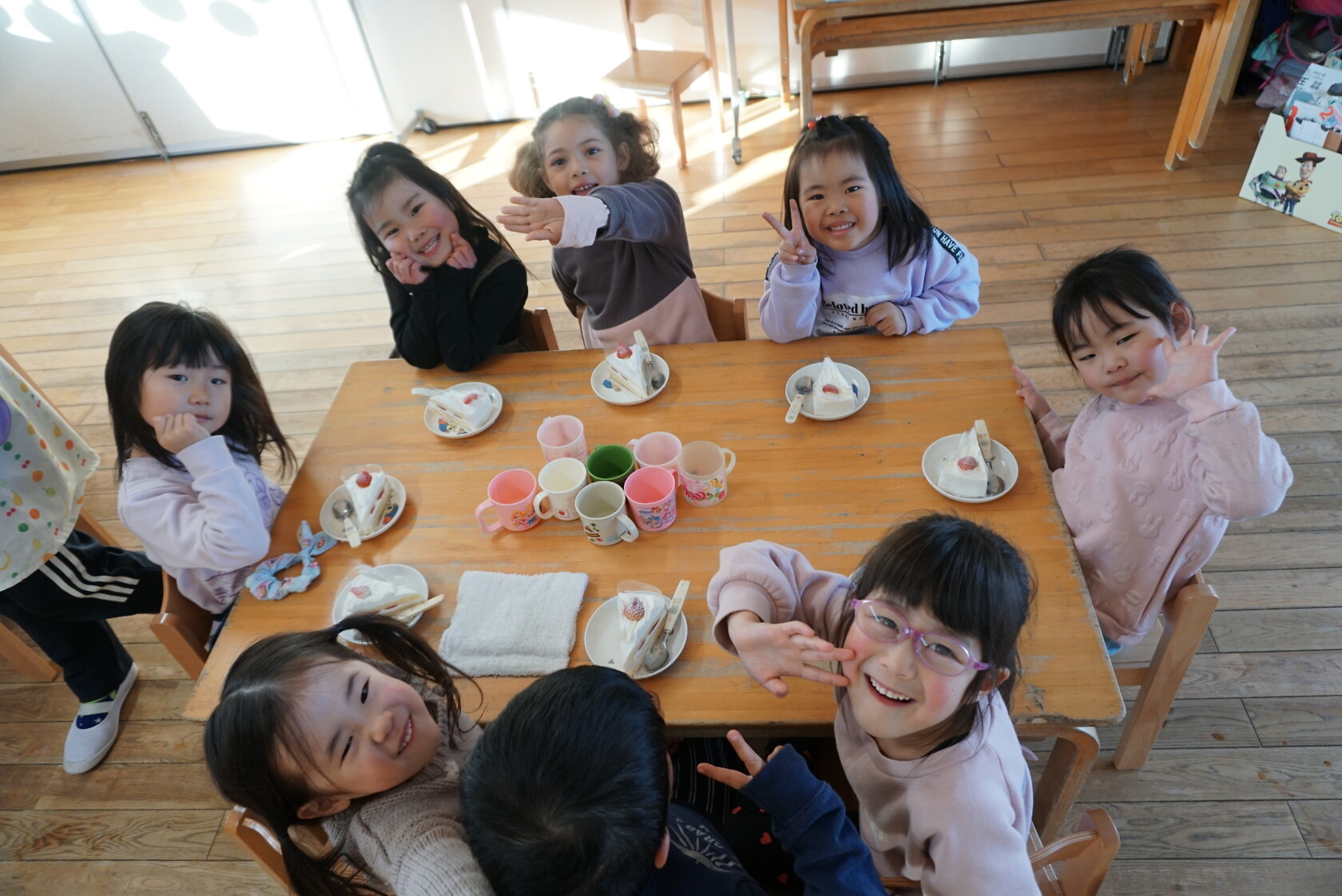 クリスマス会(以上児) 公開済み: 2023年12月25日更新: 2023年12月25日 今日はクリスマス会がありました!! 歌を歌ったりサンタさんからプレゼントをもらったりと楽しい時間を過ごしました😁 給食には顔の描かれたオムライスがでて、嬉しそうに食べていました😁 おやつのケーキもみんな大興奮でした!!