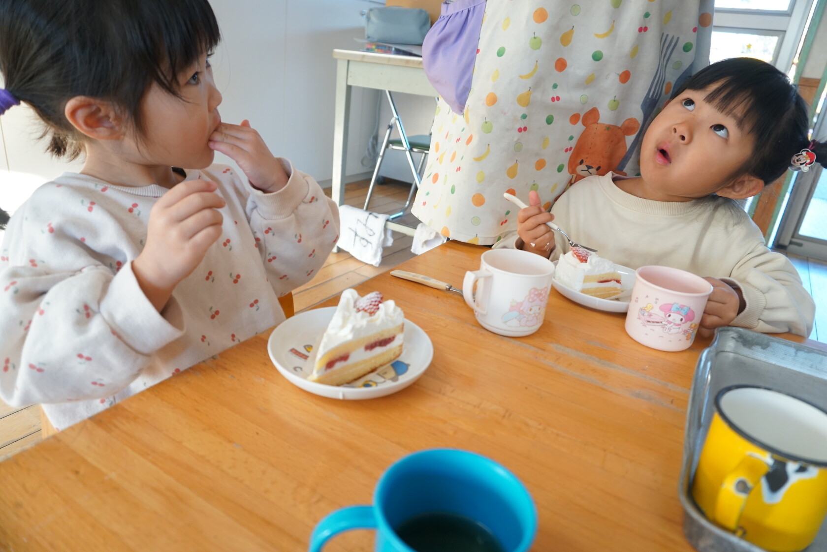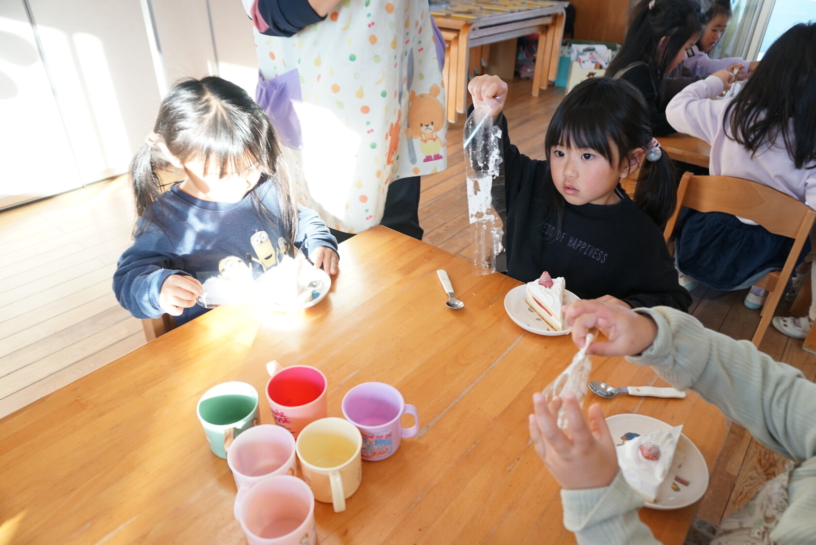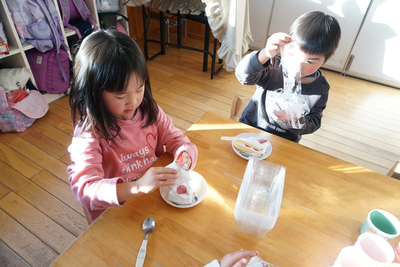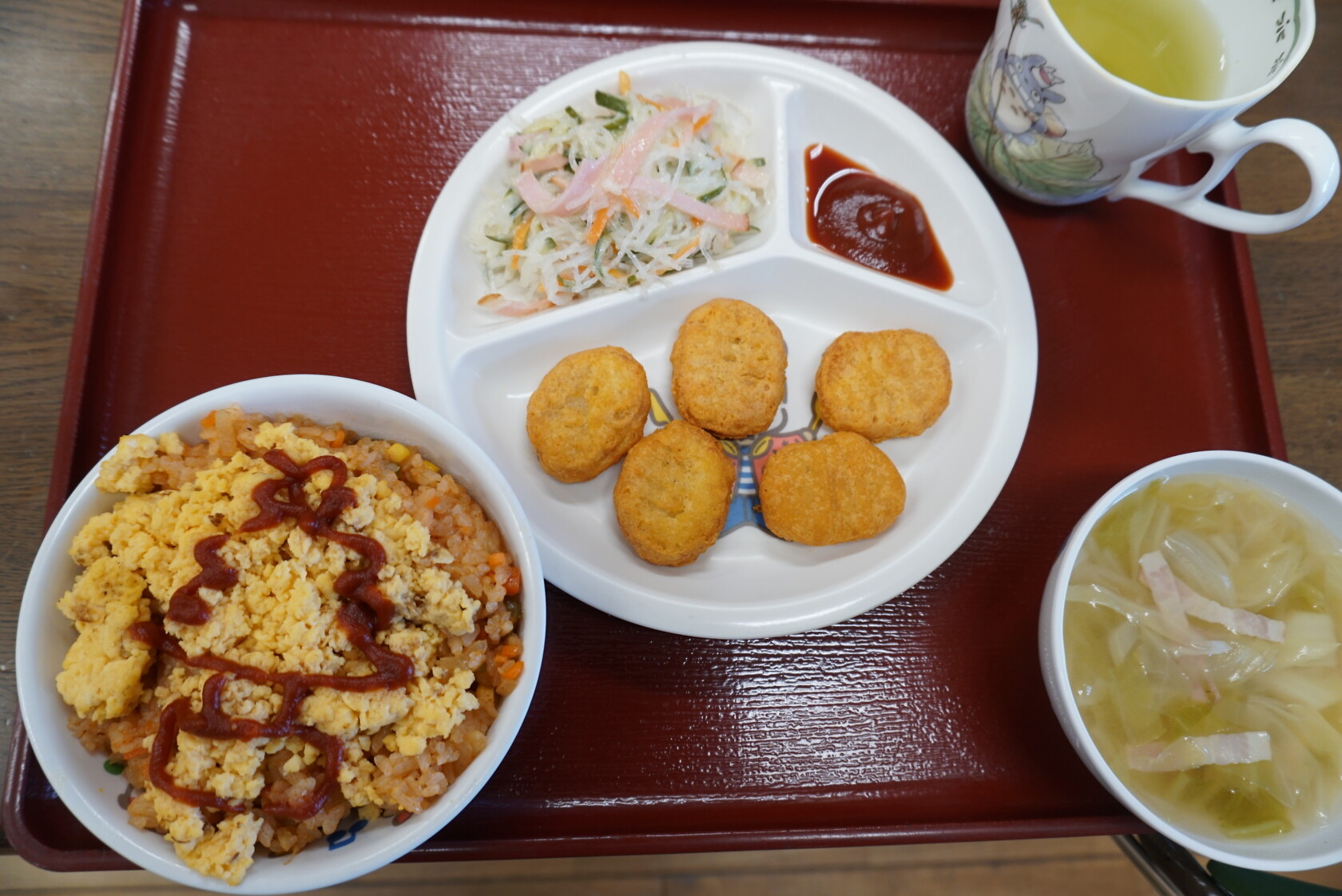クリスマス会(以上児) 公開済み: 2023年12月25日更新: 2023年12月25日 今日はクリスマス会がありました!! 歌を歌ったりサンタさんからプレゼントをもらったりと楽しい時間を過ごしました😁 給食には顔の描かれたオムライスがでて、嬉しそうに食べていました😁 おやつのケーキもみんな大興奮でした!!