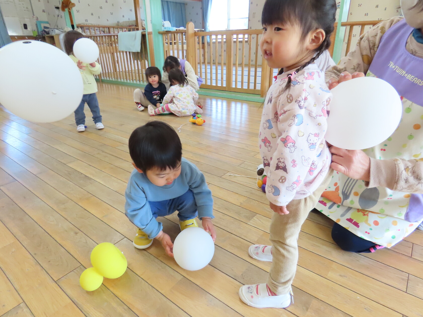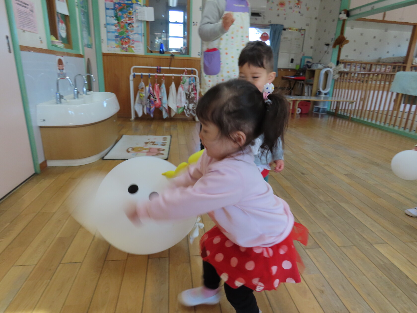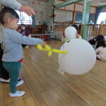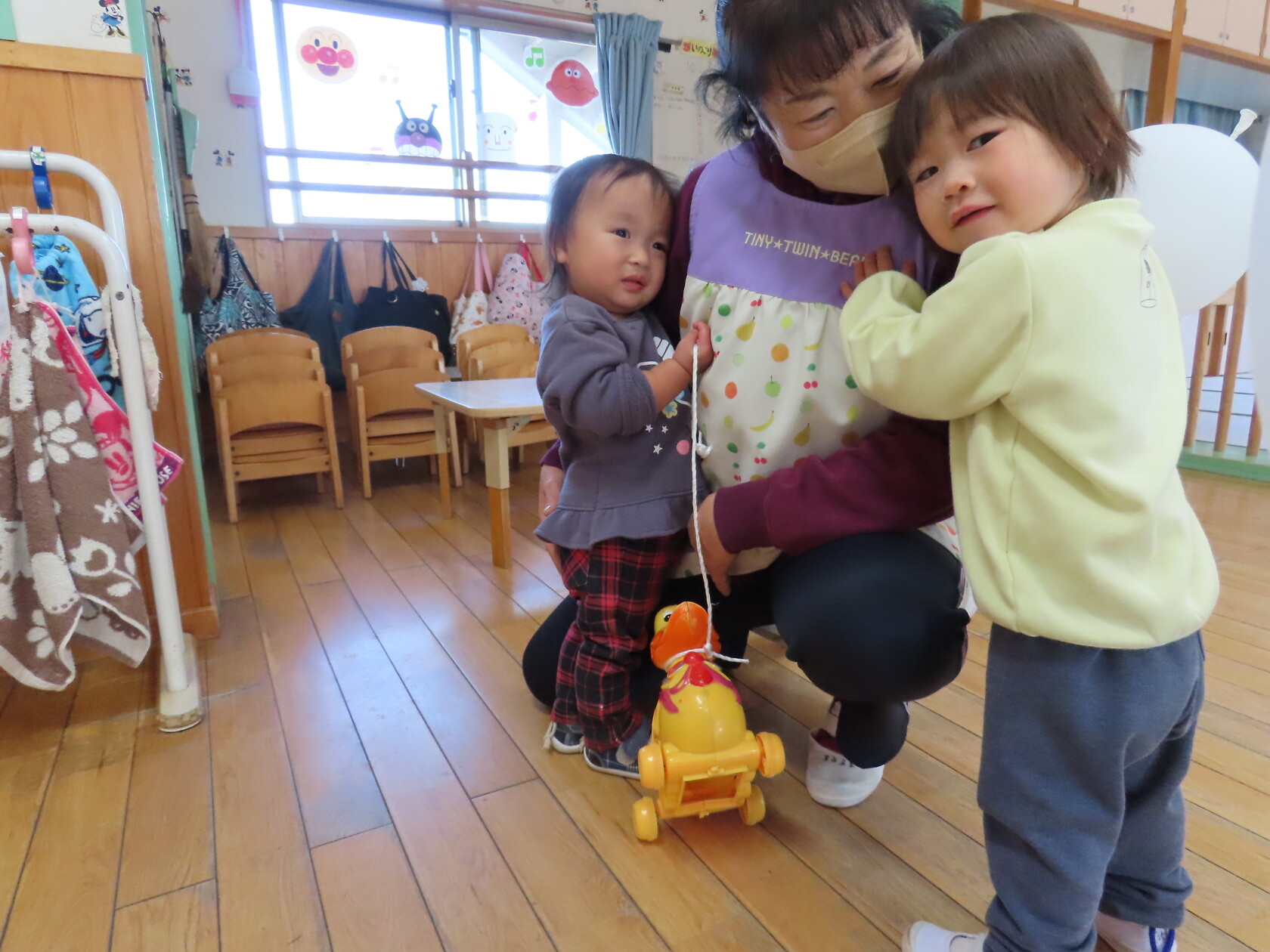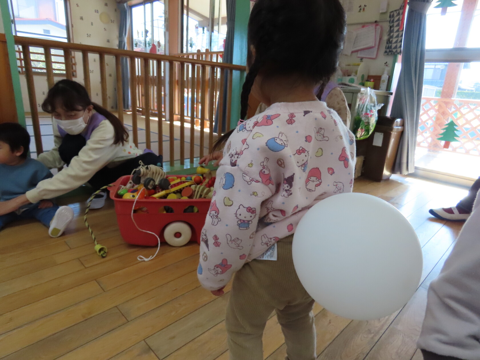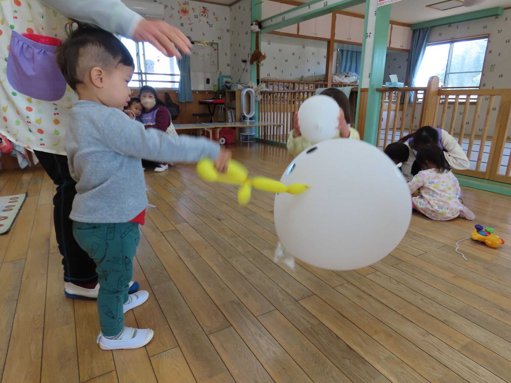 今日のできごと(さくら) 公開済み: 2024年1月10日更新: 2024年1月10日 新しい年を迎え、先生やお友達と久しぶりに会い、いつもの笑顔を取り戻したさくら組さんです😊 みんなの元気な姿が見られ、ほっと一安心です💕 今日は、お部屋でのんびりと遊びました🎵 犬・馬・牛・アヒルなどの動物に紐がついていて、楽しそうにお散歩へ出掛けました💨💨 途中、クリスマス会で使用した風船を出すと、ワ~~~~と、セール品を探すように勢いよく集まるさくら組さん😂 みんな嬉しくて喜んでいました😍 頭に乗せたり、しっぽをつけてみたり、上に投げてみたりと楽しい時間を過ごしました🎼