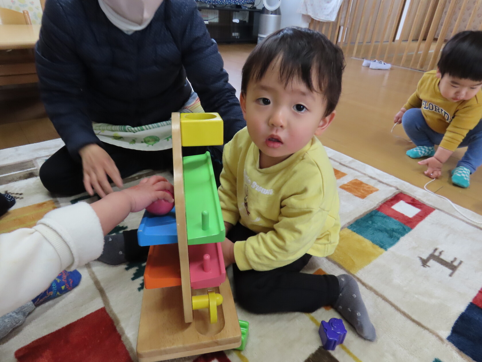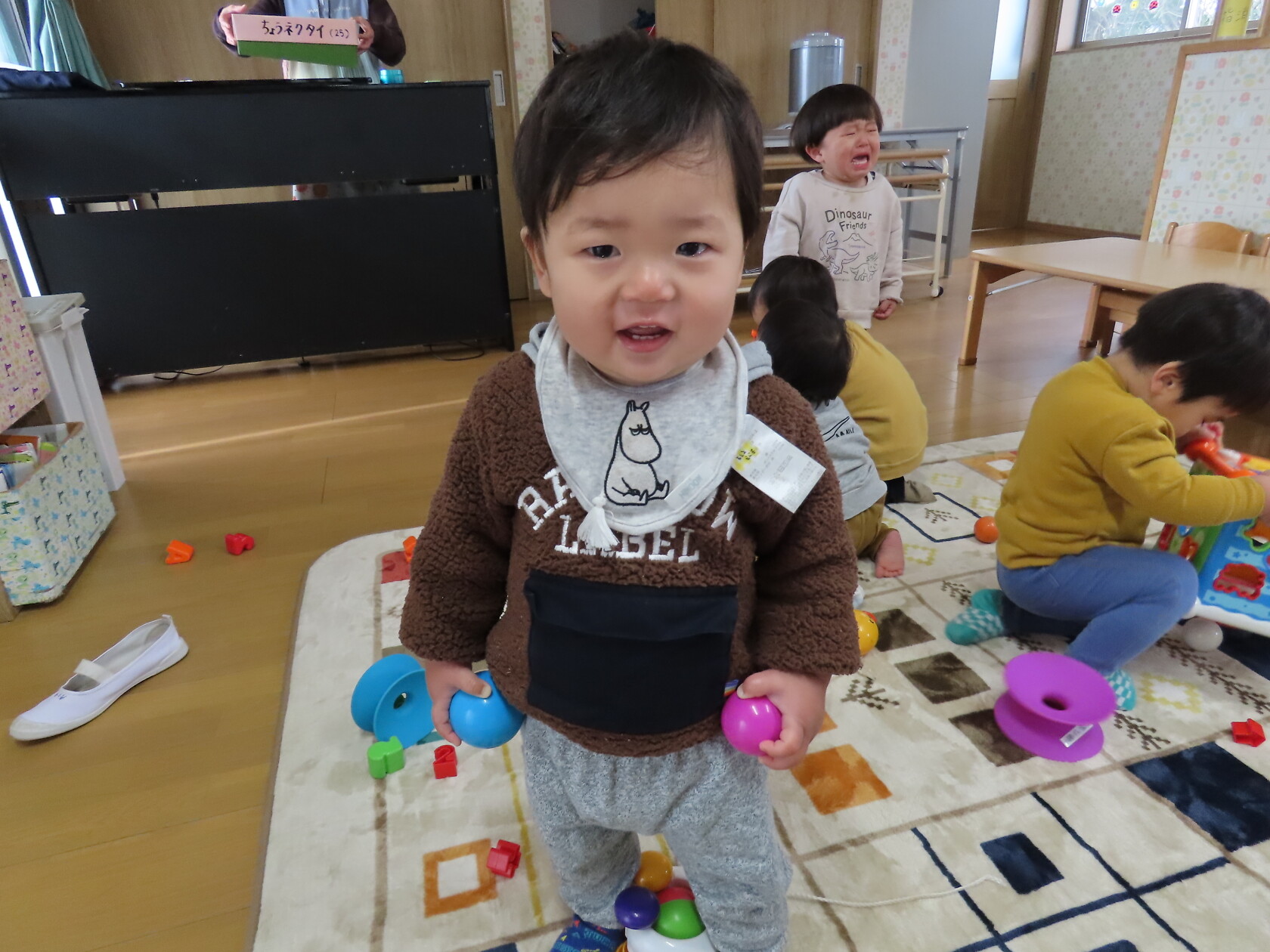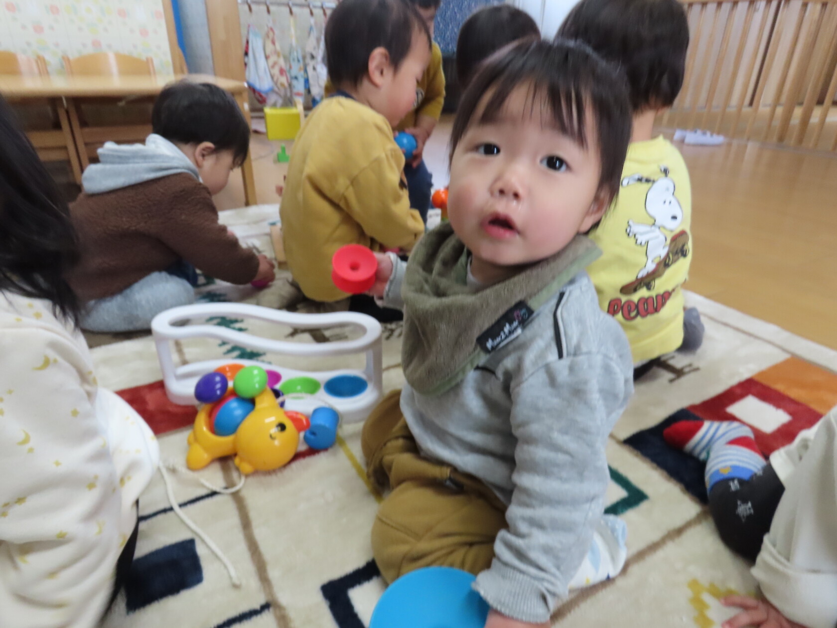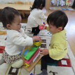 今日のできごと(小規模さくら) 公開済み: 2024年1月11日更新: 2024年1月11日 年が明け、10日程が過ぎ、園生活のリズムも少しずつ戻ってきました🎵 ちゅうりっぷ組さんが今月から本園で合同になったので、小規模の園舎には0・1歳児さんだけになり、少し寂しくなりましたが かわいいお友達と仲良く穏やかに過ごしています😊 寒さが一段と厳しくなってきましたので、体調に留意して元気に登園してください✨