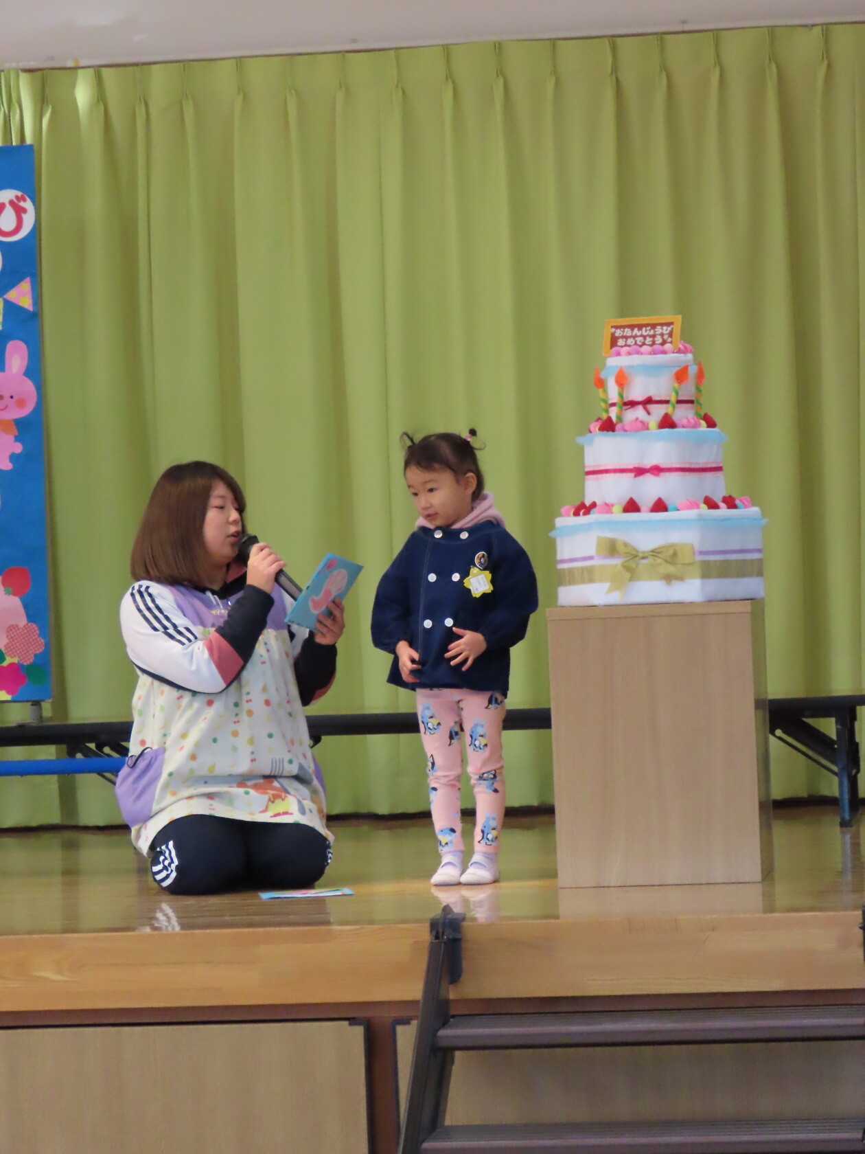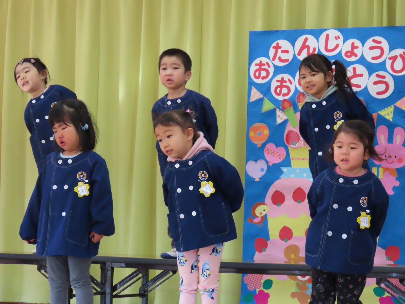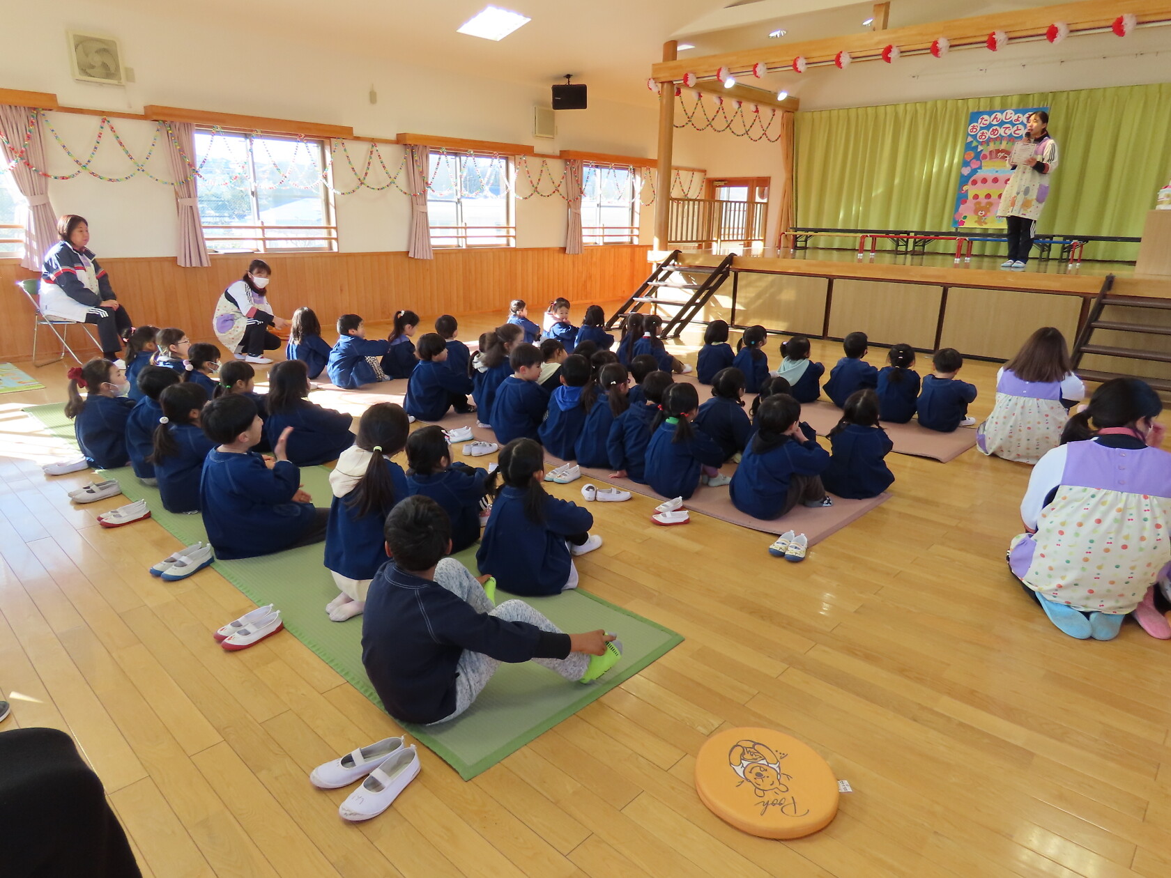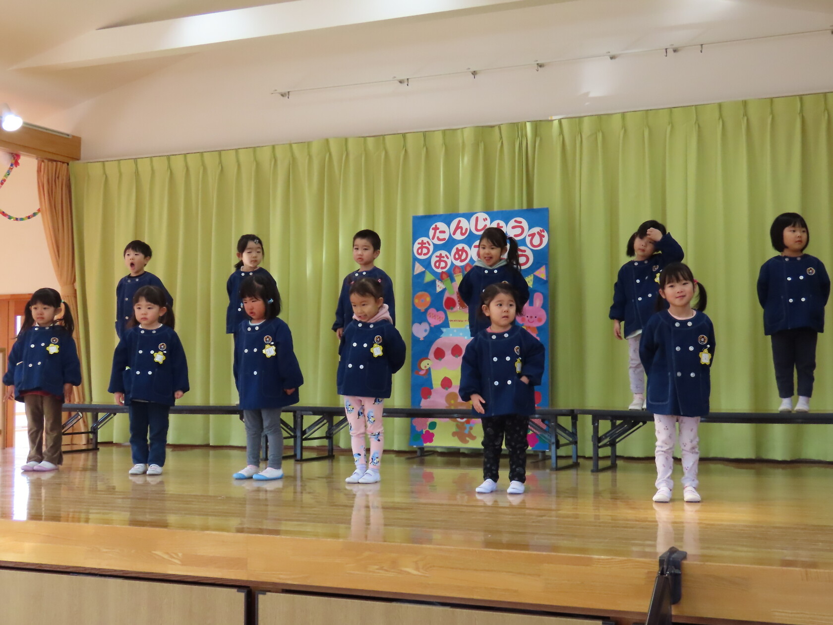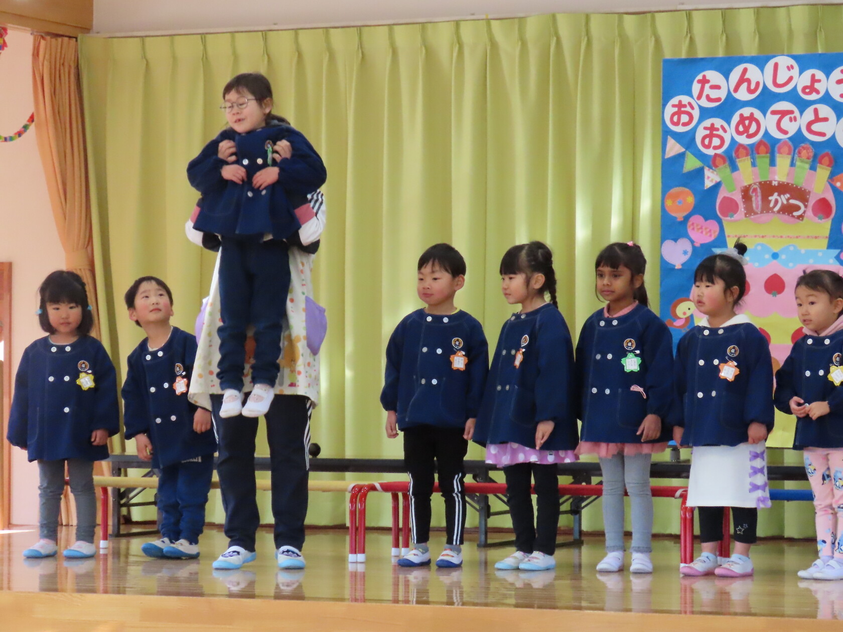 お誕生会(以上児) 公開済み: 2024年1月24日更新: 2024年1月24日 一月生まれのお友達のお誕生会でした!! 少し緊張した様子でしたが、前に出て上手にお誕生カードの発表をすることができました。 今月の歌のプレゼントは、 ひまわりぐみ「カレンダーマーチ」「ありがとうこころをこめて」 ゆりぐみ「マラソン雪だるま」「waになっておどろう」 すみれぐみ「ゆきのこぼうず」「おもちゃのマーチ」 でした。 一月生まれのおともだち、お誕生日おめでとうございました!!