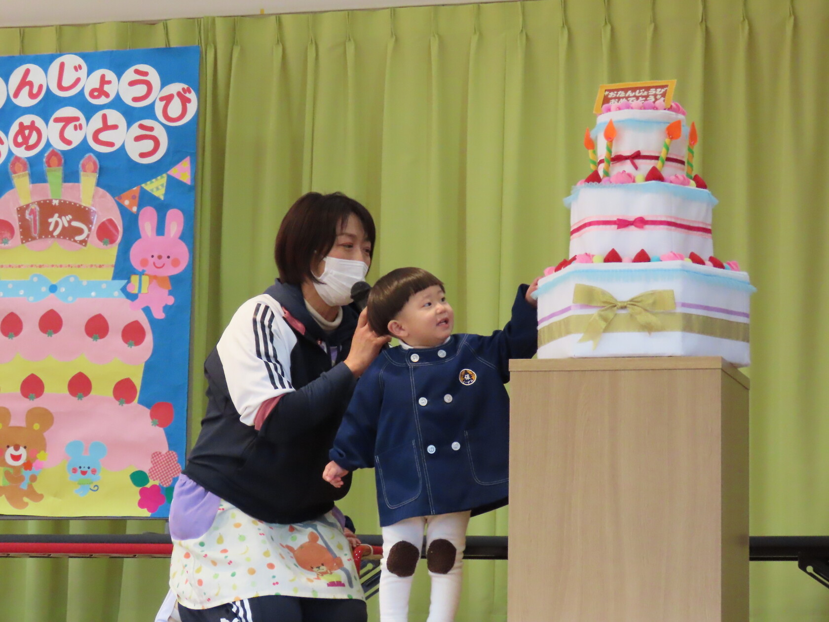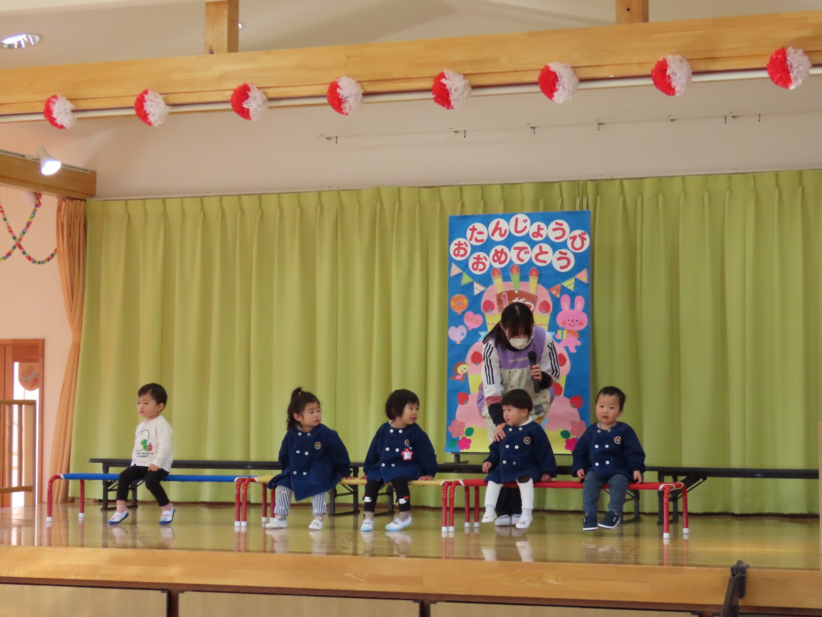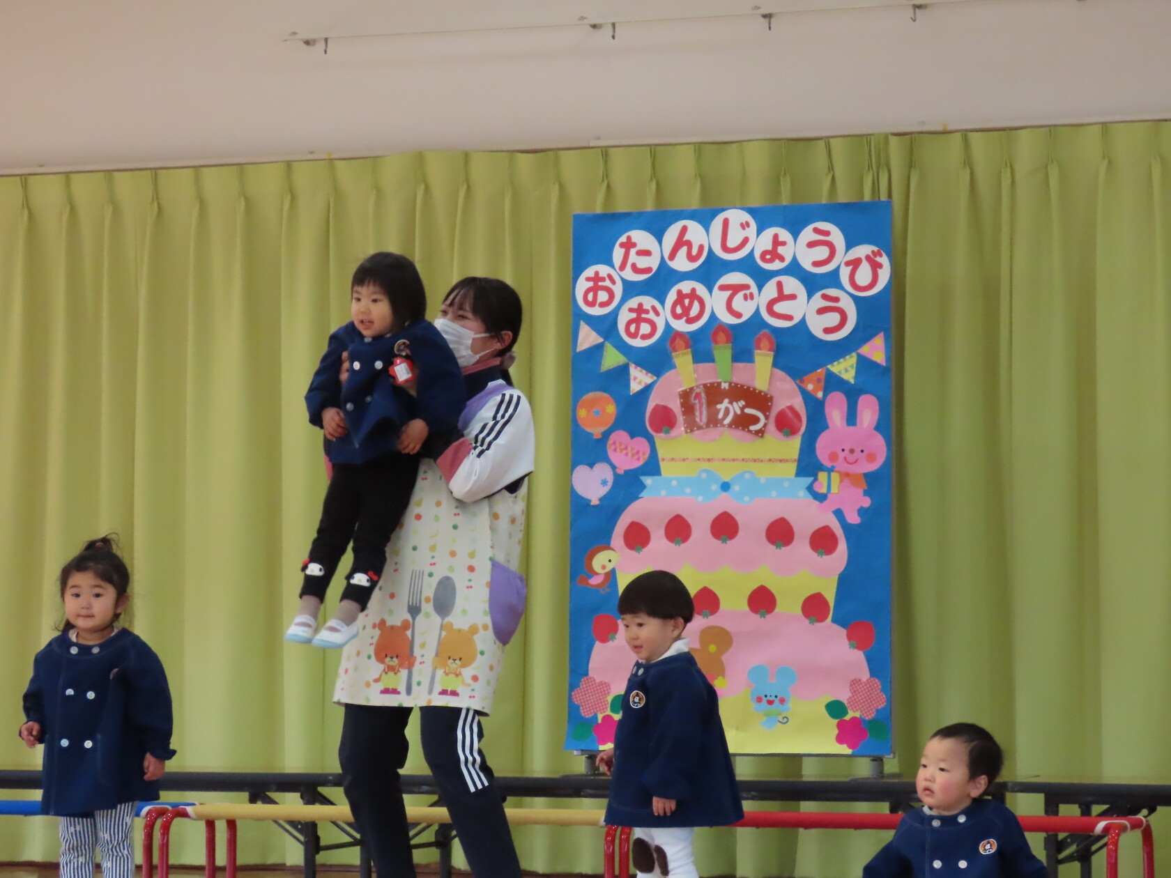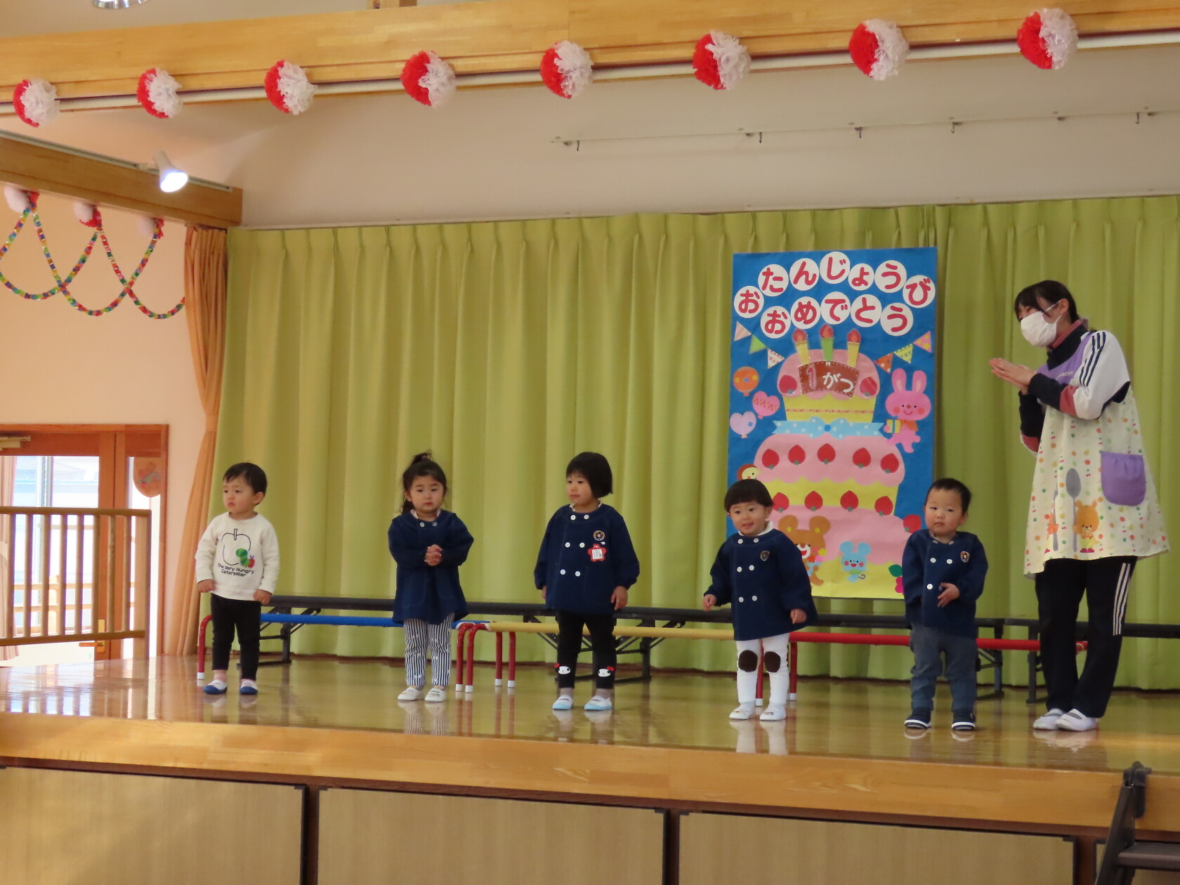 みんなぞれぞれステージの上から手を振ったり、保護者の方々を見て喜んだりと、にぎやかなお誕生会となりました😆