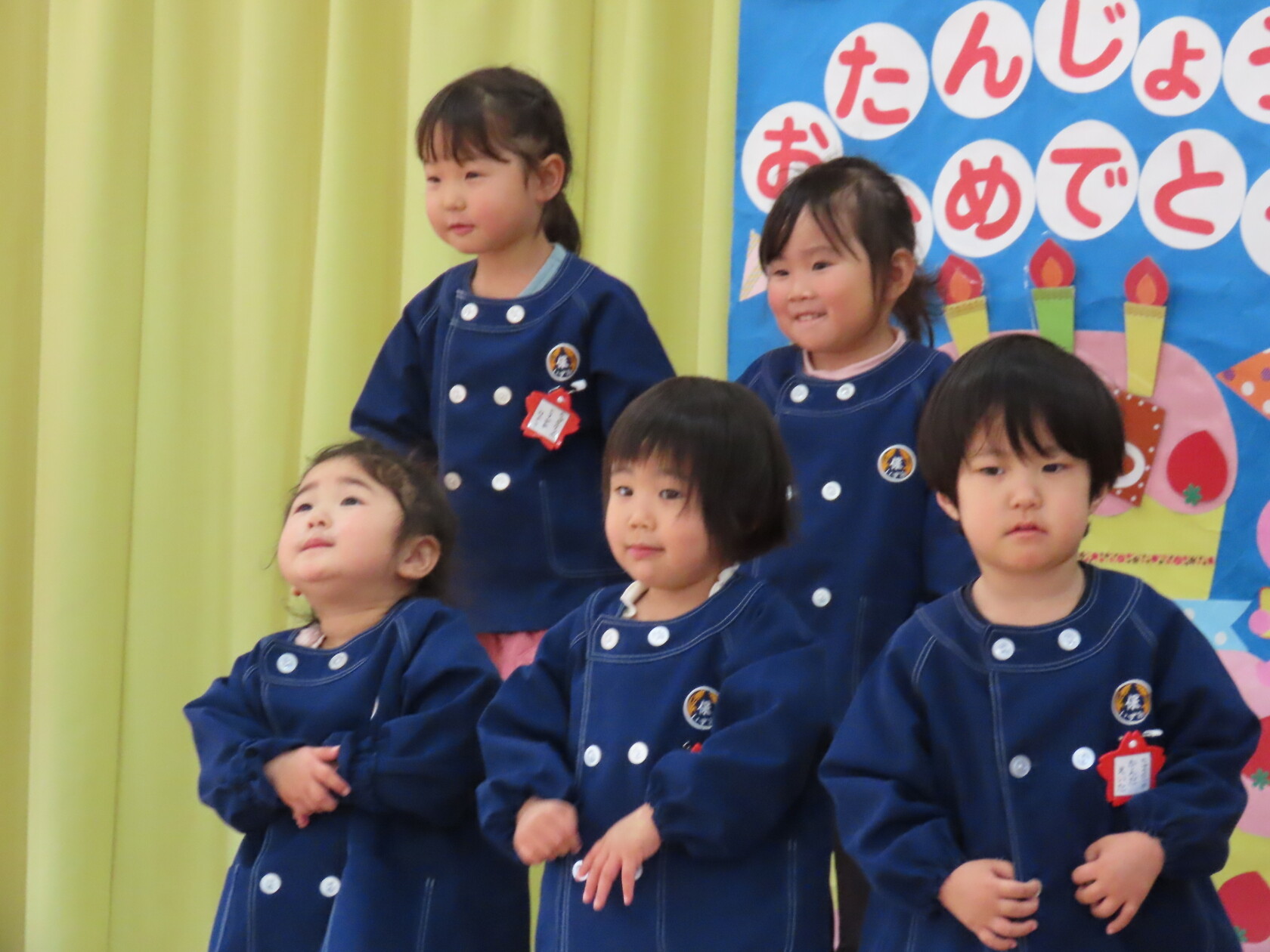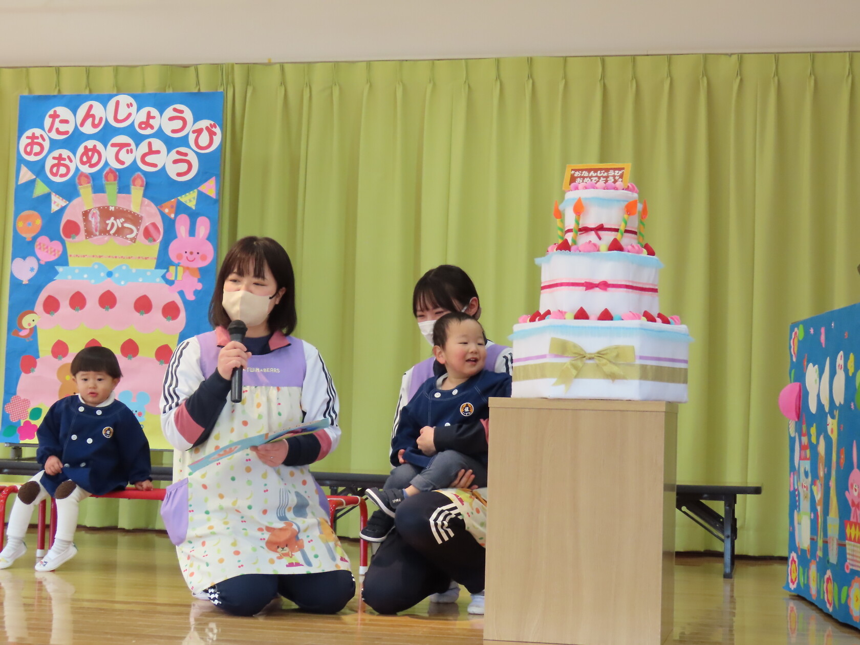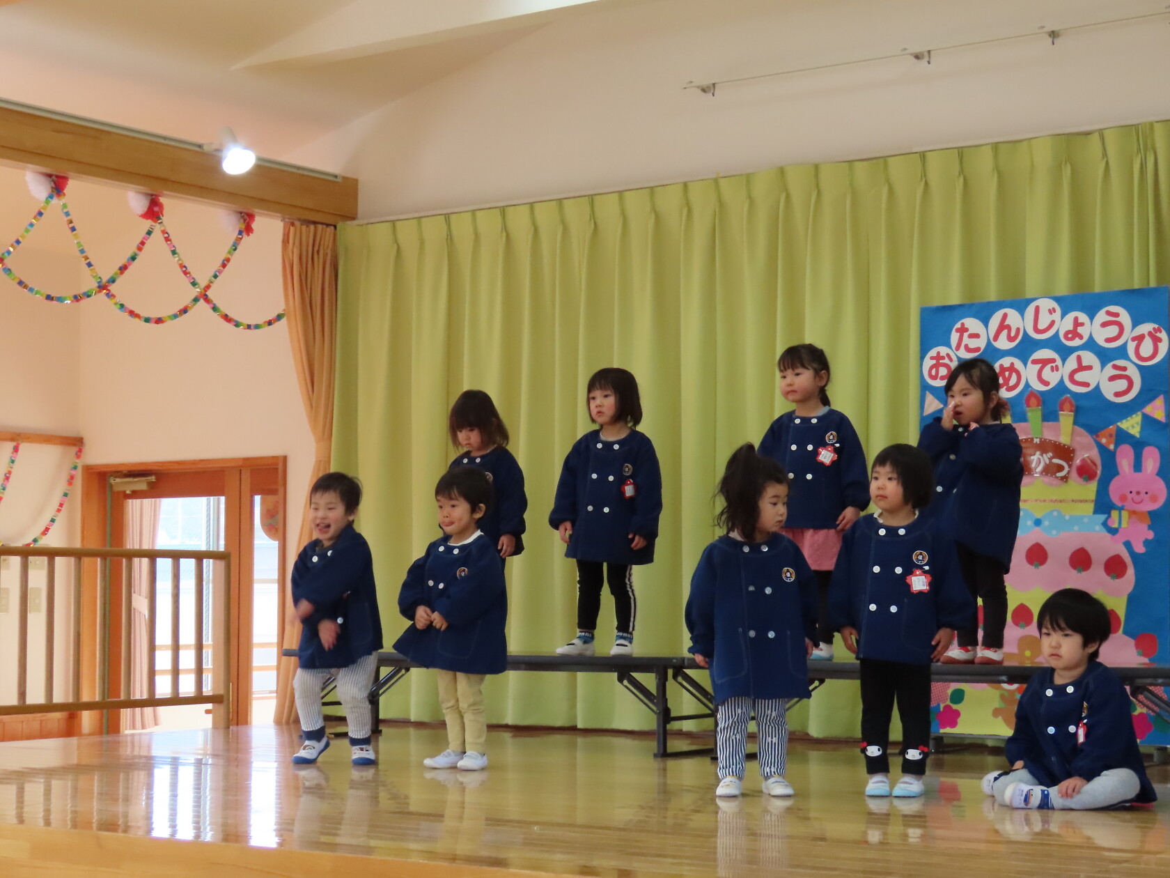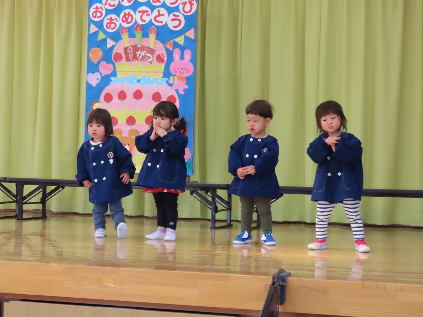 みんなぞれぞれステージの上から手を振ったり、保護者の方々を見て喜んだりと、にぎやかなお誕生会となりました😆