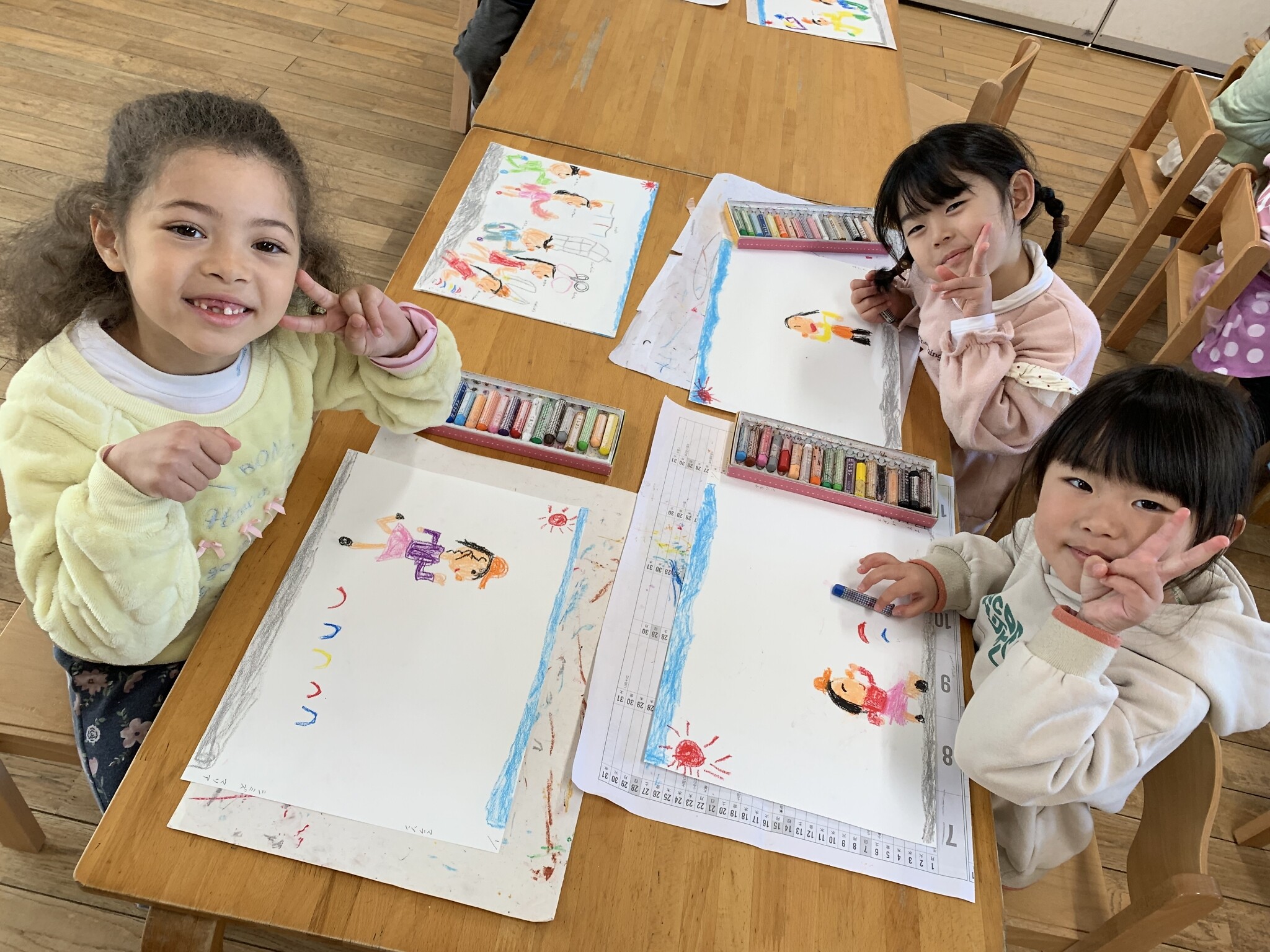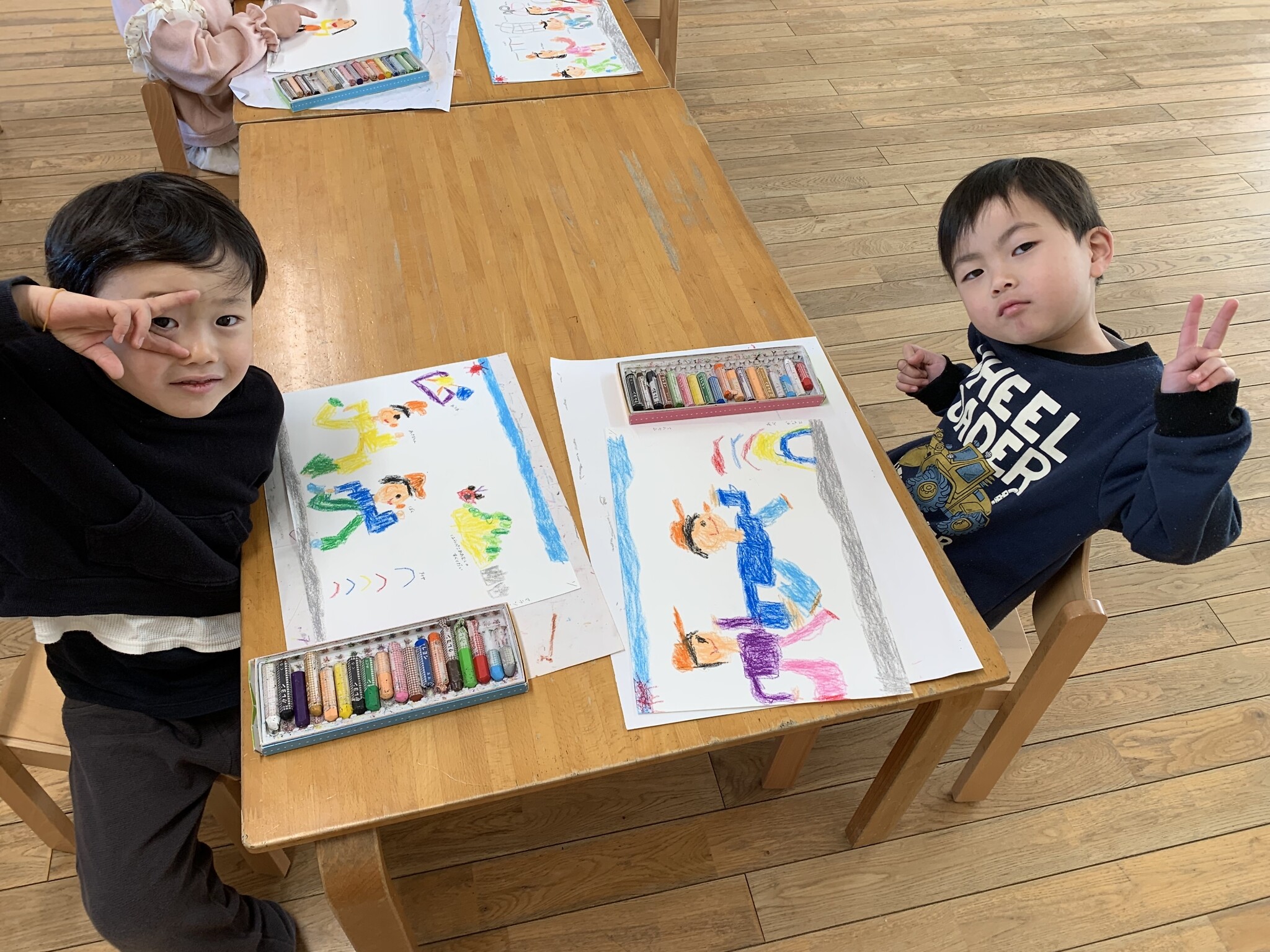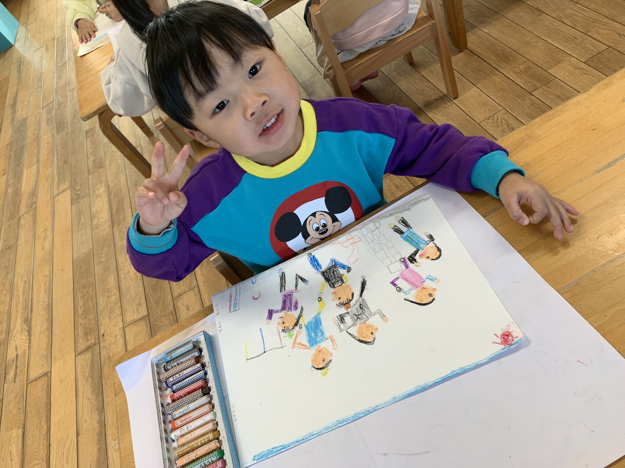 今日のできごと(ゆり) 公開済み: 2024年1月24日更新: 2024年1月24日 今日は画用紙と画用紙が終わった子はカプラでひまわりさんと遊びました😆 画用紙は顔や身体の描き方が上手になり、いろいろな物を描けるようになってきました! カプラではドームを作って、その中に入り写真を撮りました📸 ひまわりさんと協力して楽しく遊べましたね🎵 給食ではみんなの大好きなカレー🍛 匂いだけで今日の給食がわかりました😁美味しかったですね😋