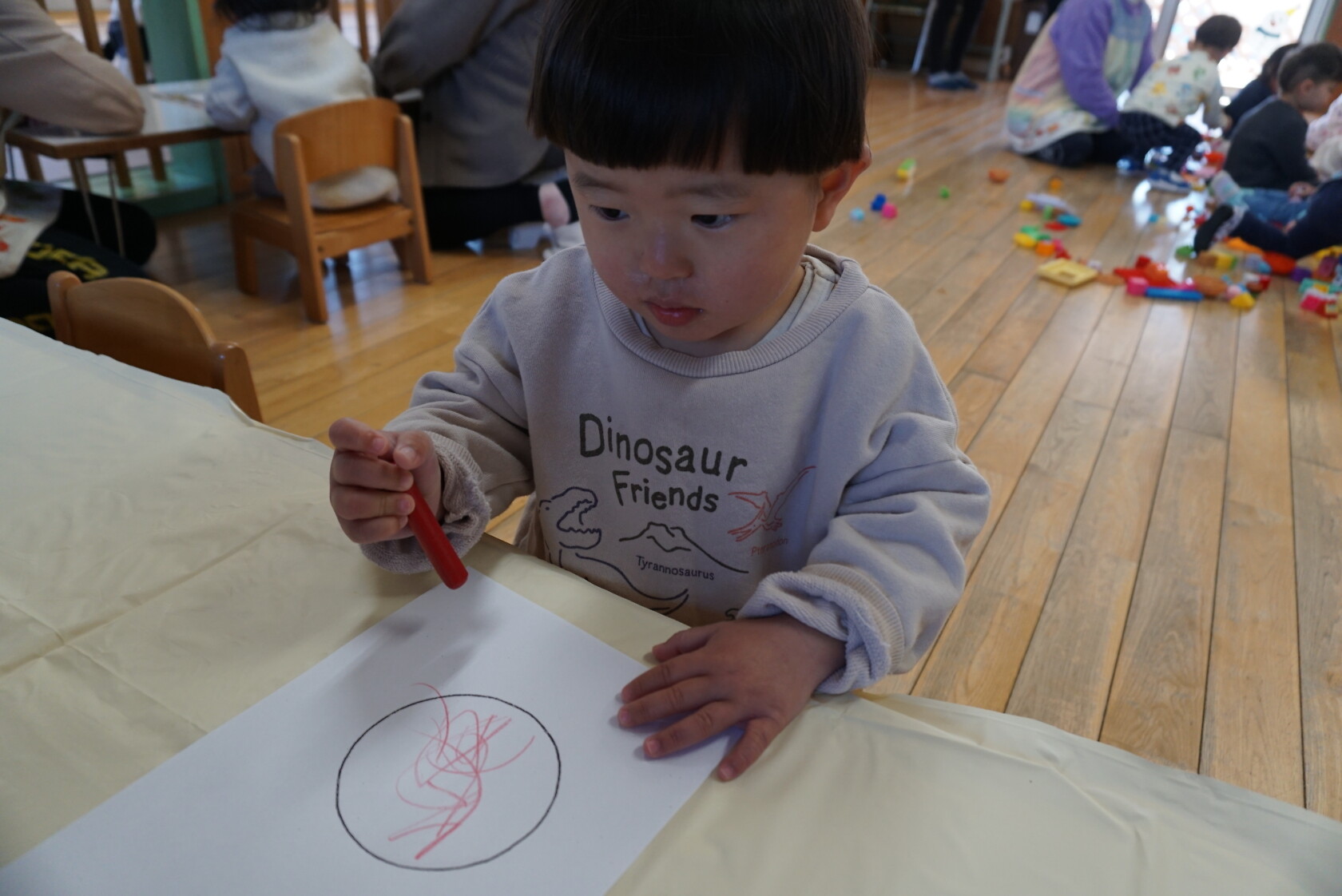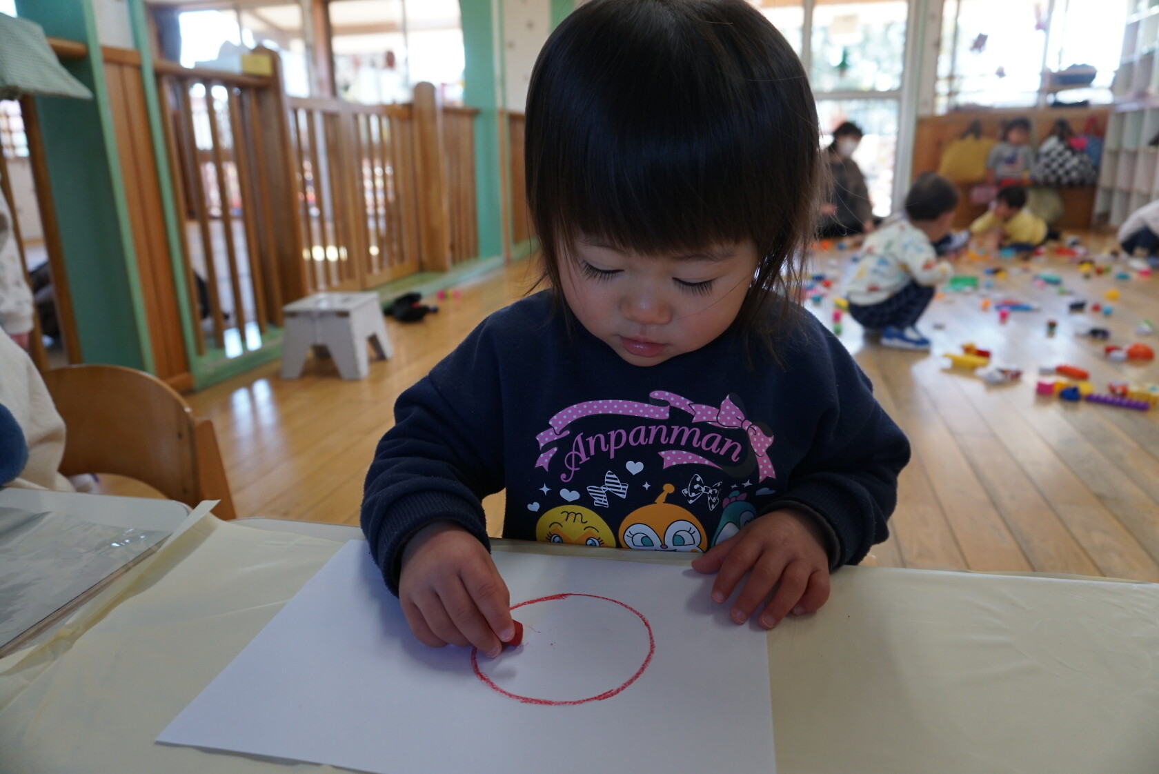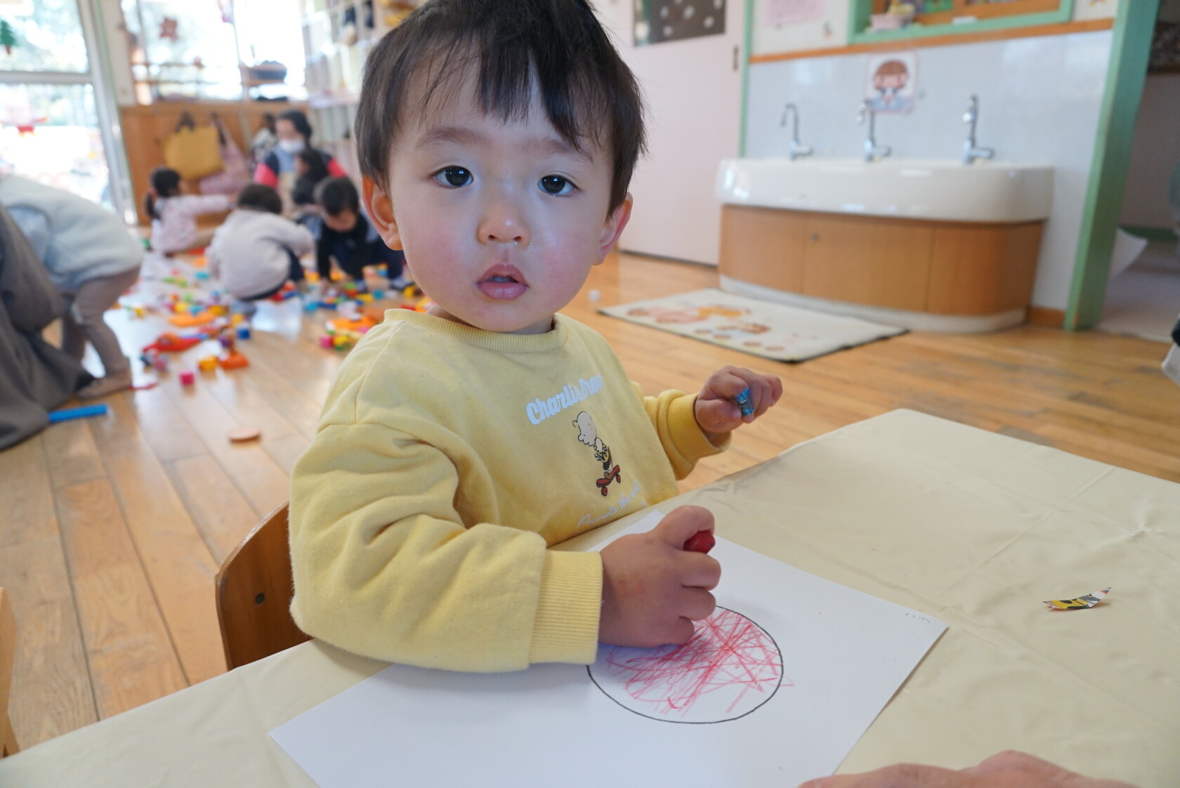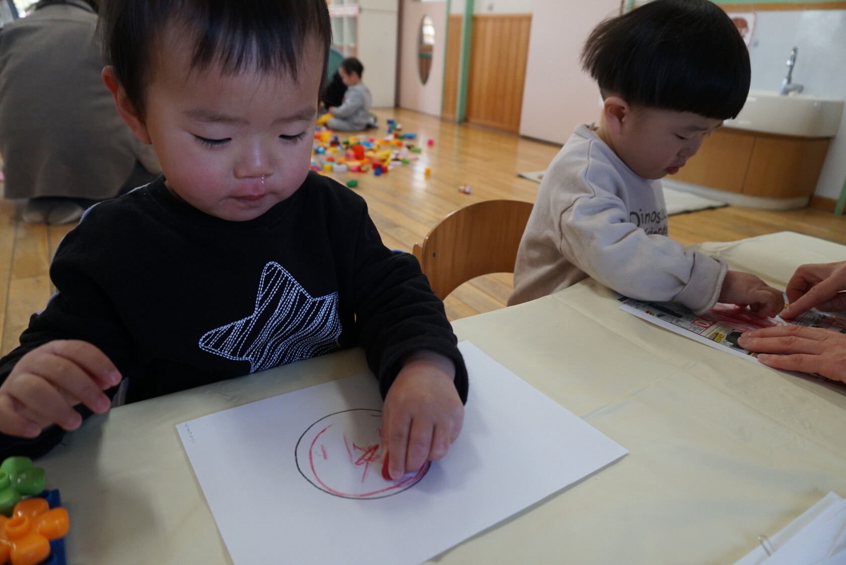 今日のできごと(さくら・小規模さくら) 公開済み: 2024年1月25日更新: 2024年1月25日 今日は、小規模さくら組と一緒に、1日合同で過ごしました🎵 いつも一緒ではないお友達とも仲良く、アンパンマンレゴブロックで遊ぶことができました😊 又、日の丸の製作が始まり、赤い丸を力強く塗りました🖍 鬼のお面とは違って1色なので、塗りやすかったようです😊 「まる、ぬりぬり~」と、楽しそうでした🎼