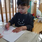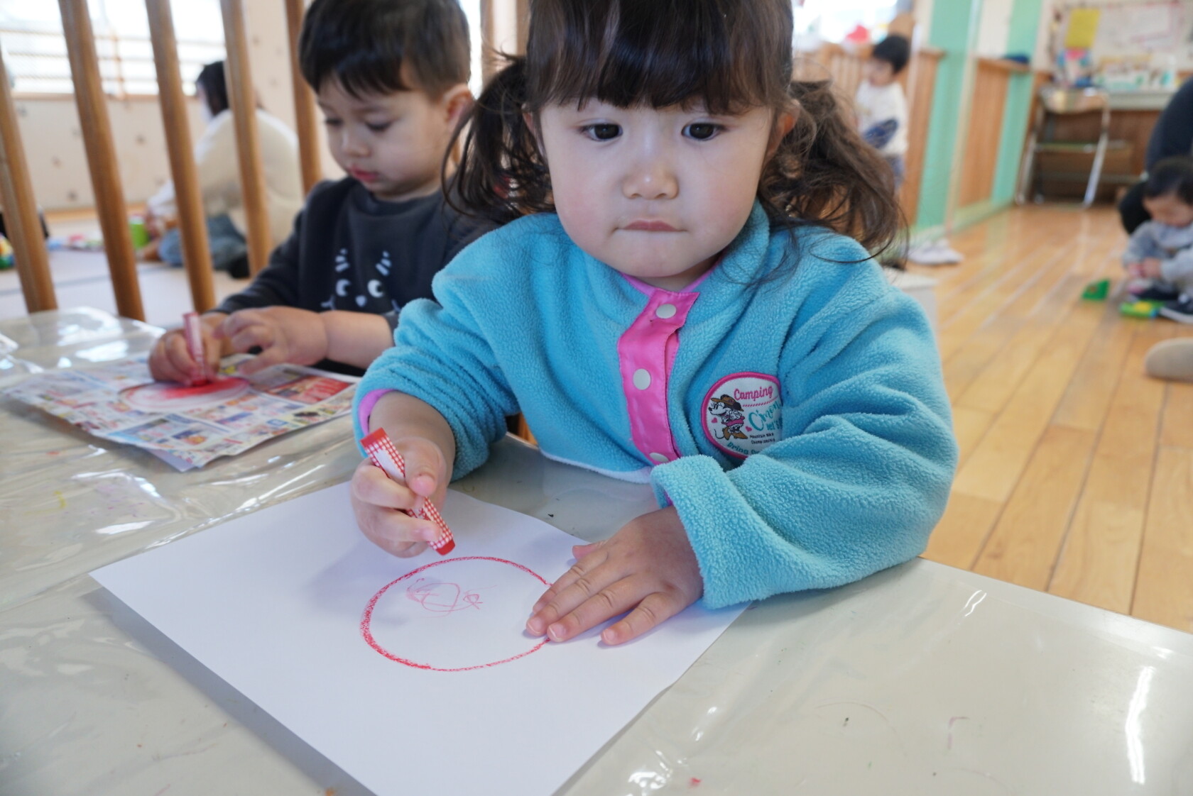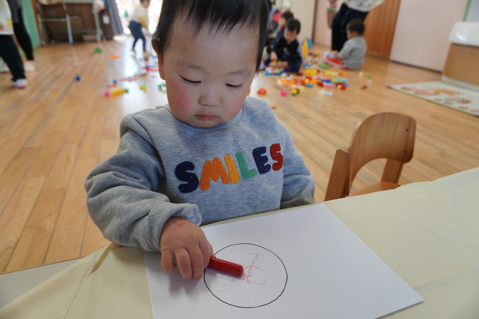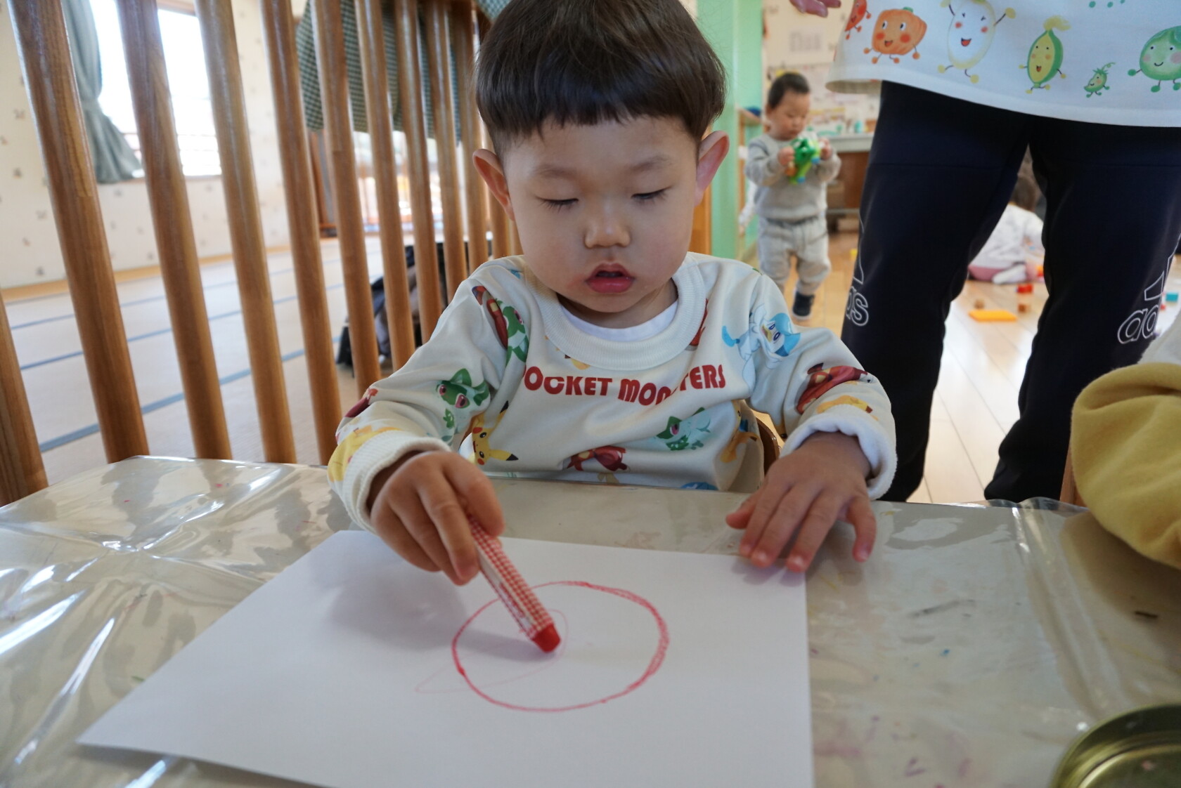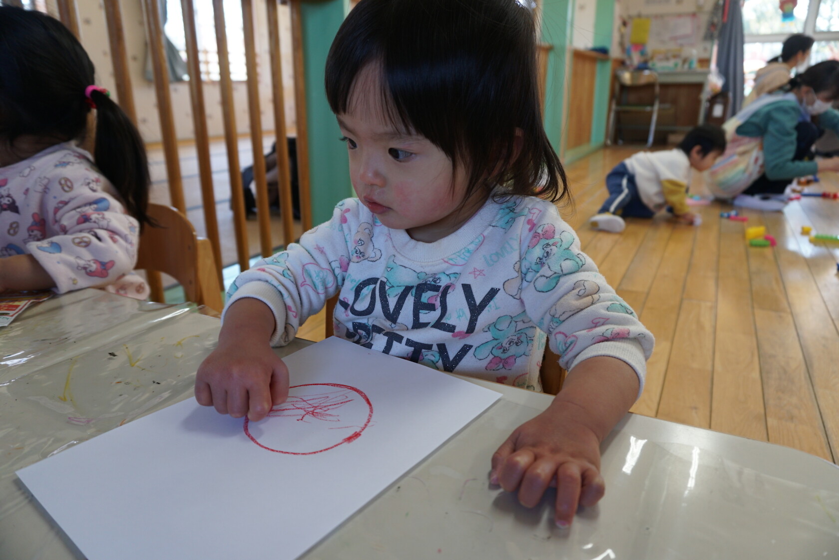 今日のできごと(さくら・小規模さくら) 公開済み: 2024年1月25日更新: 2024年1月25日 今日は、小規模さくら組と一緒に、1日合同で過ごしました🎵 いつも一緒ではないお友達とも仲良く、アンパンマンレゴブロックで遊ぶことができました😊 又、日の丸の製作が始まり、赤い丸を力強く塗りました🖍 鬼のお面とは違って1色なので、塗りやすかったようです😊 「まる、ぬりぬり~」と、楽しそうでした🎼