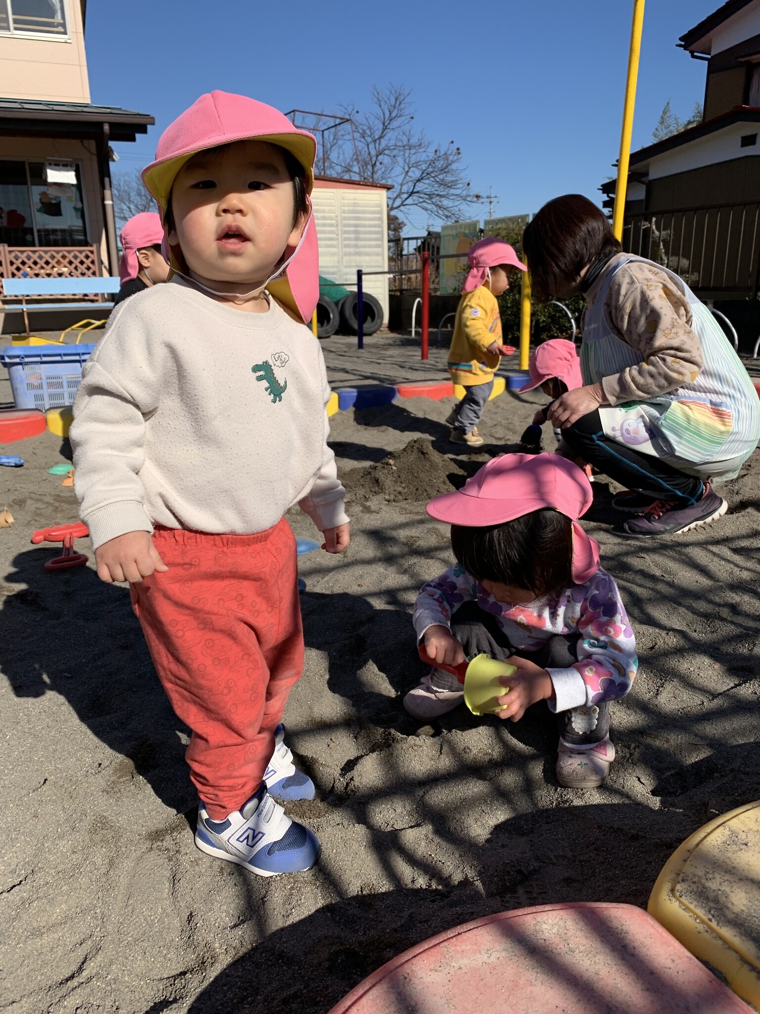 今日は、あったかポカポカ陽気でした☀ お外で元気いっぱい遊んださくら組さん😊 好きな遊びを見つけて色々な場所に行き、楽しんでいました🎵 お友達と一緒に遊ぶことも増えて、また違う楽しみが増えたようです😆