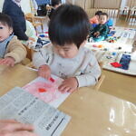 鬼のお面の製作が始まりました! クレヨンを見せ、「何色にする?」と聞くと、自分の好きな色を選び、ゴシゴシ…グルグル…と一生懸命塗っていま […]