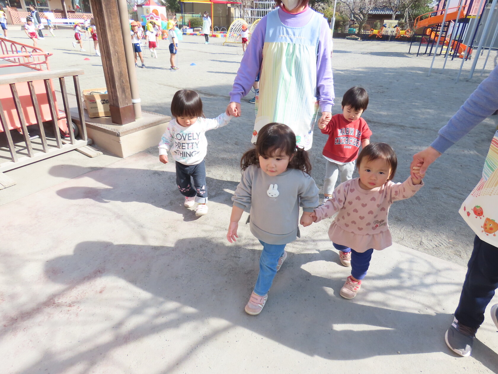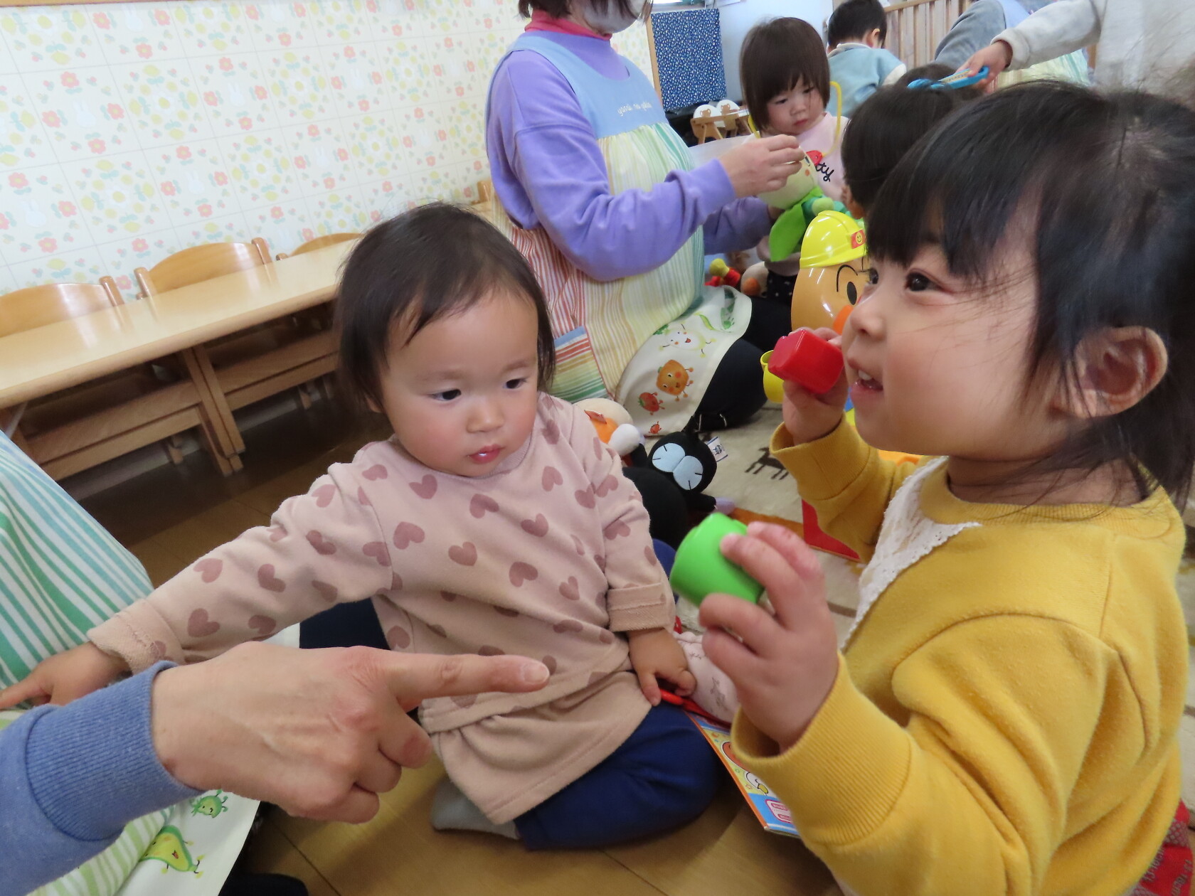 今日のできごと(さくら) 公開済み: 2024年2月15日更新: 2024年2月15日 今日は、初めて小規模さんのお部屋に遊びに行きました🎵🎵 散歩だと思っていたみんなは「でんしゃ、でんしゃ」と、言いながら向かいました💨 初めて入るお部屋にすぐに溶け込み、新しいおもちゃを嬉しそうに使って遊んでいました😊 まだまだ遊び足りないようだったので、また小規模さんへ遊びに行きたいと思います🎼
