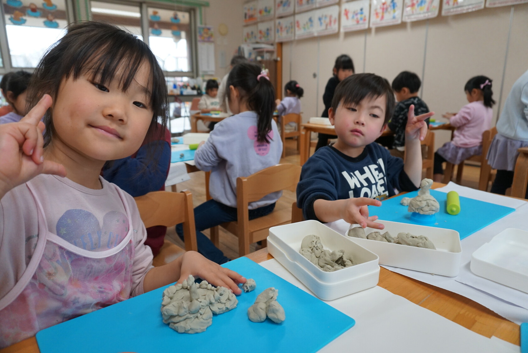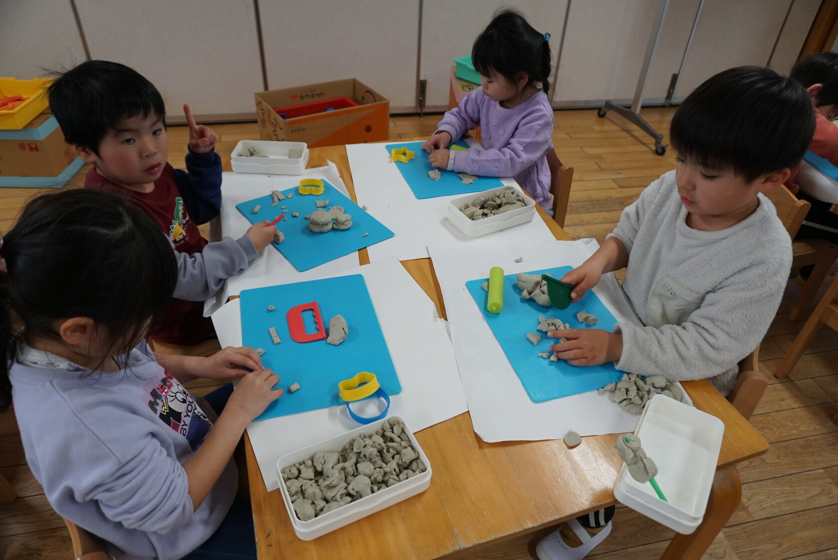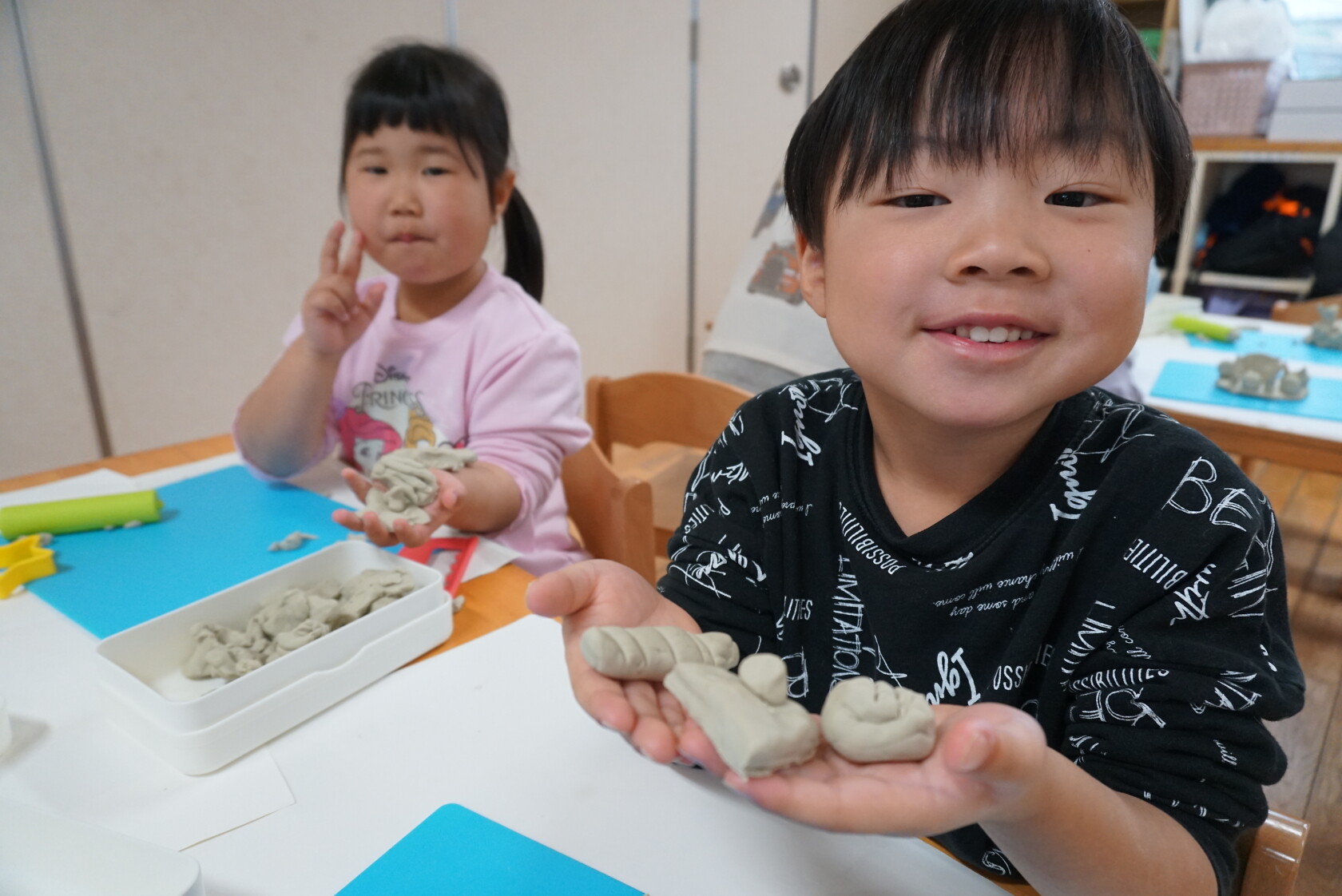 今日のできごと(ゆり) 公開済み: 2024年2月19日更新: 2024年2月19日 今日は、粘土遊びをしました。立体的な物を作れるようになり、思い思いの物を作っていました。 そして、みんなで志村先生のお誕生日をお祝いして、それぞれケーキを作りました😆✨